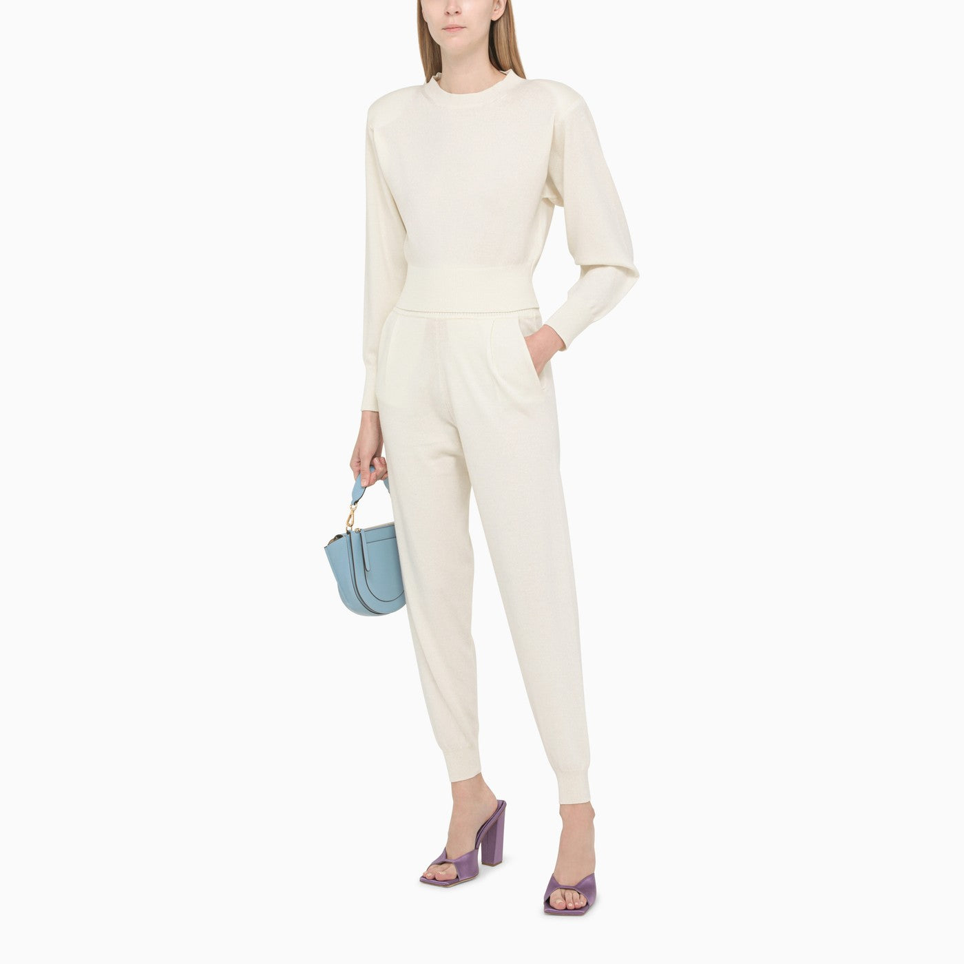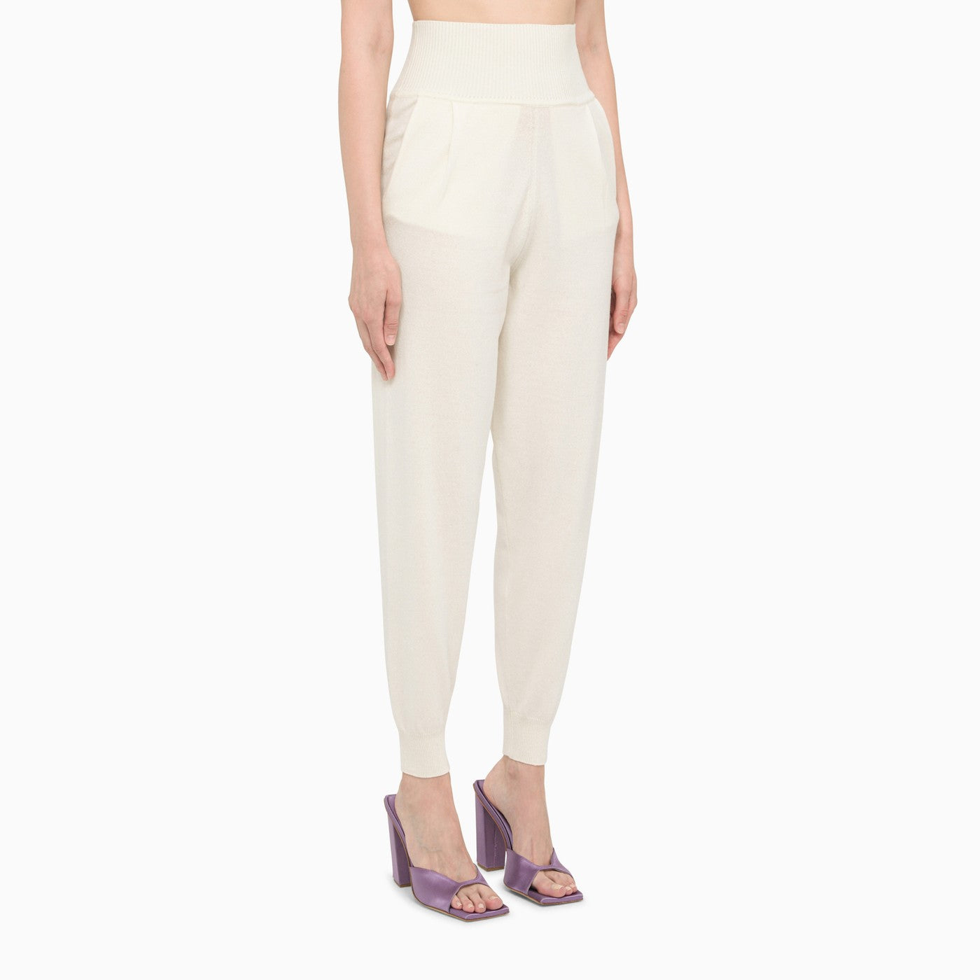 Joggers by Art Essay in ivory-coloured cashmere with ribbed edges and large front pockets.