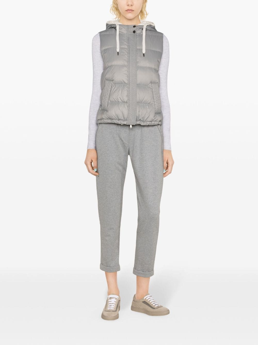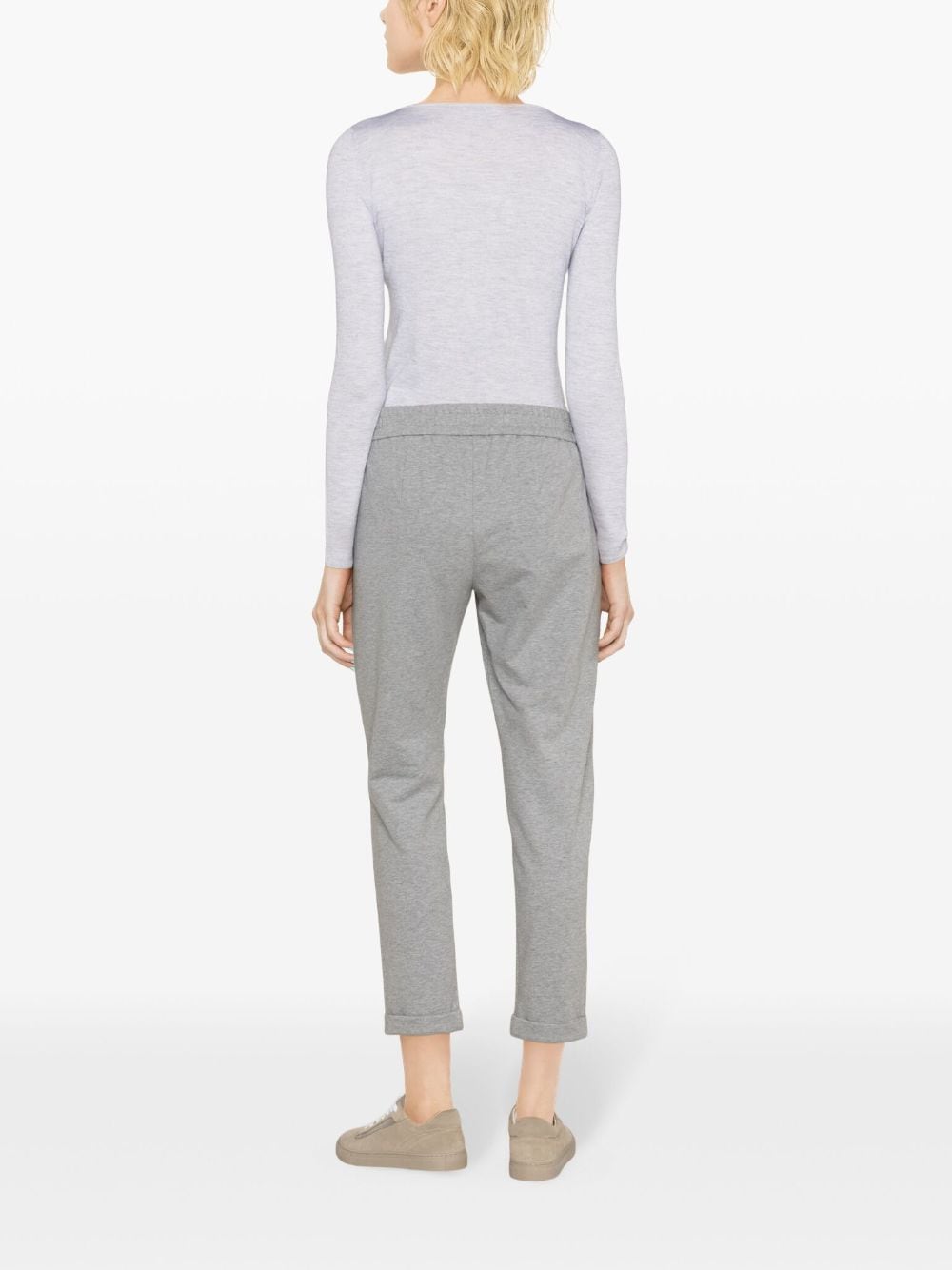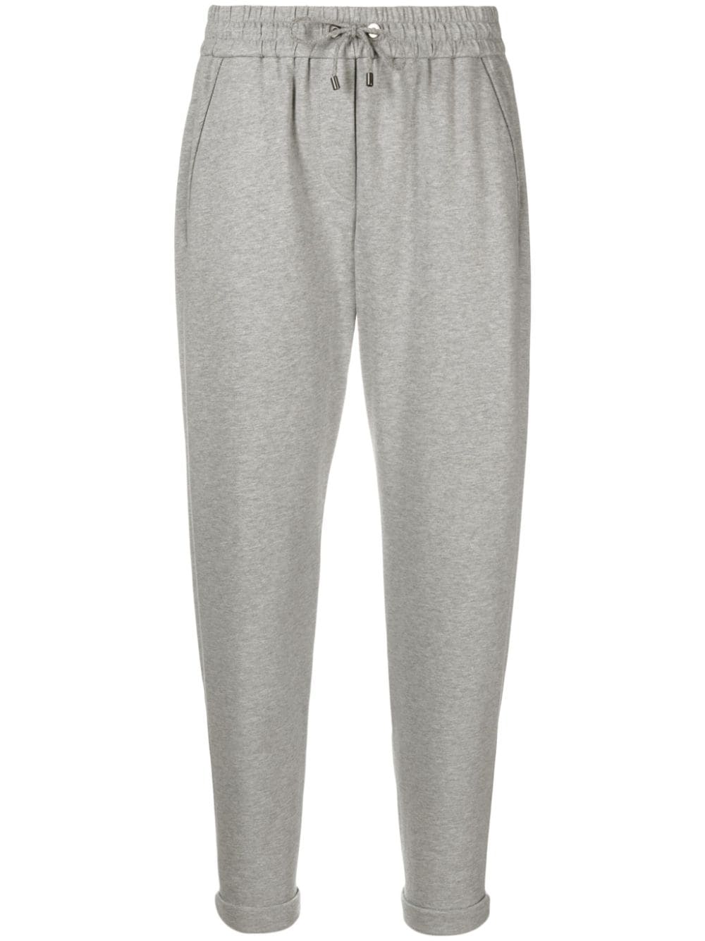 heather grey stretch-cotton jersey texture chain-link detailing elasticated drawstring waistband two side slit pockets tapered leg turn-up hem
