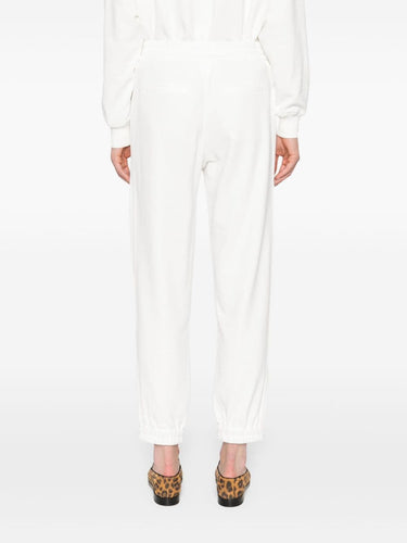 white cotton jersey texture elasticated waistband two side inset pockets two rear welt pockets elasticated cuffs pull-on style