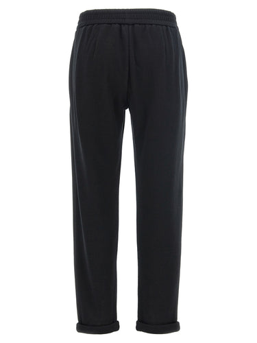 Joggers in cotton blend, drawstring elastic waistband, pockets with 'Monile' detail, turned-up hem.