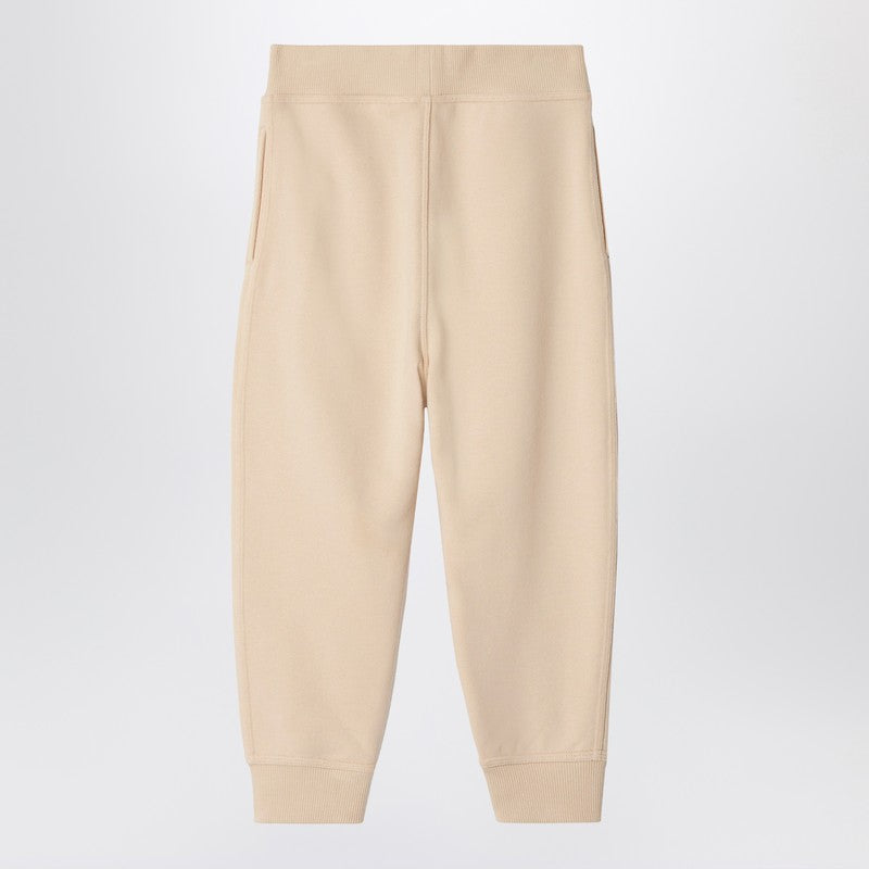 Light beige cotton terry effect jogging trousers from Burberry featuring an elasticated waistband, ribbed hems, lettering logo patch and check pattern on the front and two side welt pockets.