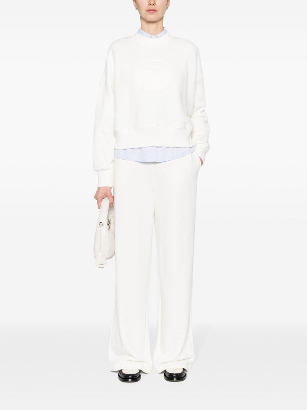 white cotton elasticated drawstring waistband side pocket signature Interlocking G logo floor-length