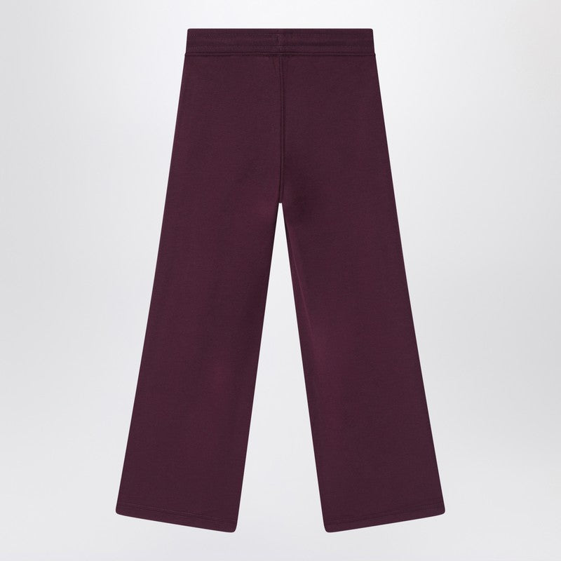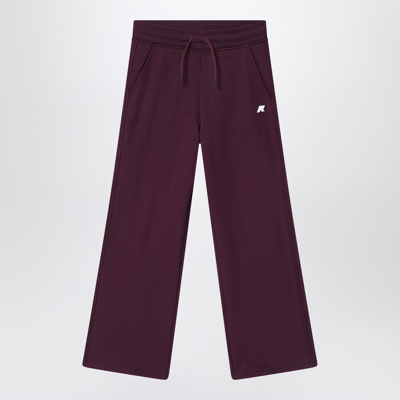 Purple cotton K-Way sporty flared trousers featuring a ribbed elasticated waistband with drawstring, two side welt pockets and logo patch on the front.
