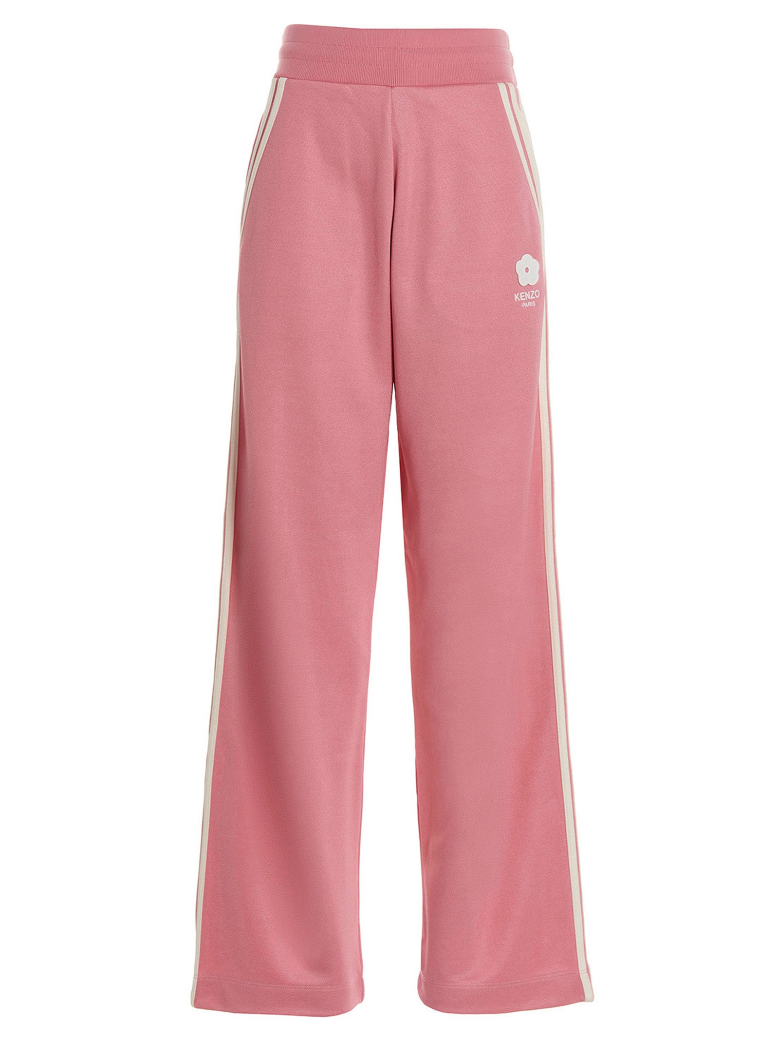 Tech fabric joggers with front logo embroidery, drawstring elastic waistband, contrast side bands with embroideries, pockets.pockets.