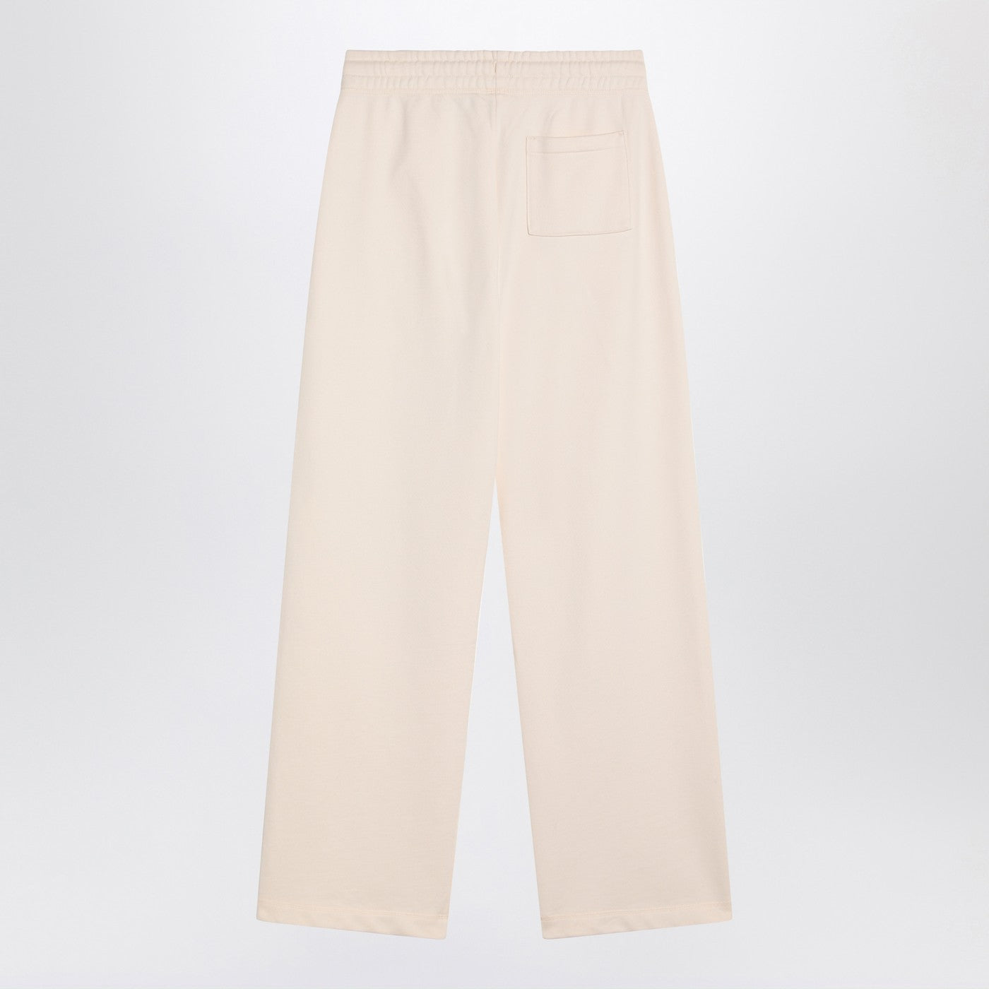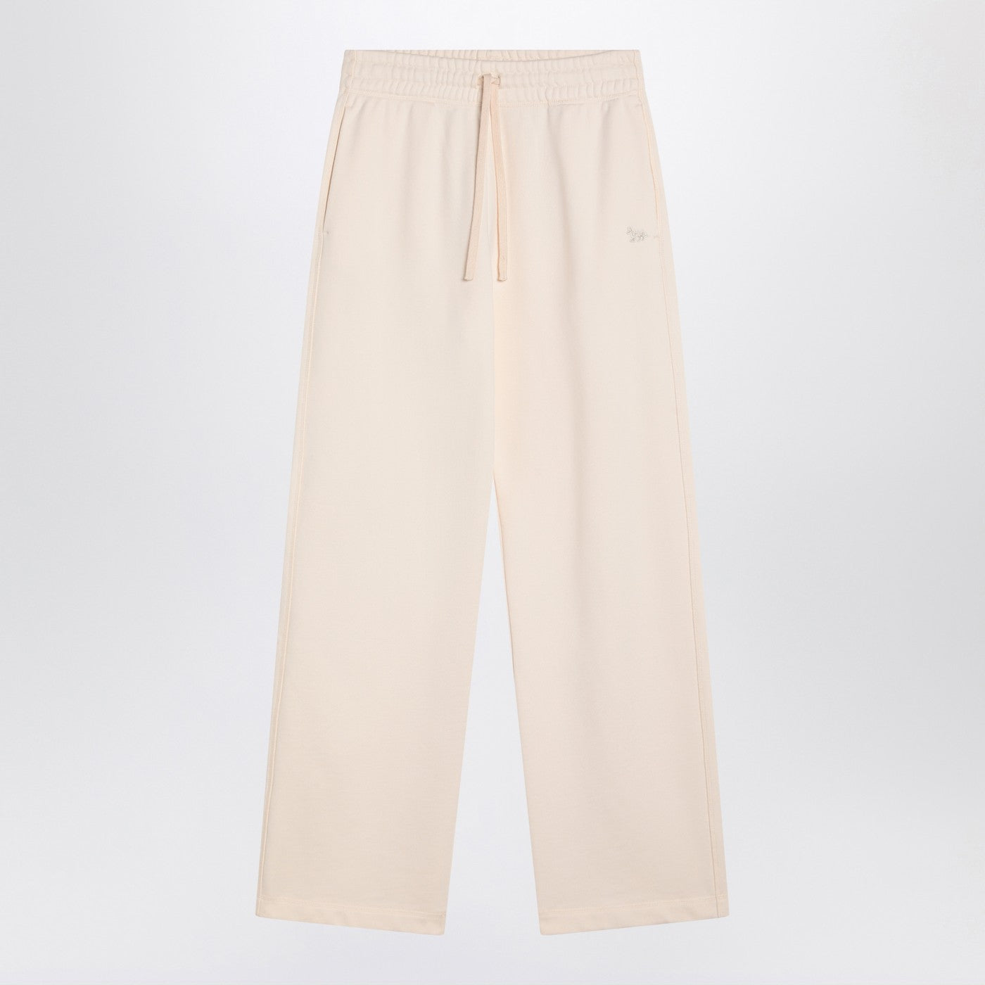 Jogging trousers by Maison Kitsuné in cream-white cotton featuring an elasticated waistband with drawstring, side welt pockets, back pocket and embroidered Fox logo on the leg.