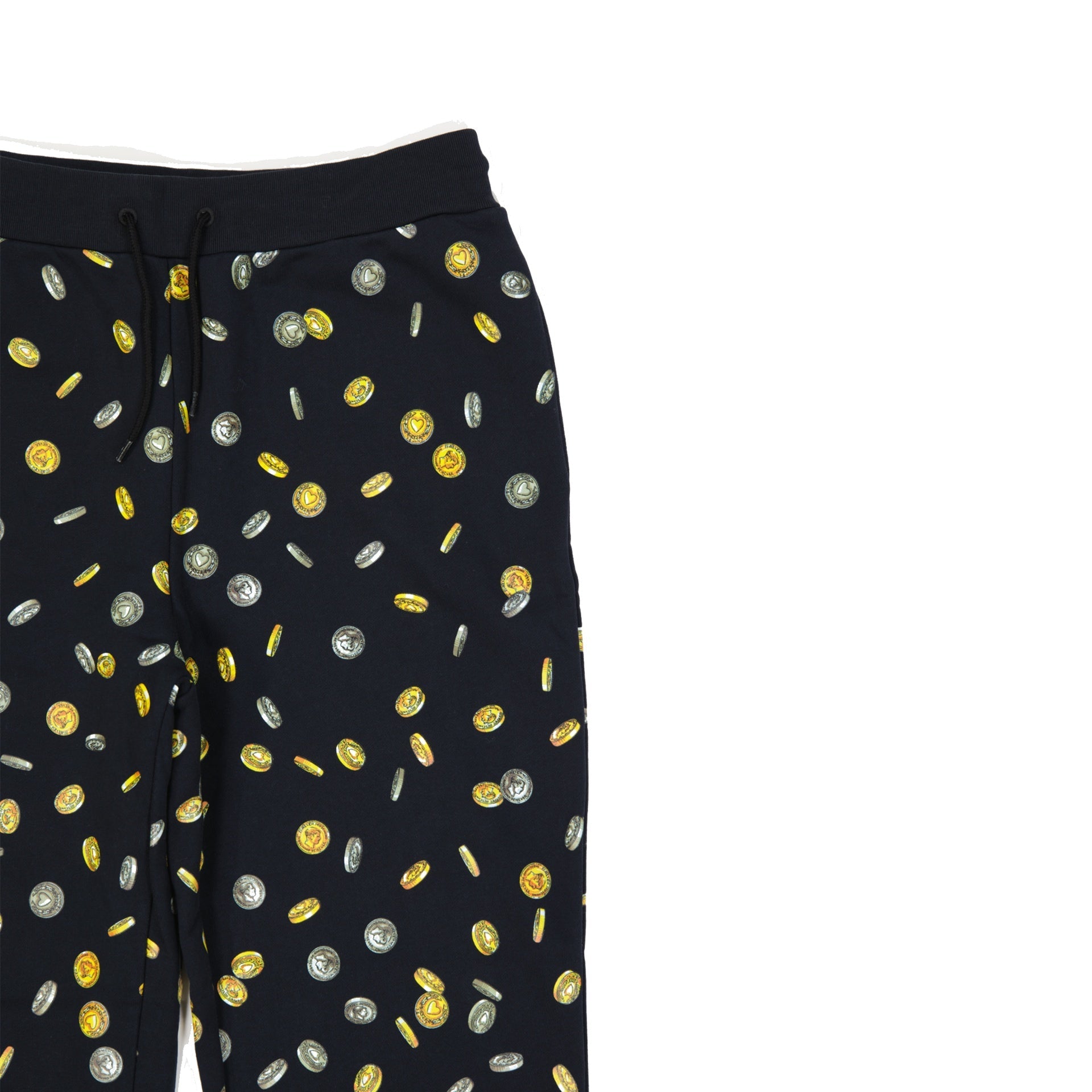 - Composition: 100% Cotton - Two side pockets - Elasticated waistband - Ribbed cuffs - Drawstring waist - All-over coin printed - Made in Italy -