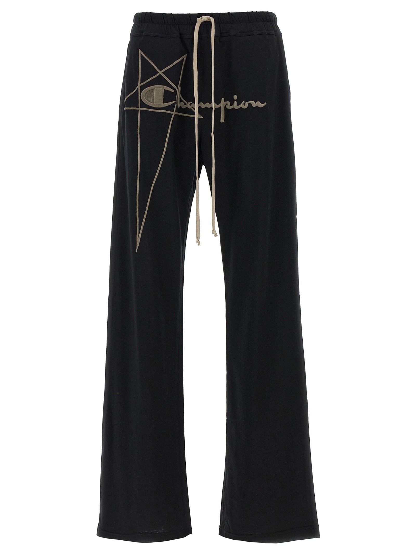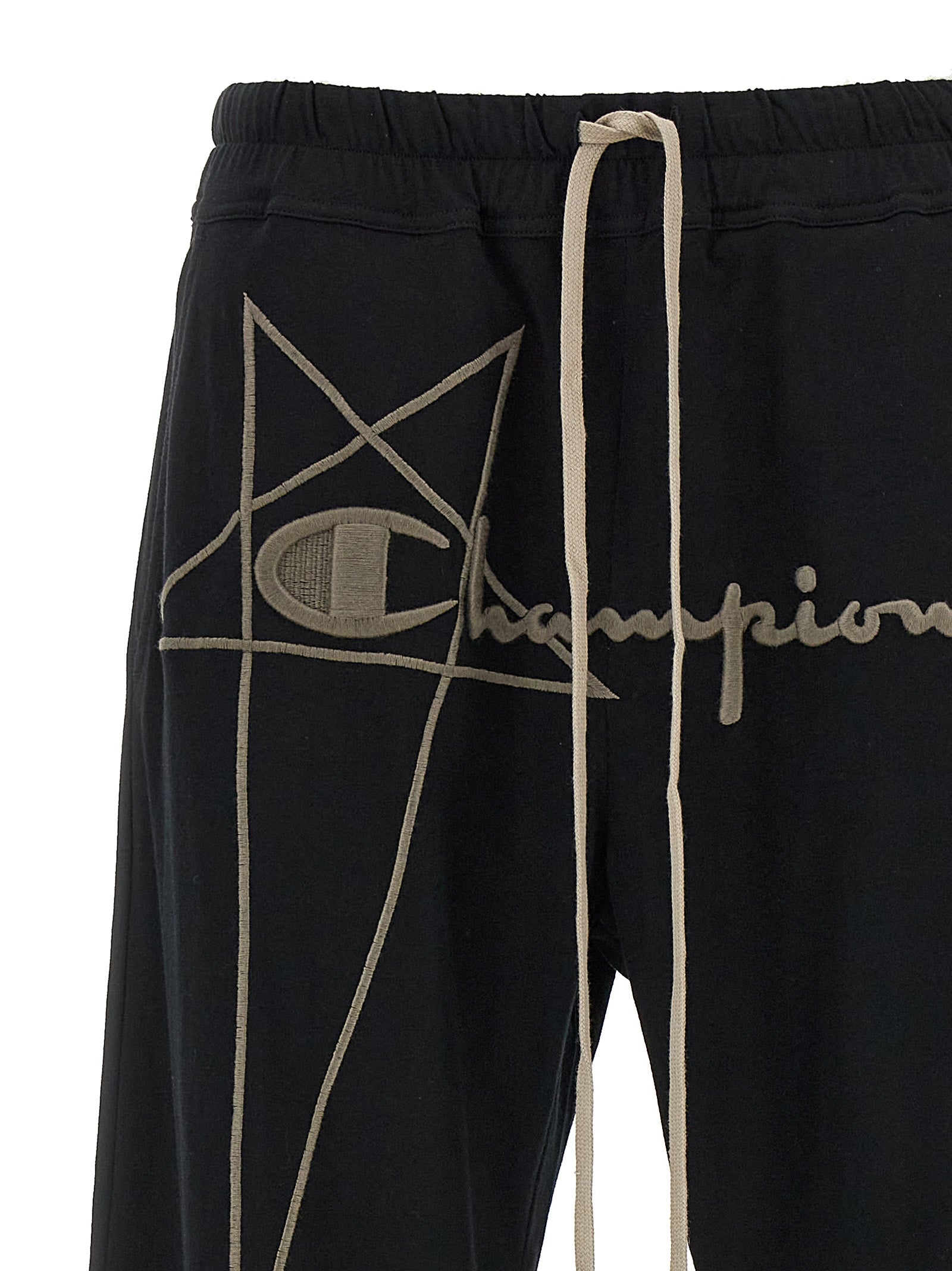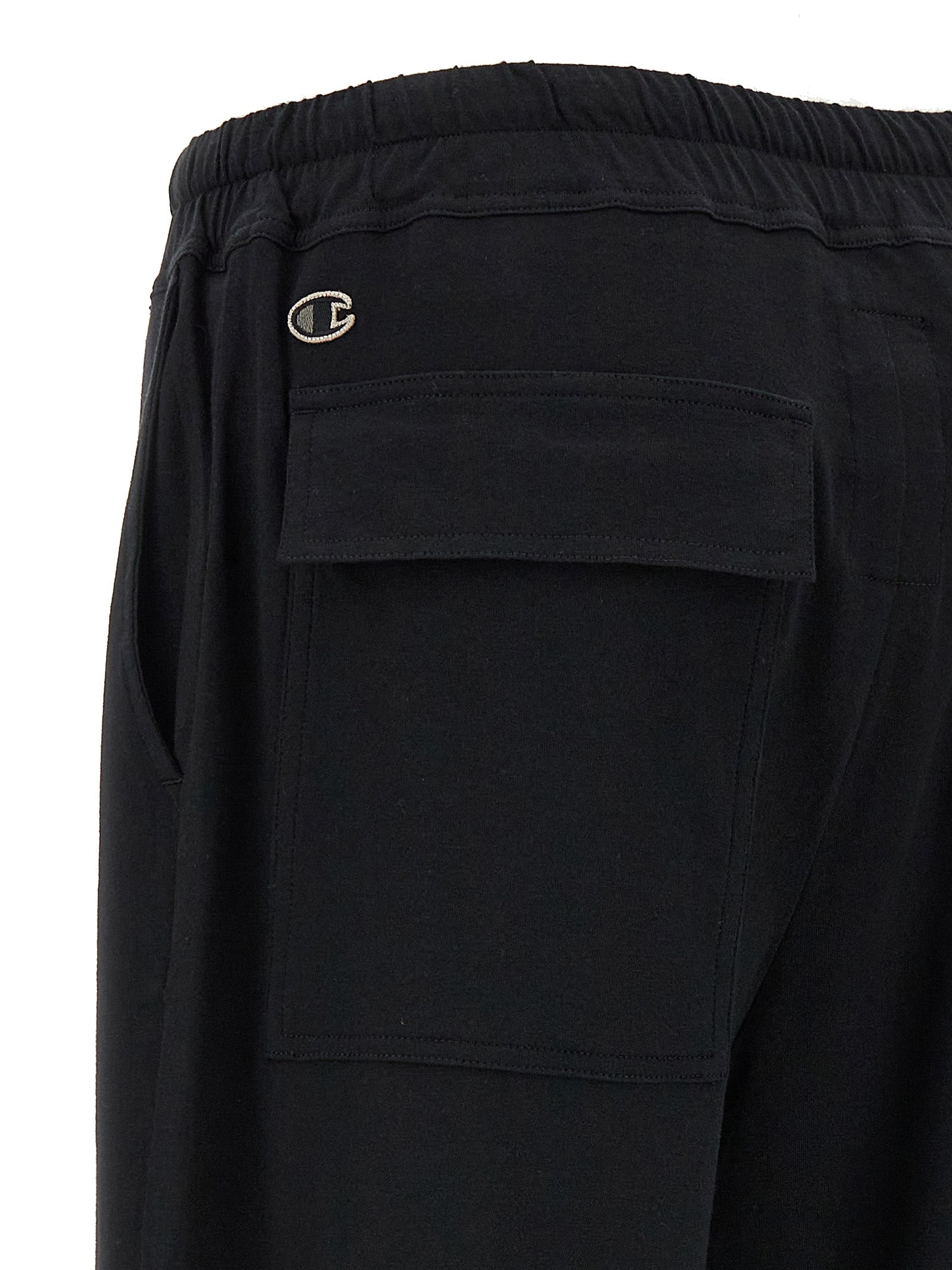 Rick Owens x Champion 'Cargo Dietrich Drawstring' cotton joggers with maxi logo embroidery, drawstring elastic waistband, pockets.