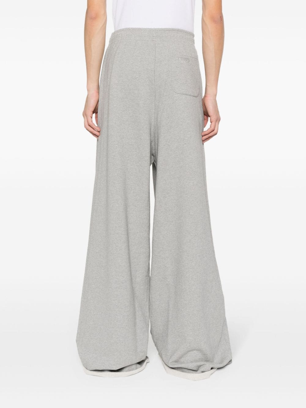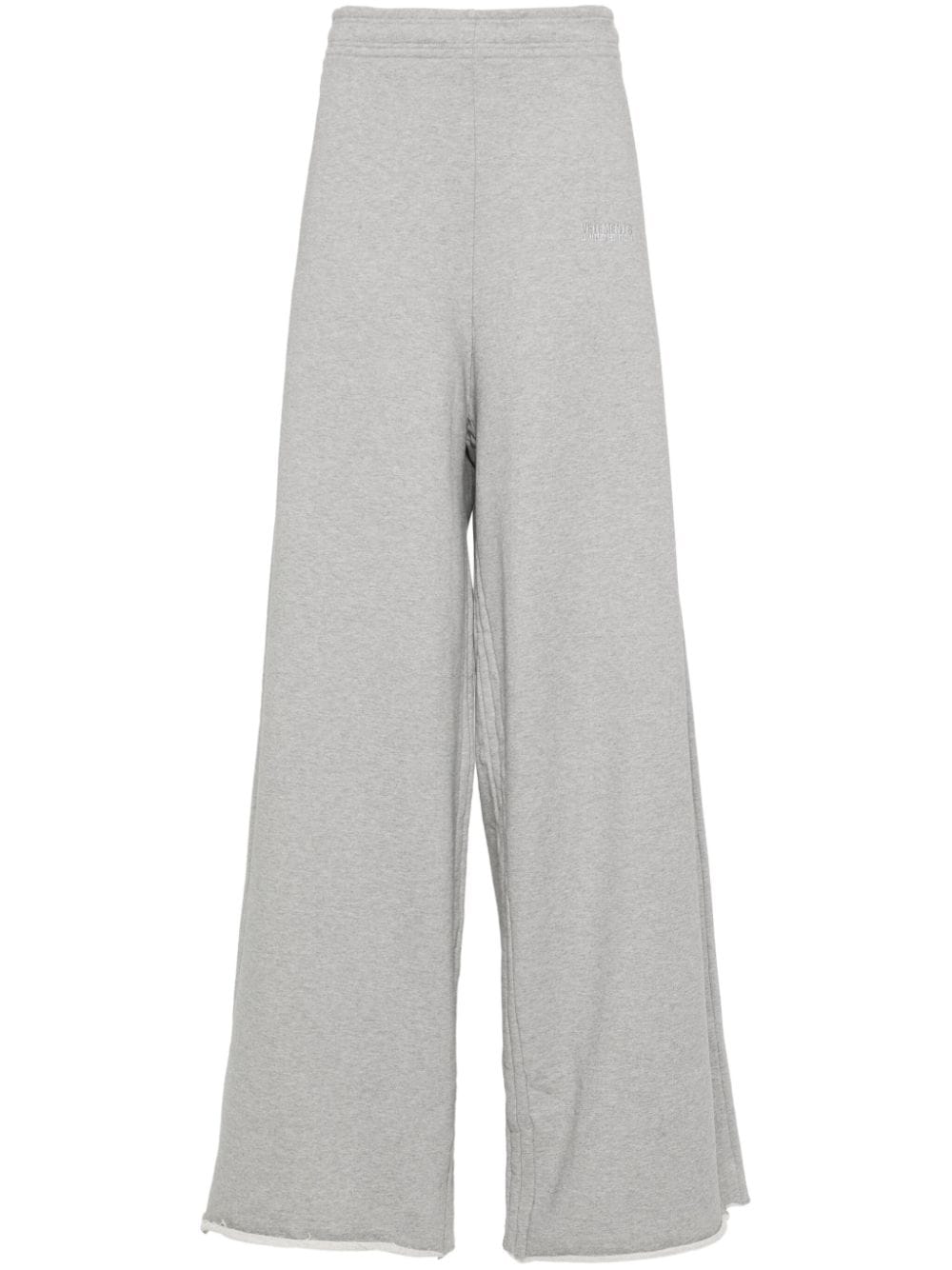 grey mélange effect cotton blend elasticated waistband embroidered logo to the front two side inset pockets rear patch pocket embroidered logo raw-cut hem wide leg unlined internal drawstring fastening waist When buying this unisex item, keep in mind that it is graded in standard men's sizing.