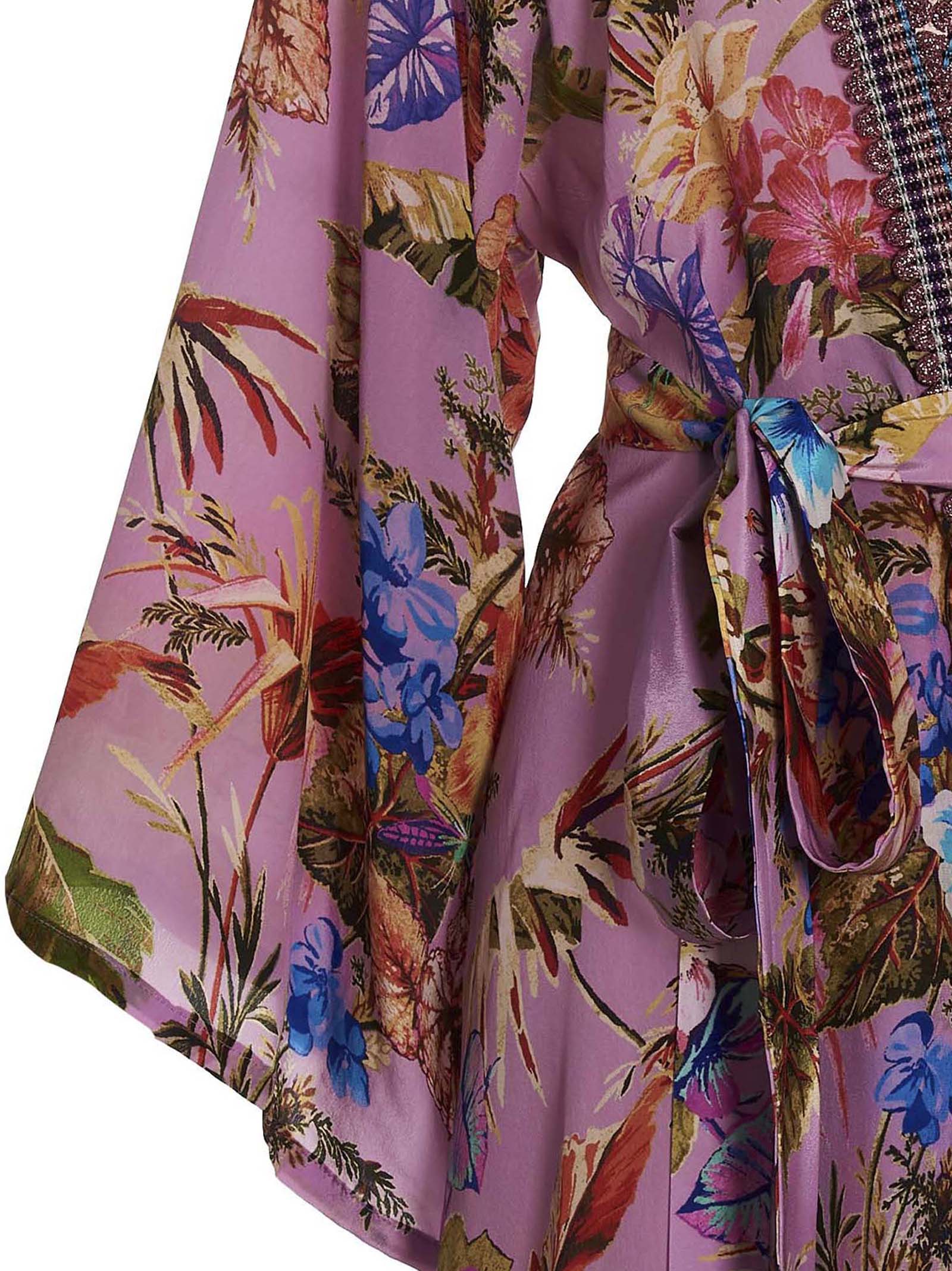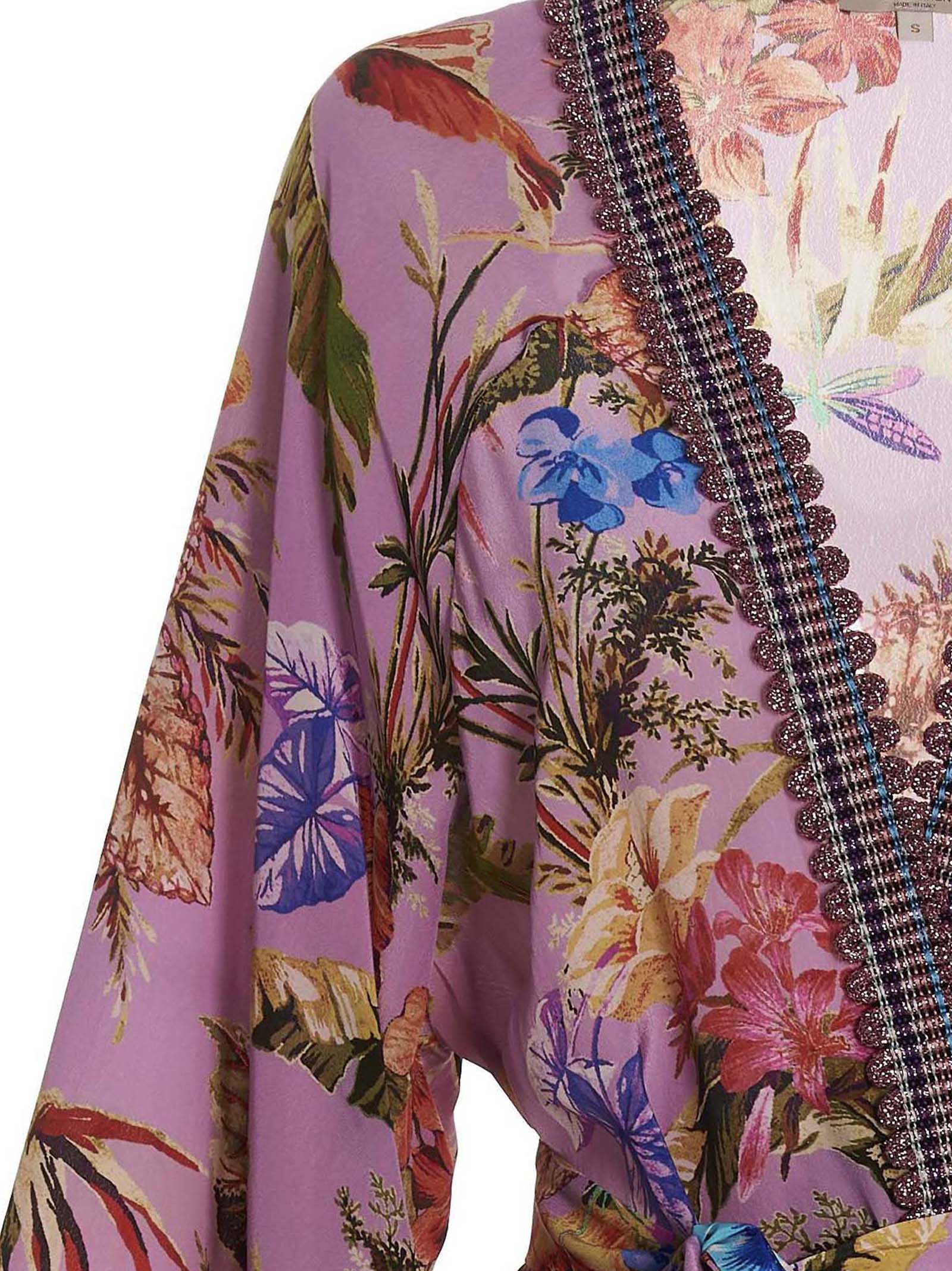 'Jade tropical' viscose kimono with all-over floral print, contrast trimming detail, removable belt.elt.