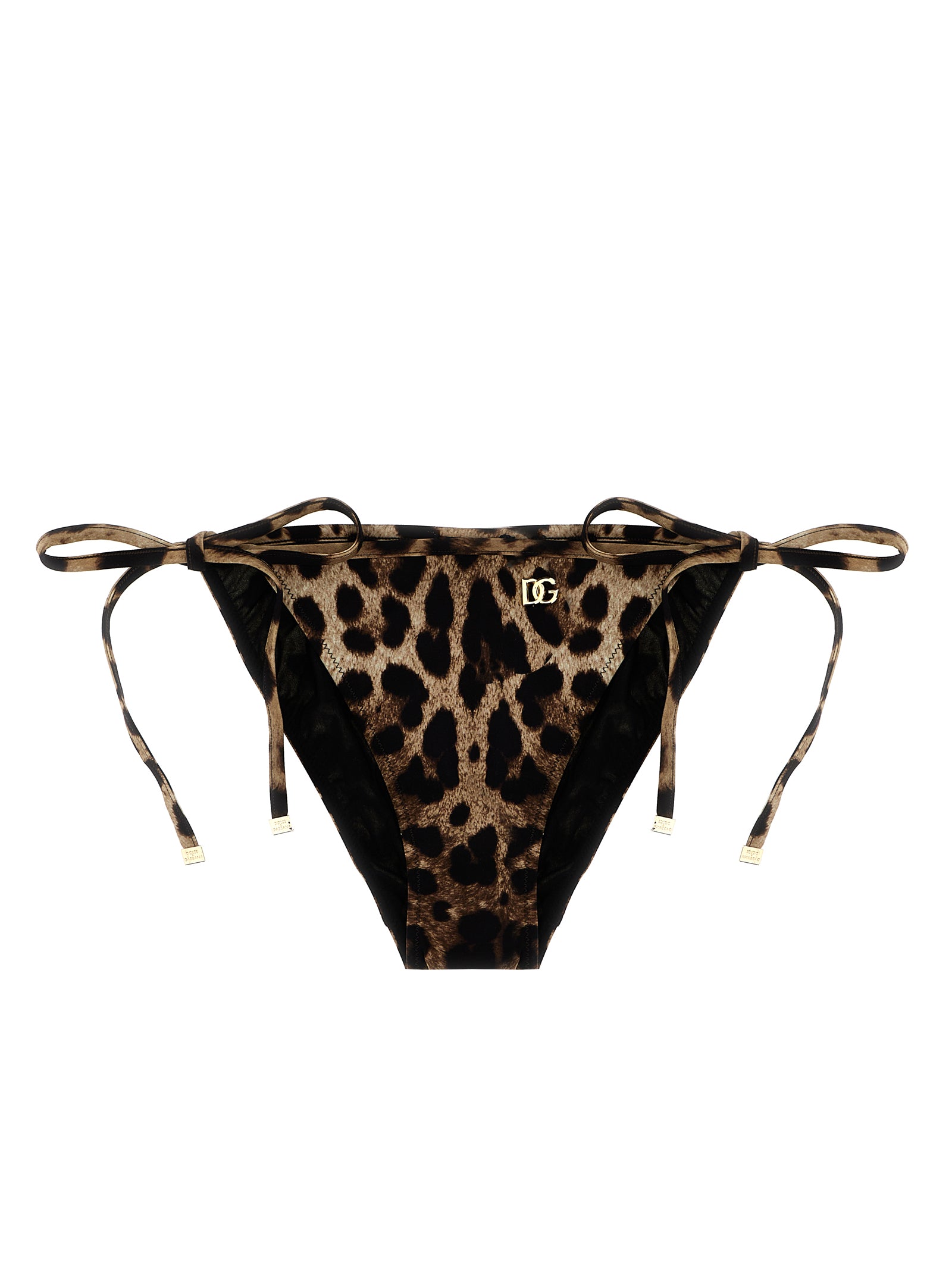 Bikini bottom in stretch fabric with 'Leopard' print, adjustable side ties.