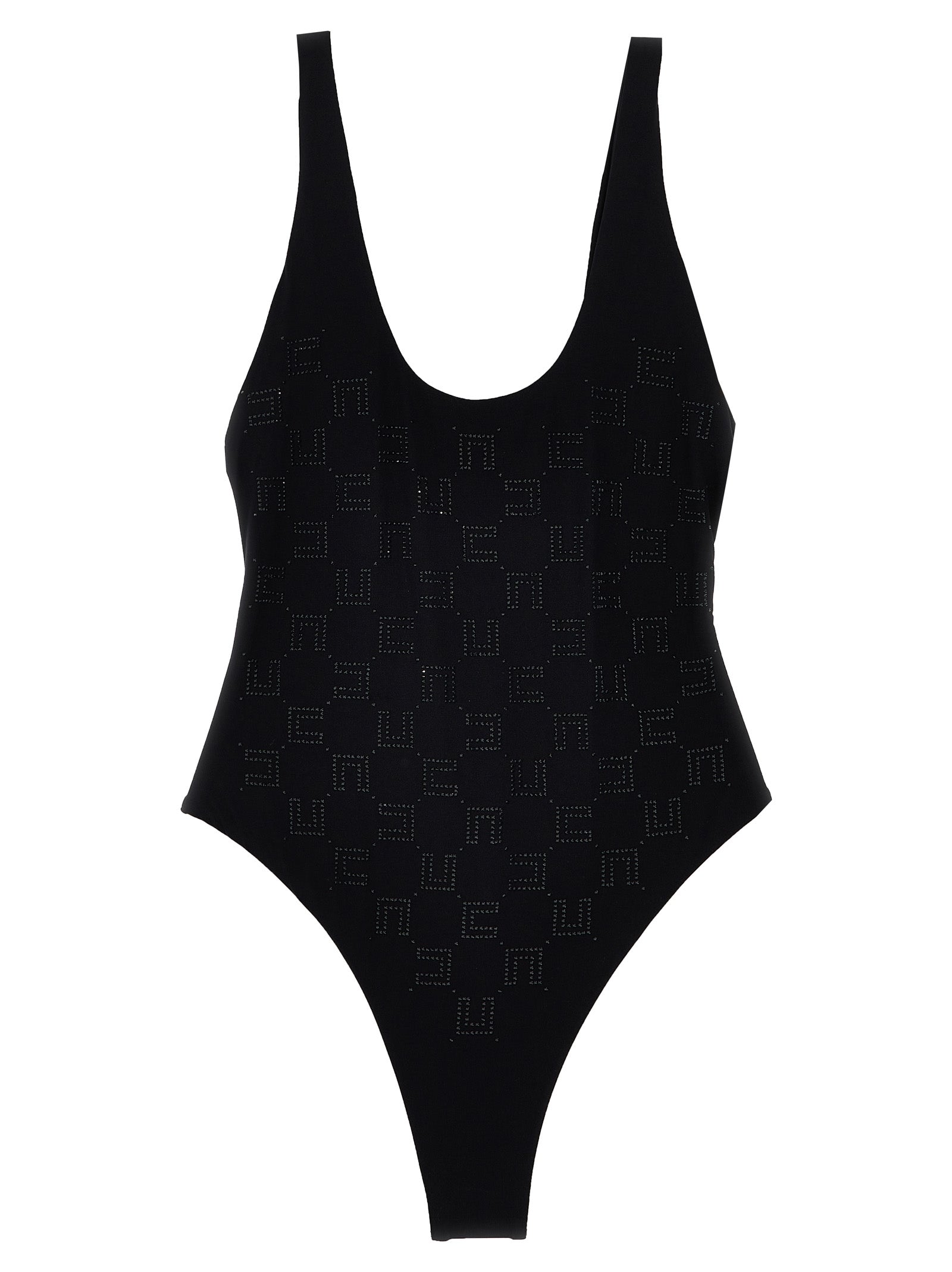 Elisabetta Franchi Rhinestone Logo One Piece Swimsuit