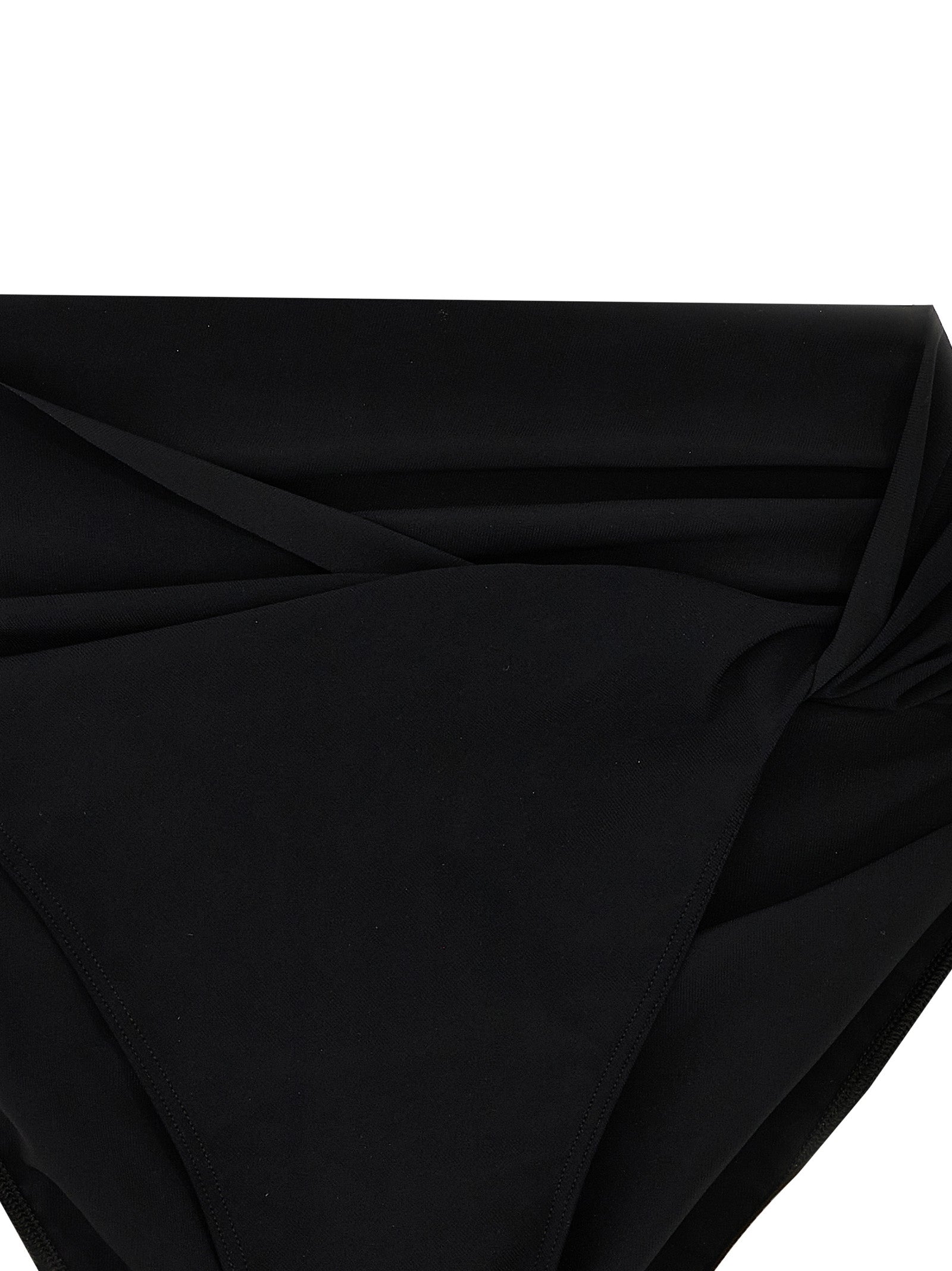 'Twist' bikini bottoms in stretch fabric, leg model with knot detail on the side.