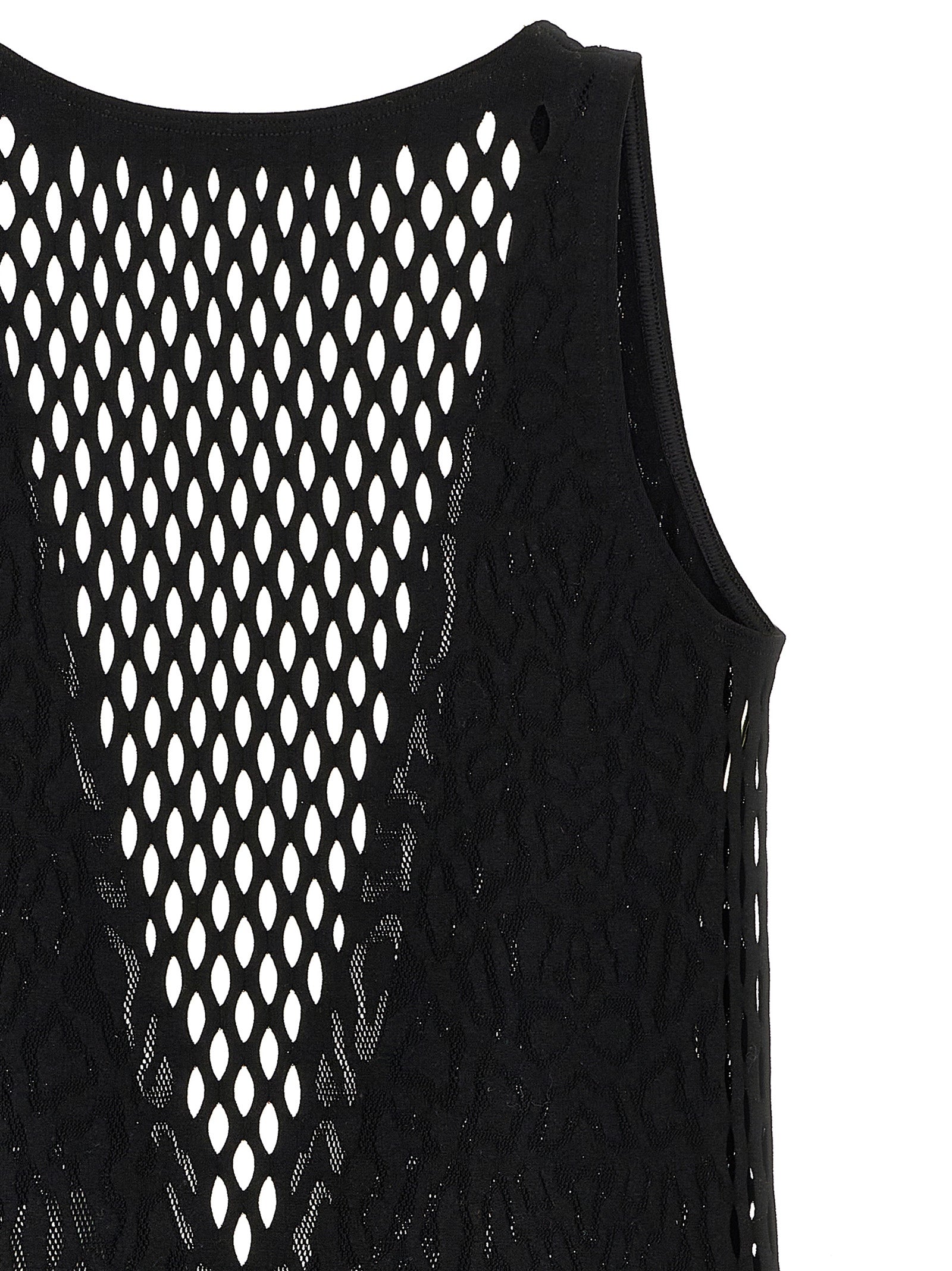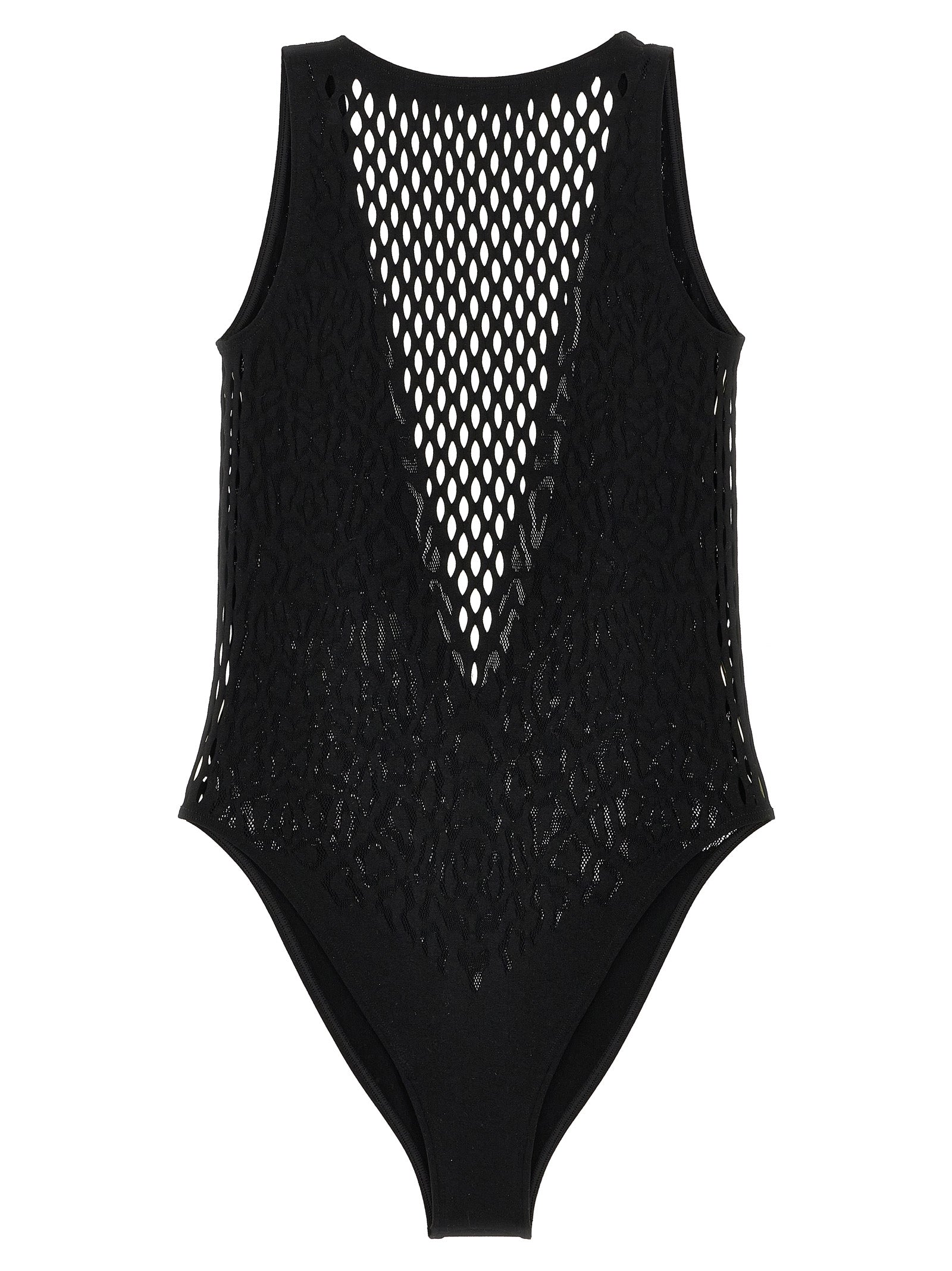 'Anatomic' one-piece swimsuit in laser-perforated stretch fabric with back V-neck and metal logo.