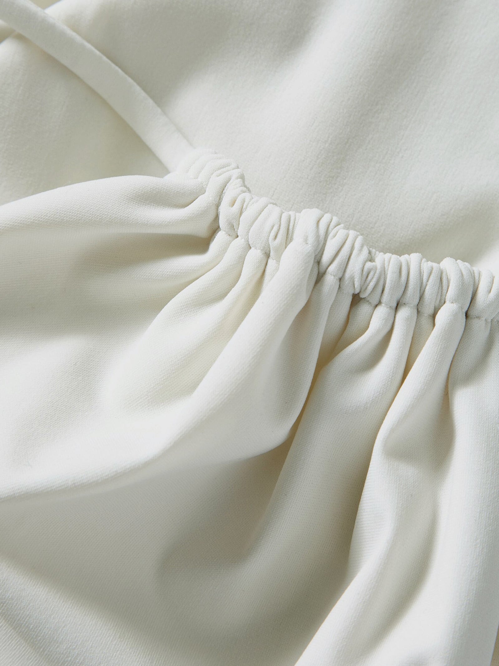 High-leg one-piece swimsuit in stretch fabric with plunge V-neck, halter neck closure, adjustable drawstring at the waist.
