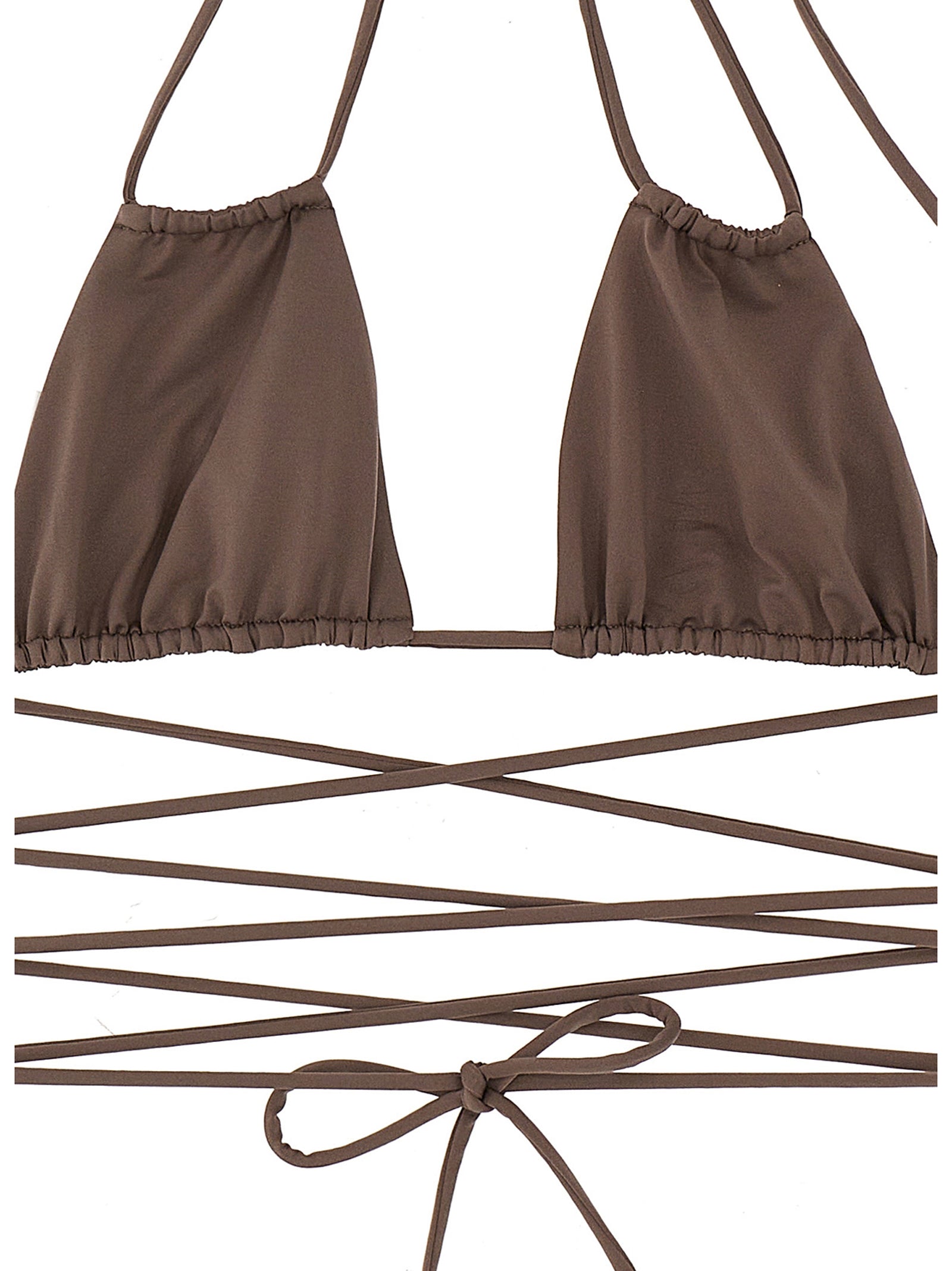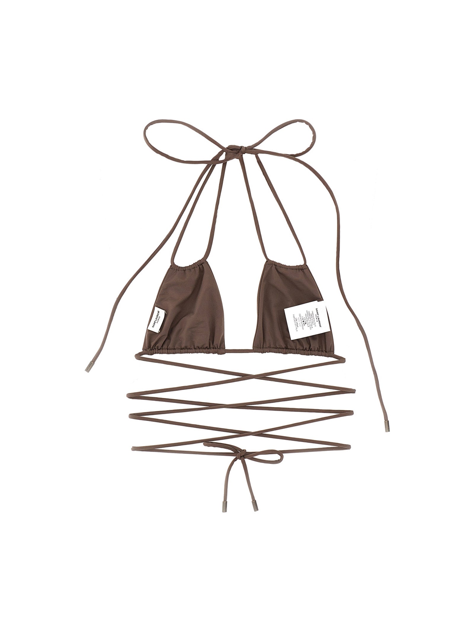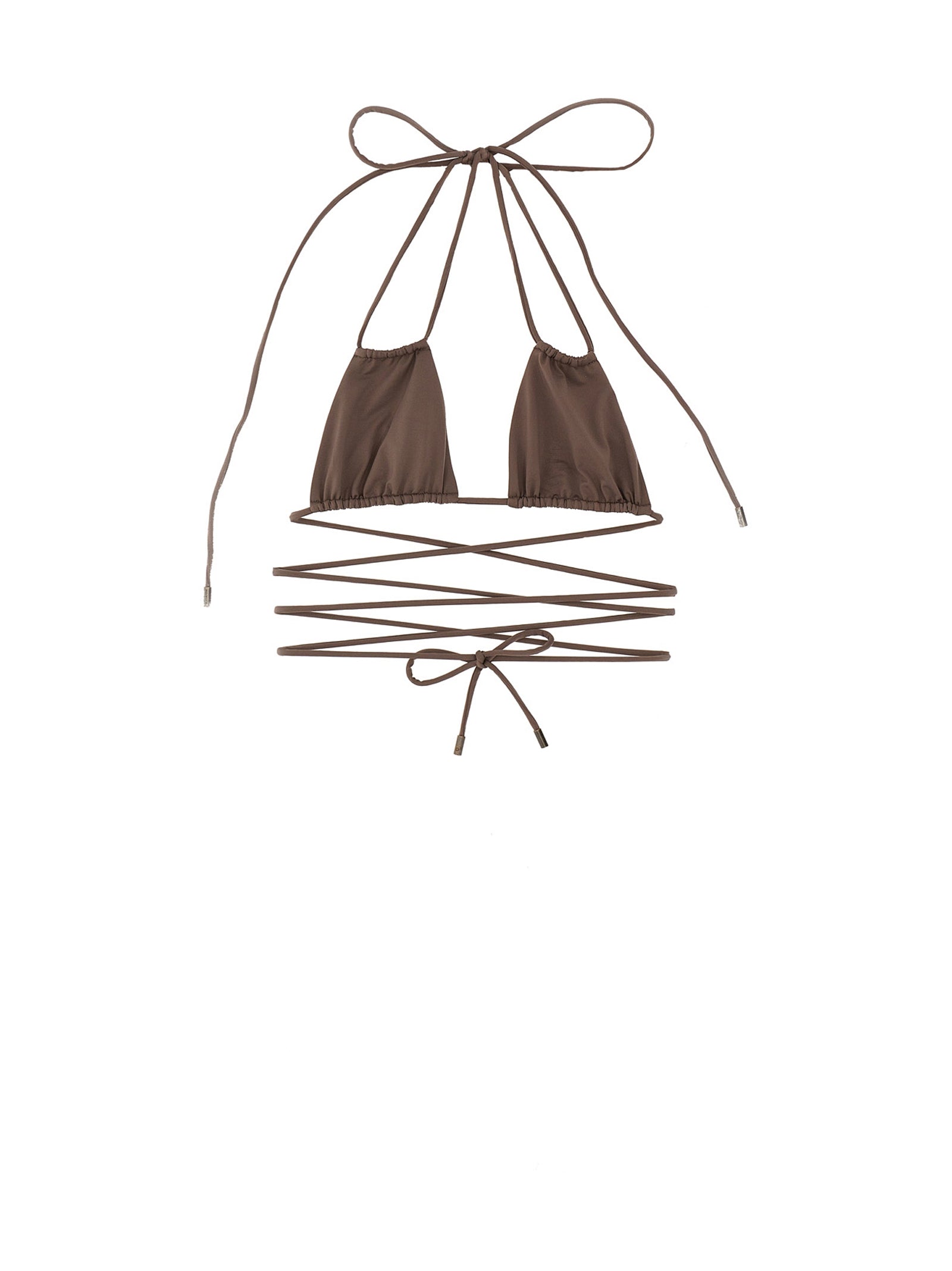 Stretch fabric bikini top with lacing at the neck and on the back.