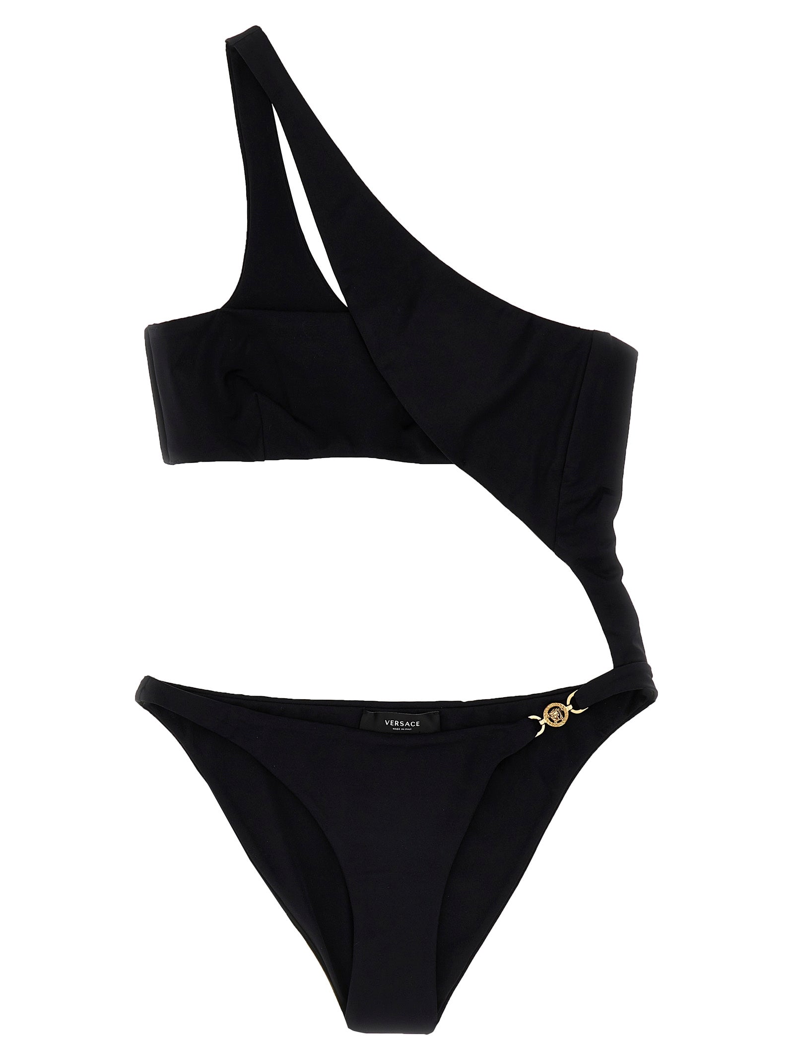 Stretch fabric one-piece swimsuit featuring cut out details and 'Medusa' metal details.