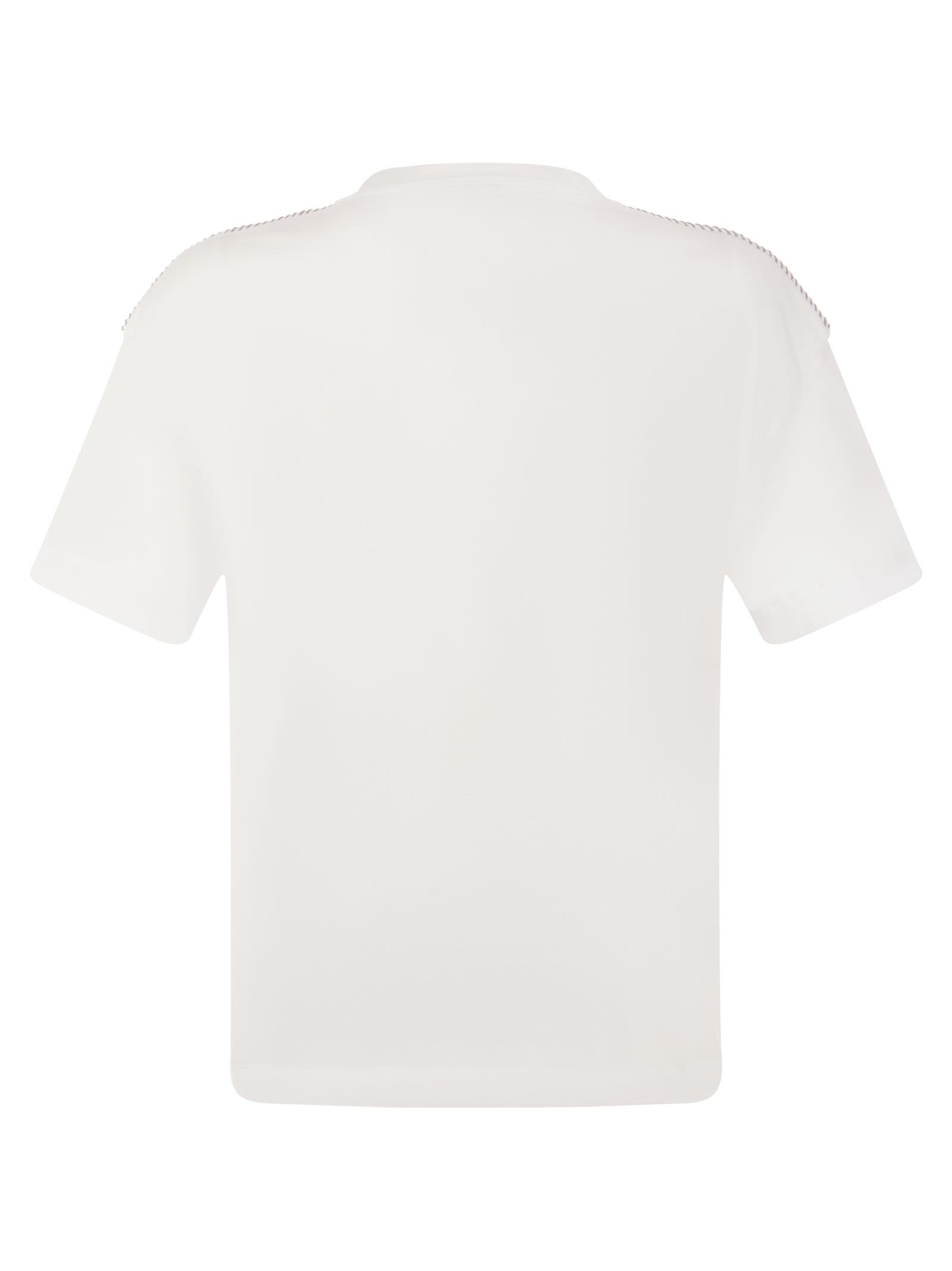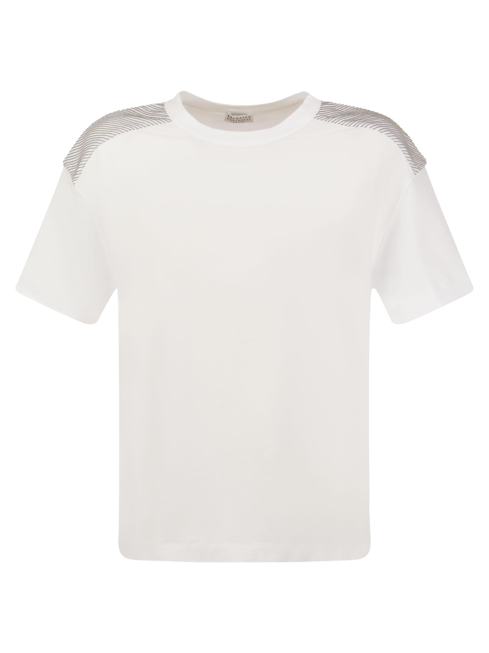 Brunello Cucinelli Stretch Cotton Jersey T Shirt With Shiny Shoulders