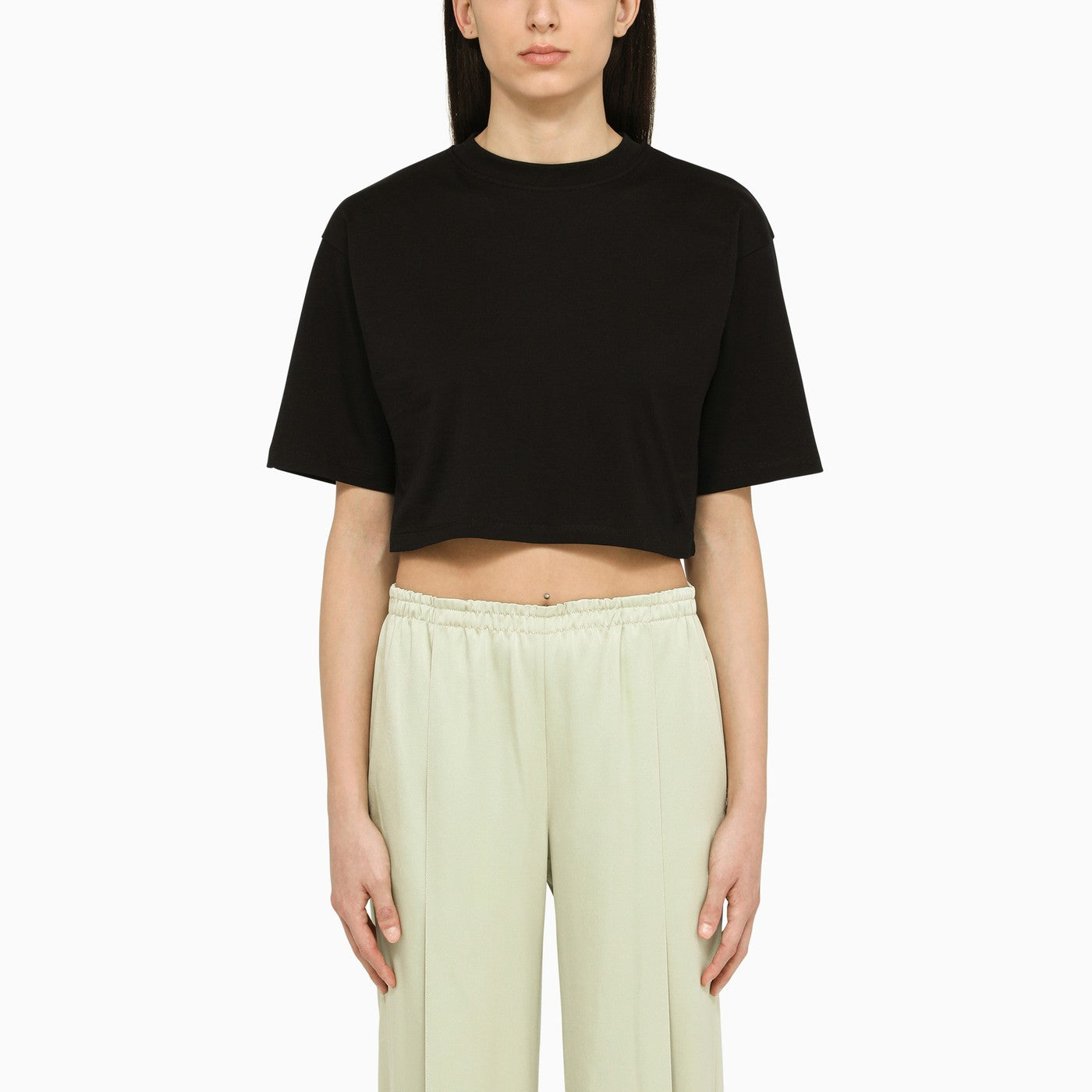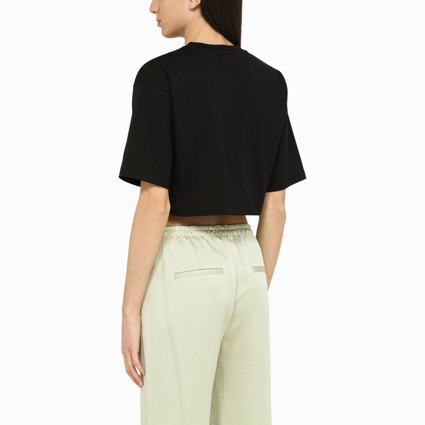 Cropped t-shirt by Loulou Studio in black cotton, featuring crewneck, short sleeves and straight hem.