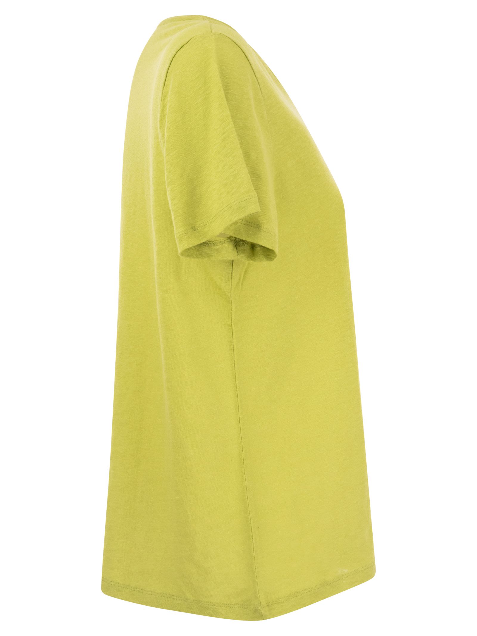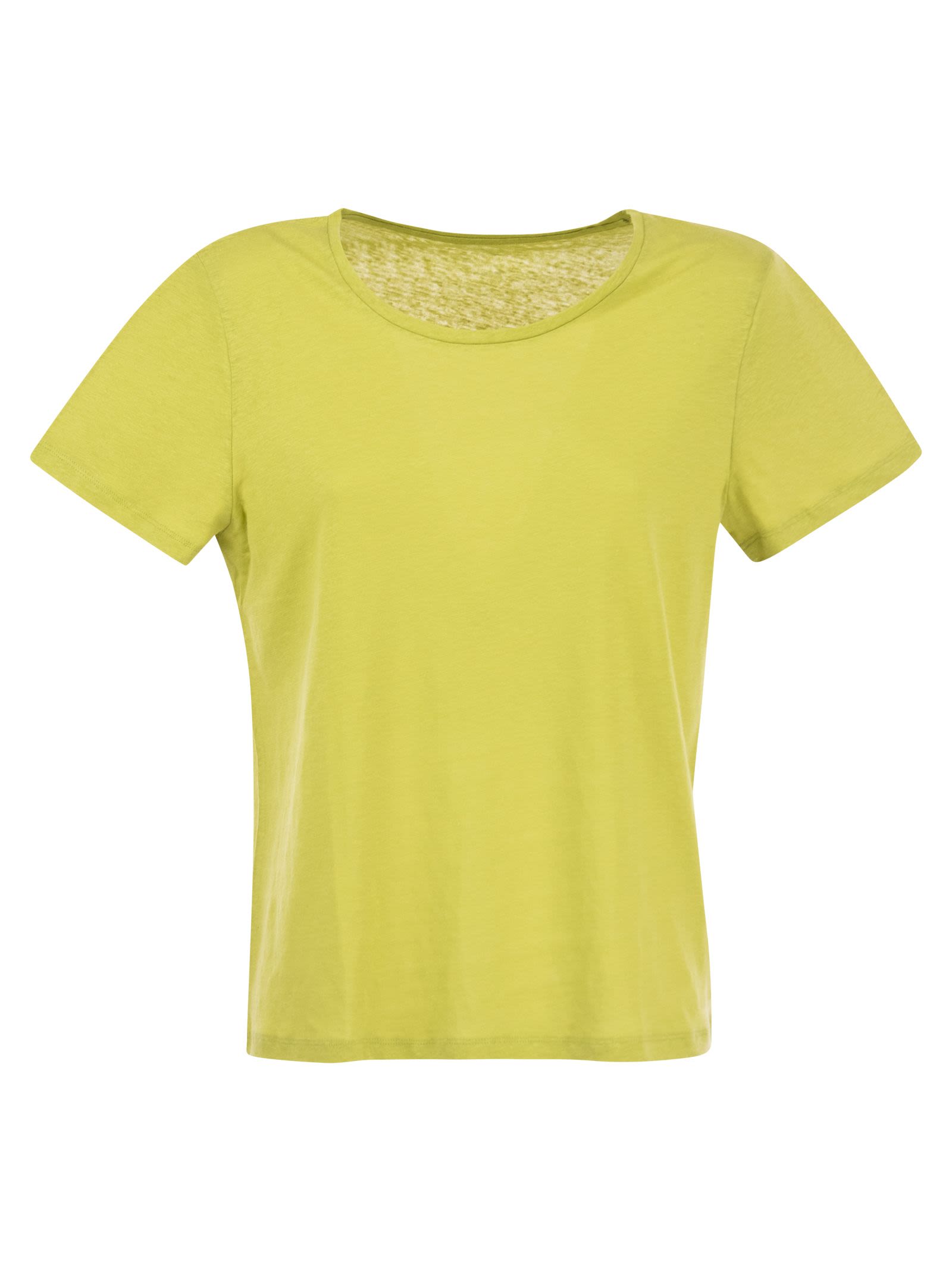 Majestic Crew Neck T Shirt In Linen And Short Sleeve