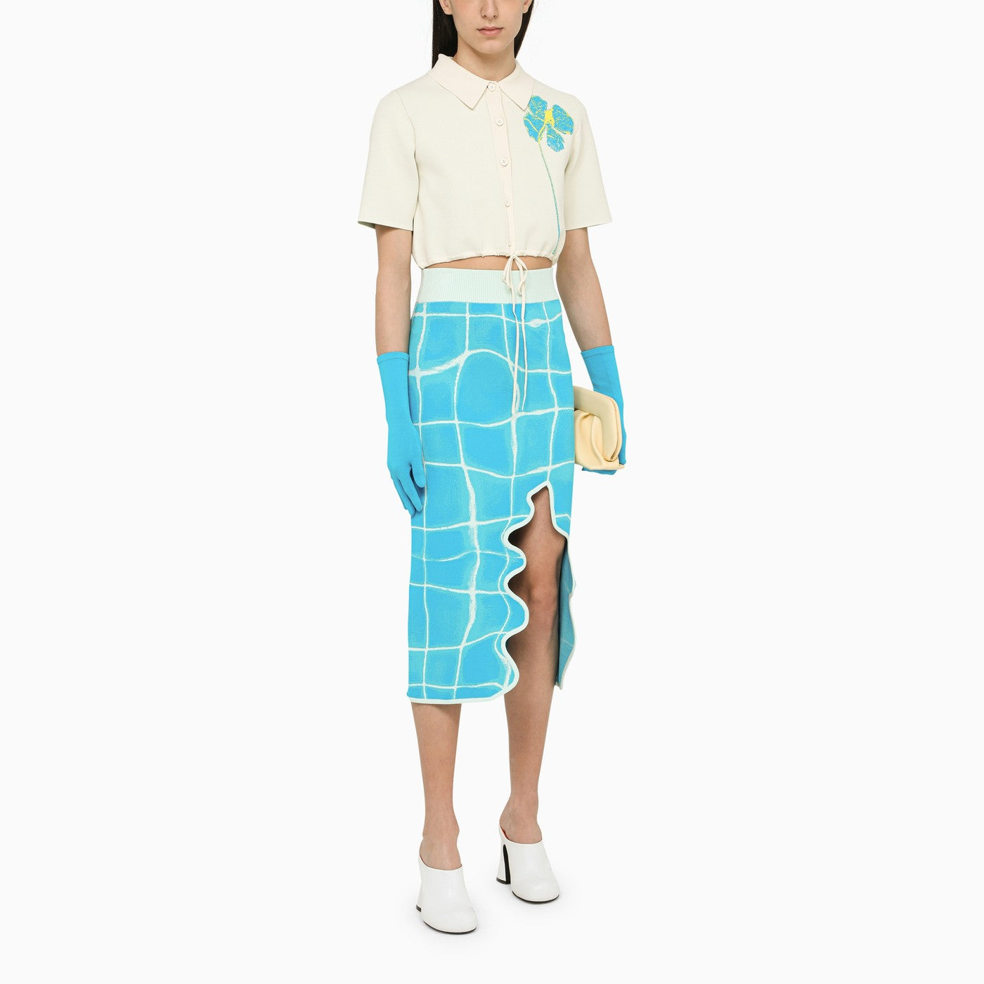 Pearl-coloured recycled viscose jersey short shirt by PH5 with short sleeves, drawstring hem, button fastening, classic collar and contrasting front inlay.