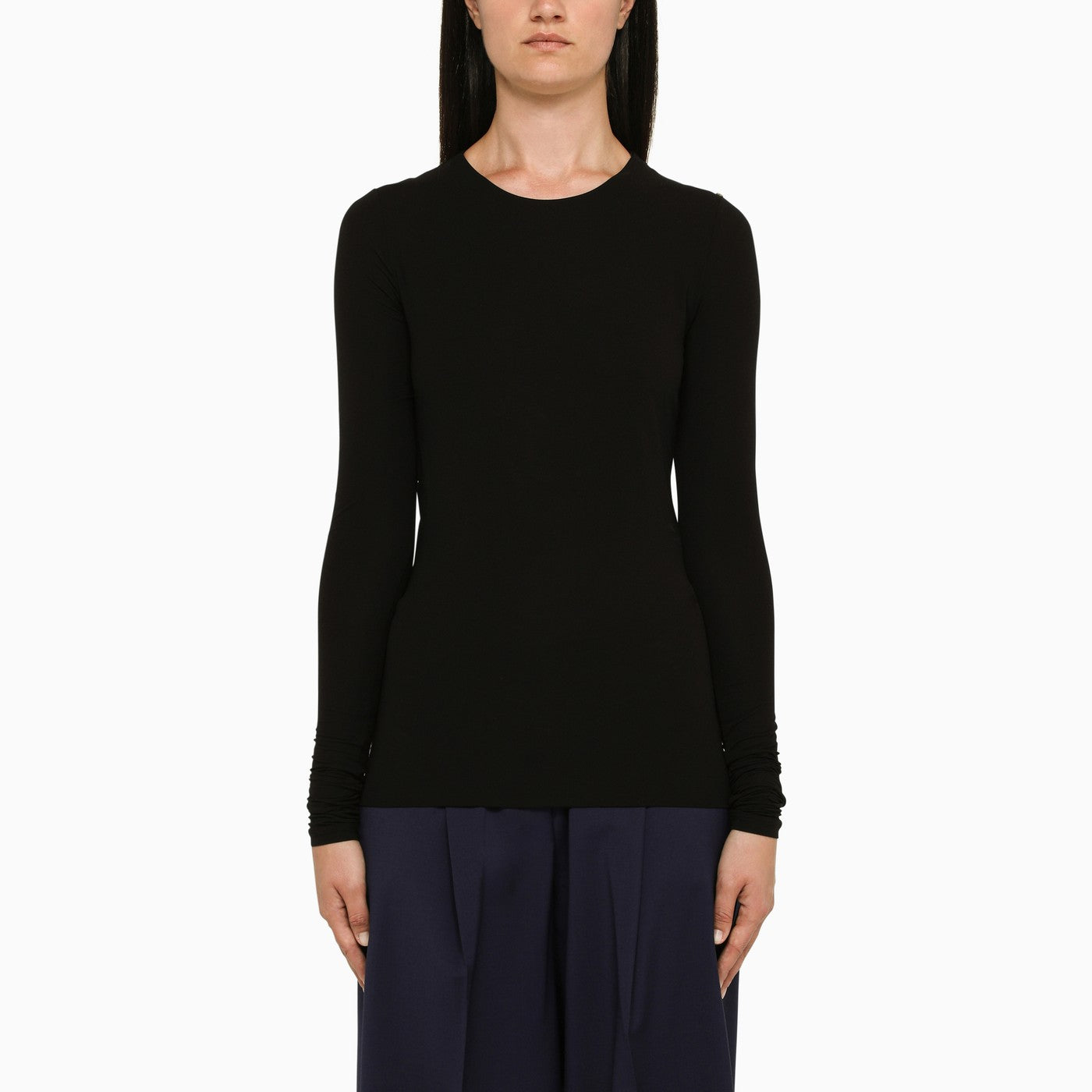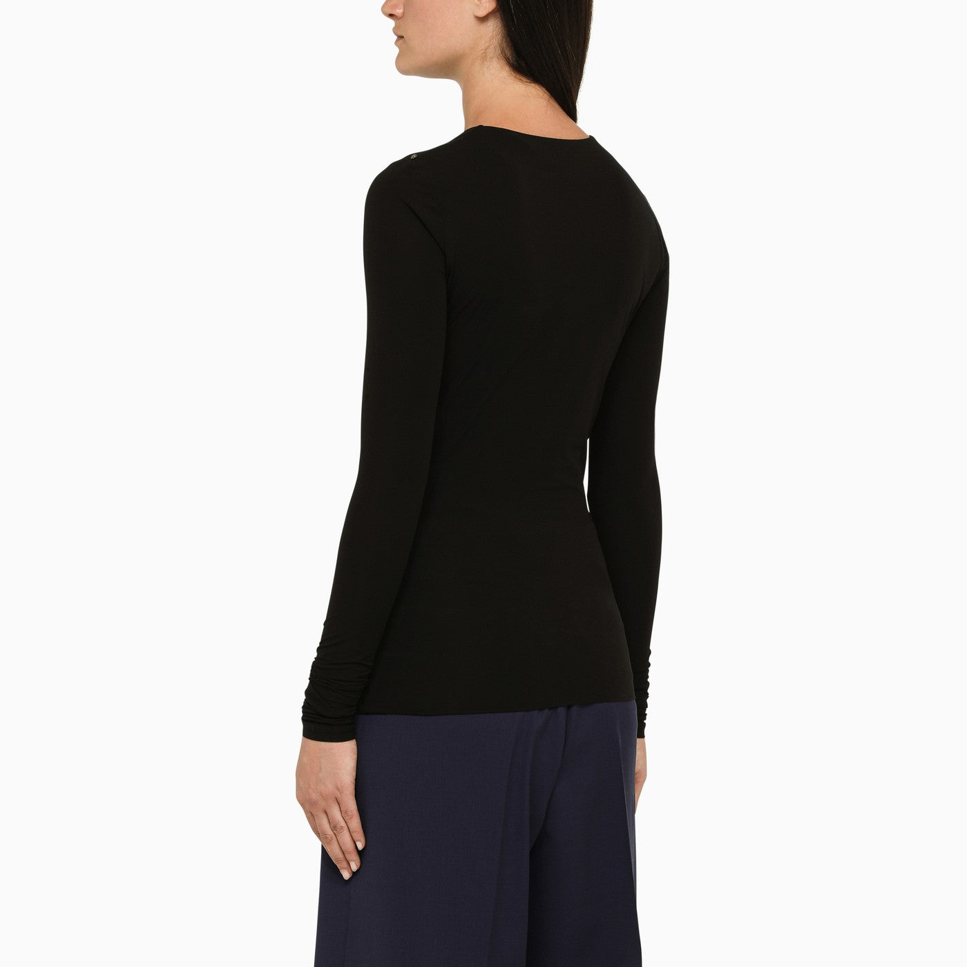 Black Sportmax top, characterised by semi-transparent long sleeves and rounded neckline.
