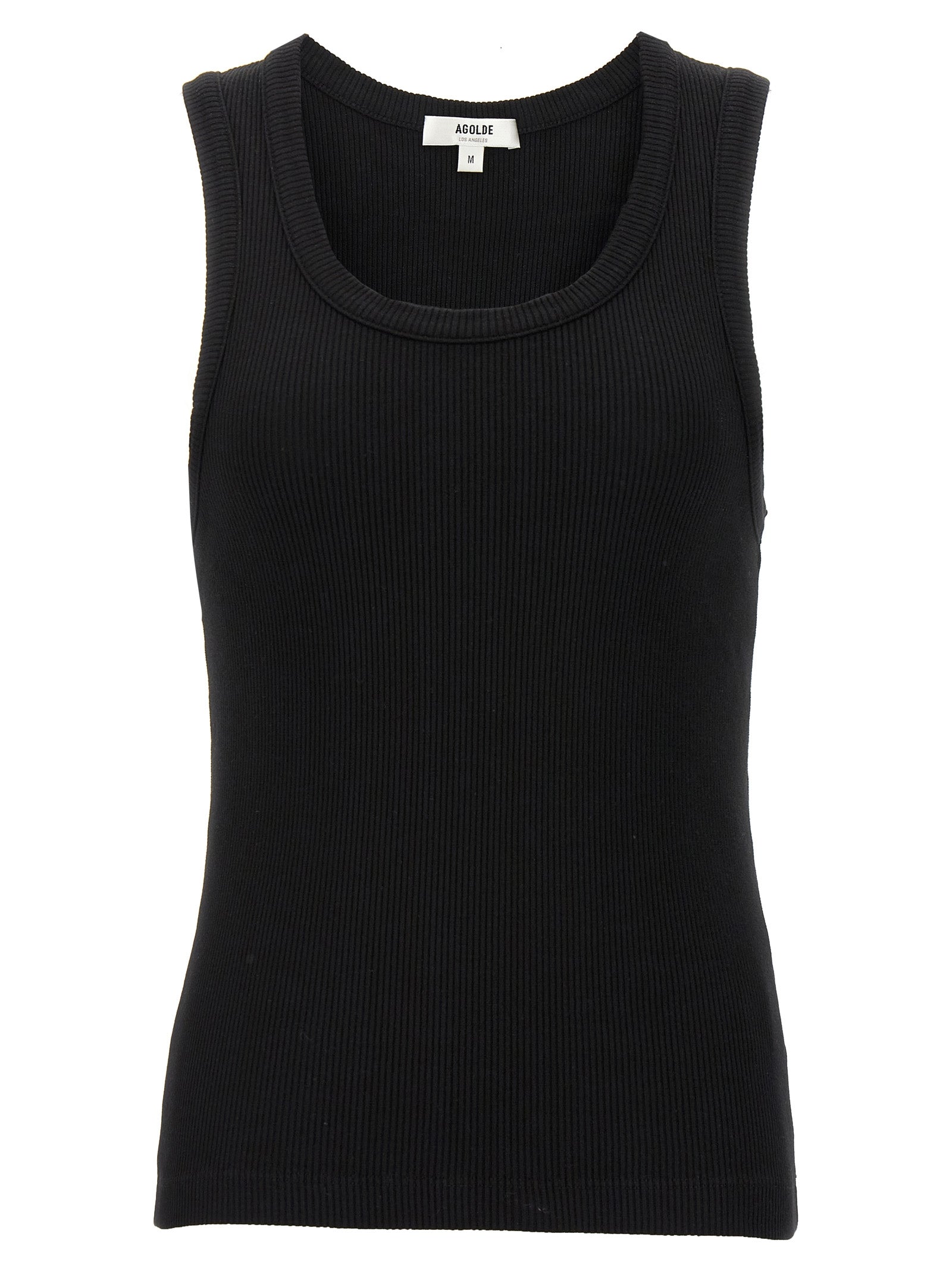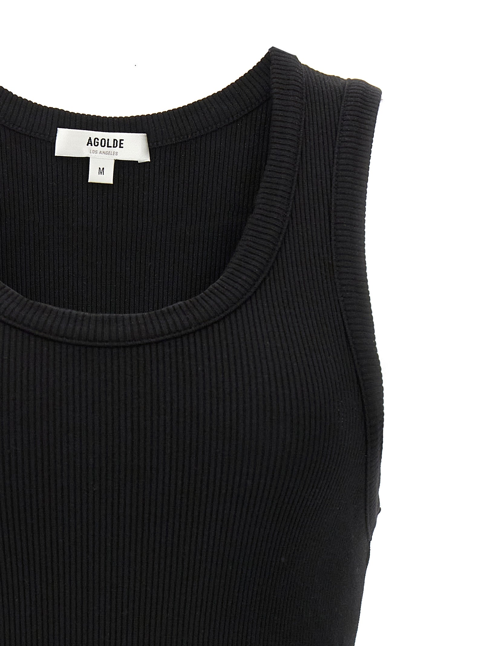 'Poppy' ribbed cotton blend top with round neckline, sleeveless. SUSTAINABLE: This product is made of organic cotton.
