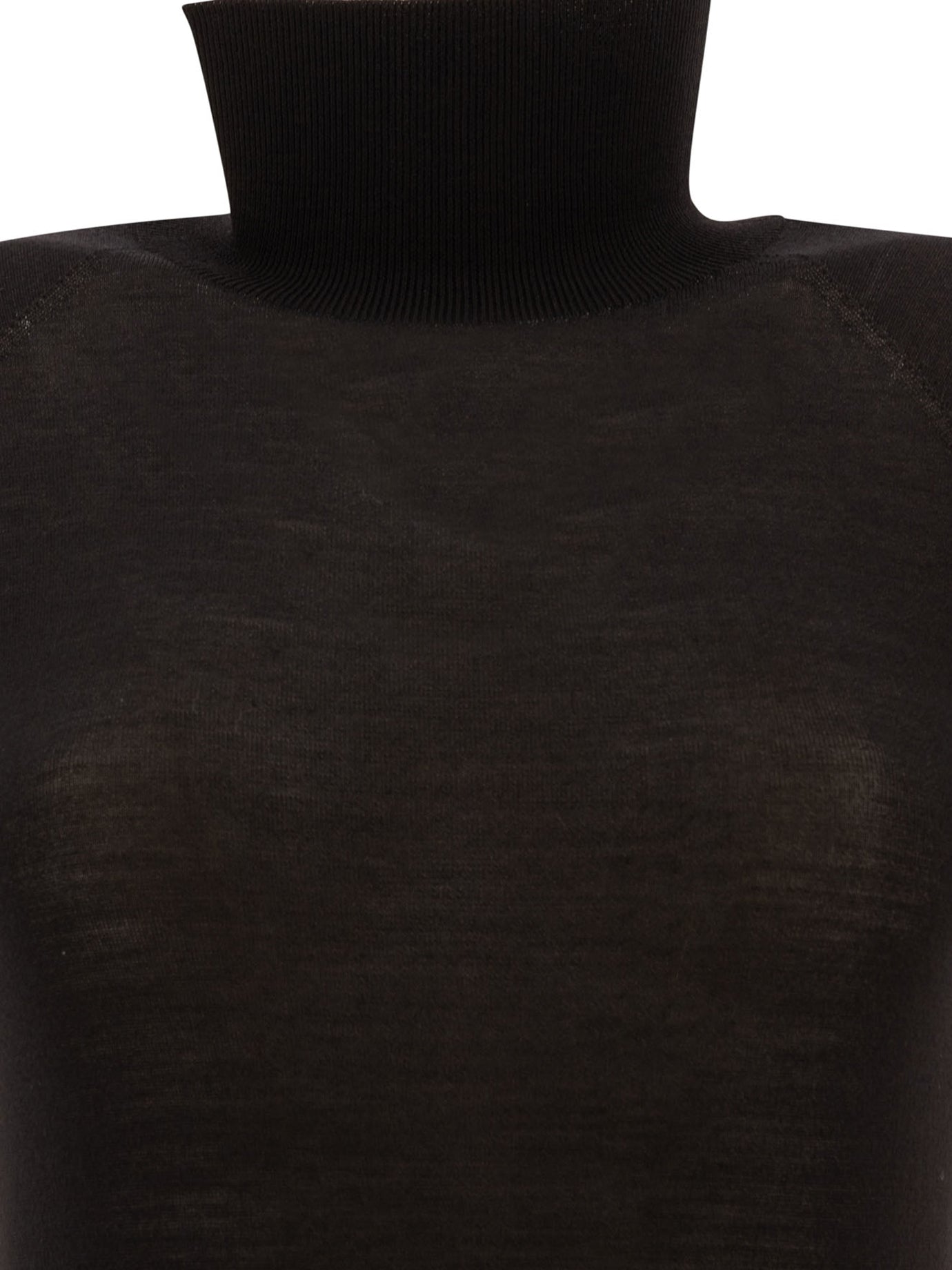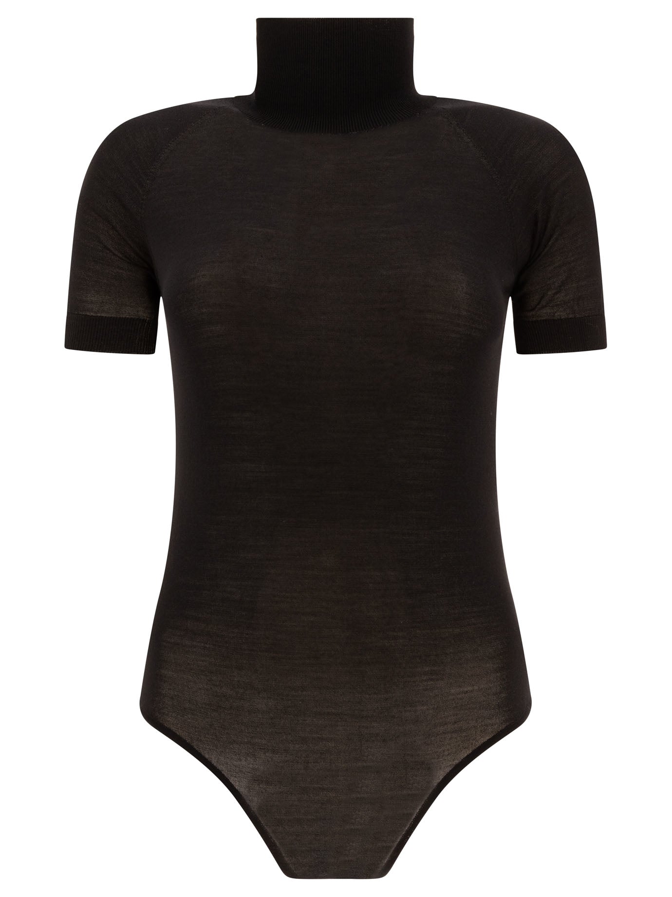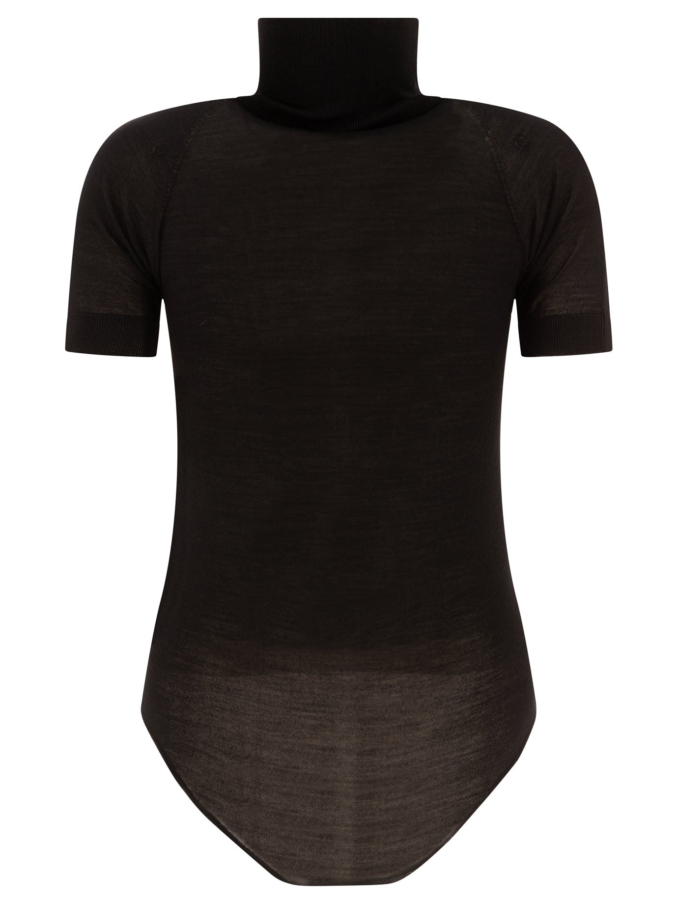 Alaïa's semi-transparent knit wool bodysuit is the perfect garment to enhance your elegance with a touch of originality. Made from the finest merino wool, this bodysuit ensures comfort and sophistication for any occasion. The exclusive design and delicate knitting give this bodysuit unparalleled femininity.