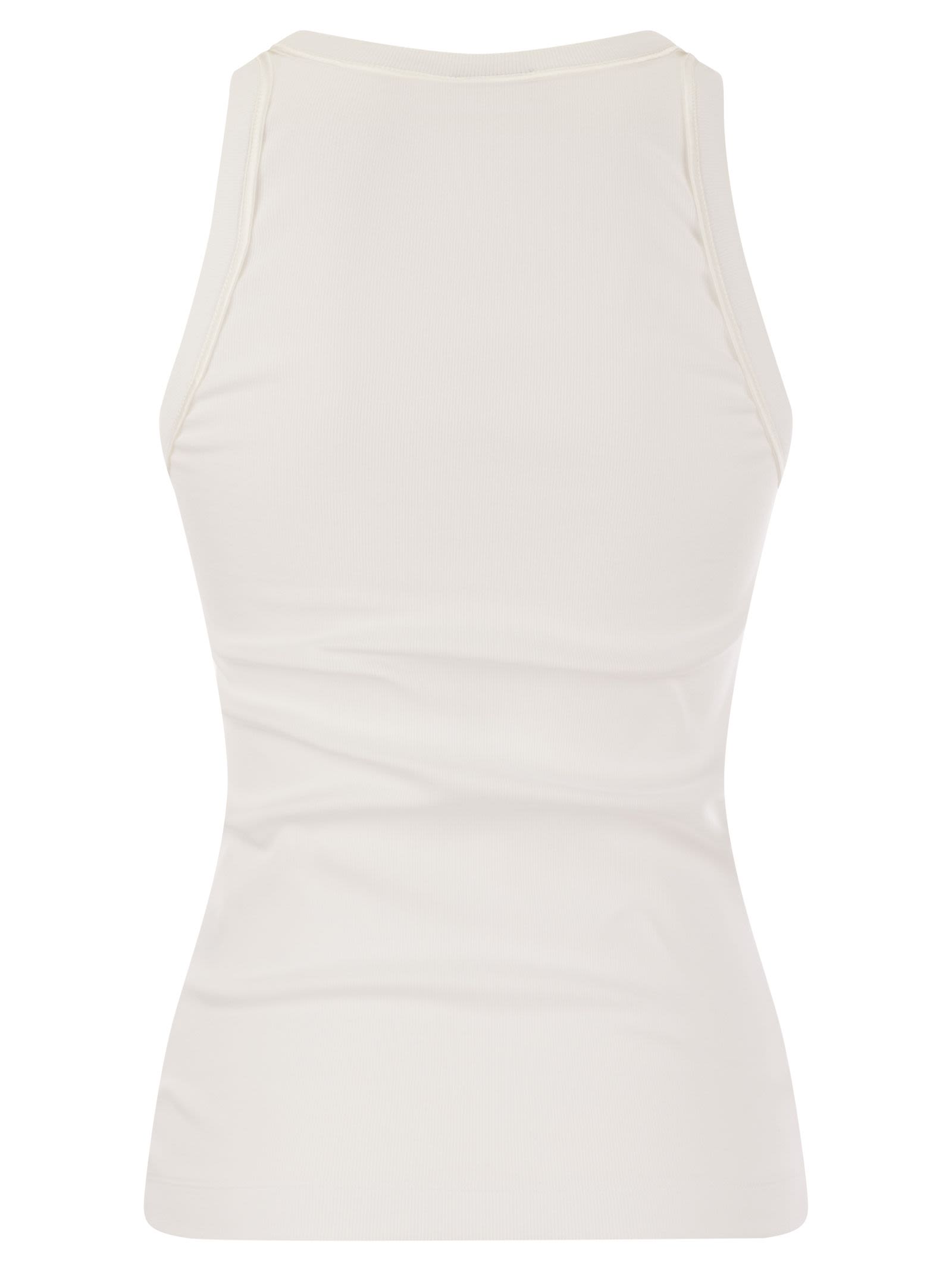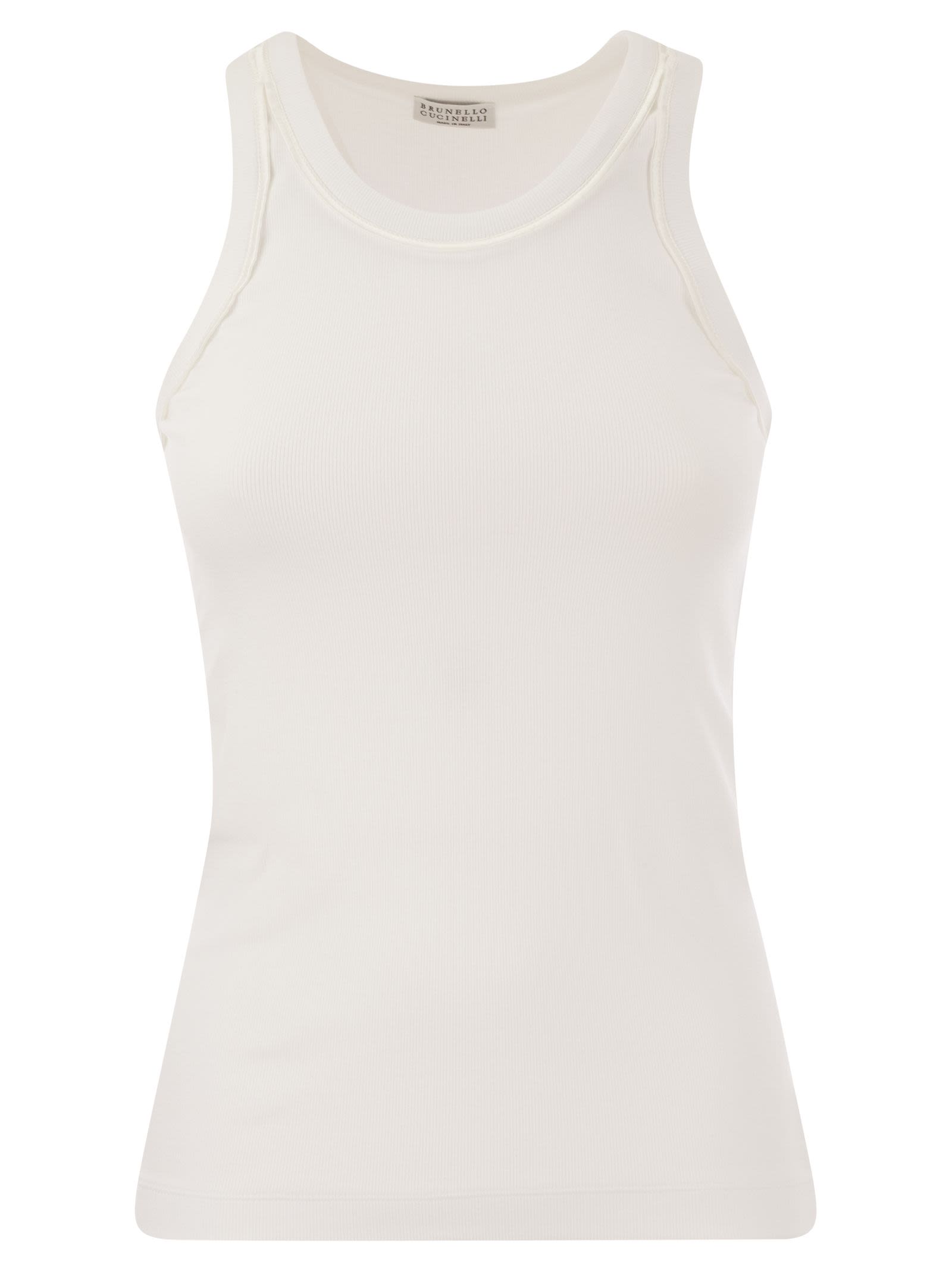 Brunello Cucinelli Stretch Cotton Rib Jersey Top With Satin Trims