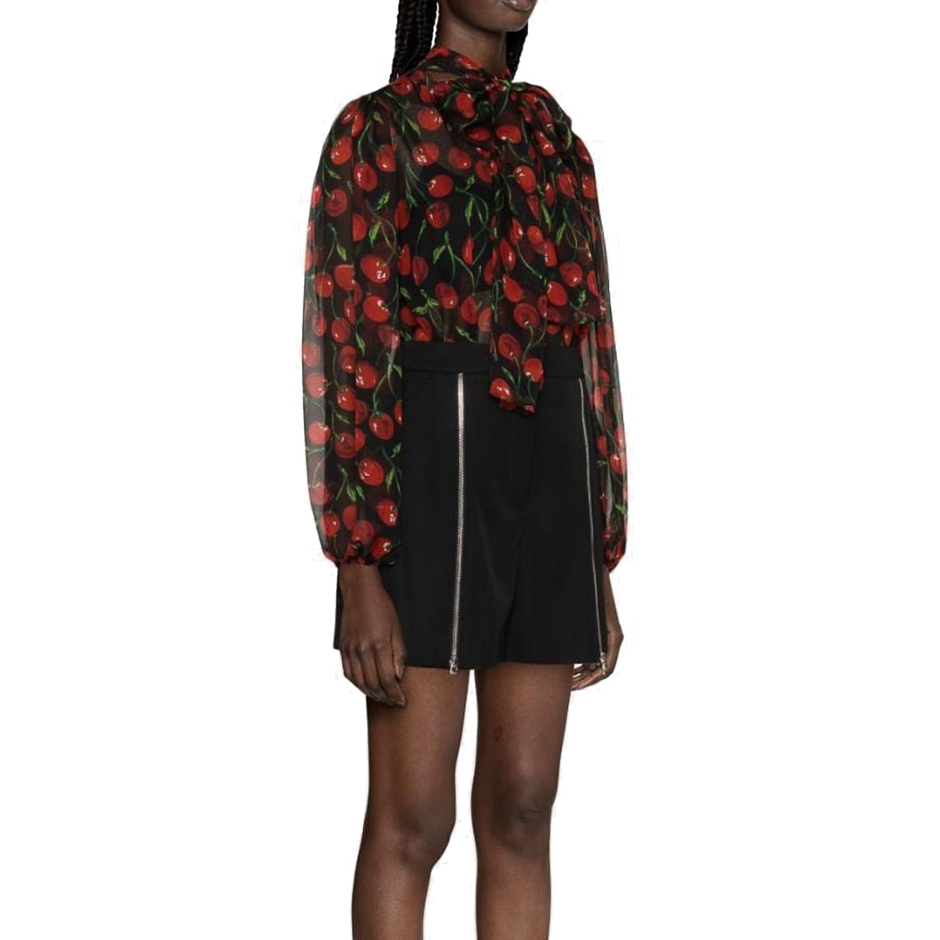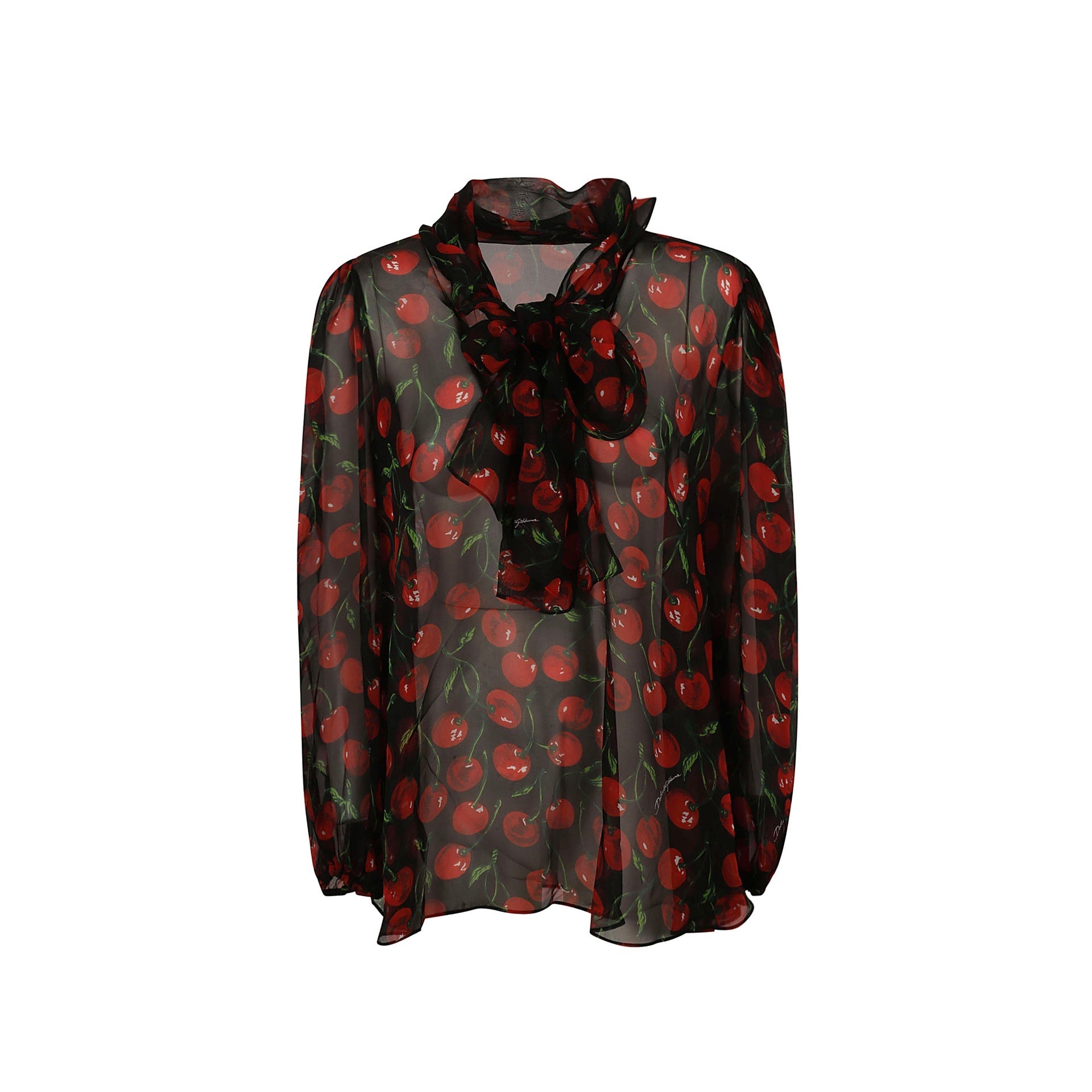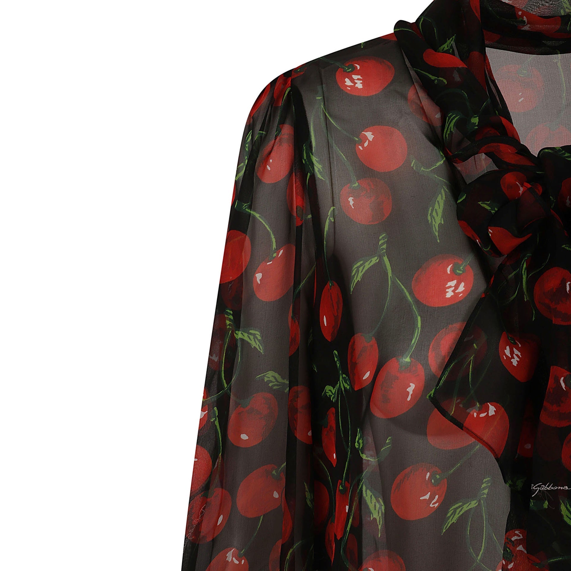 - Composition: 100% Silk - Long sleeves - V-neckline - Semi-transparent - Hand wash - Elasticated cuffs - All-over cherry printed - Made in Italy -