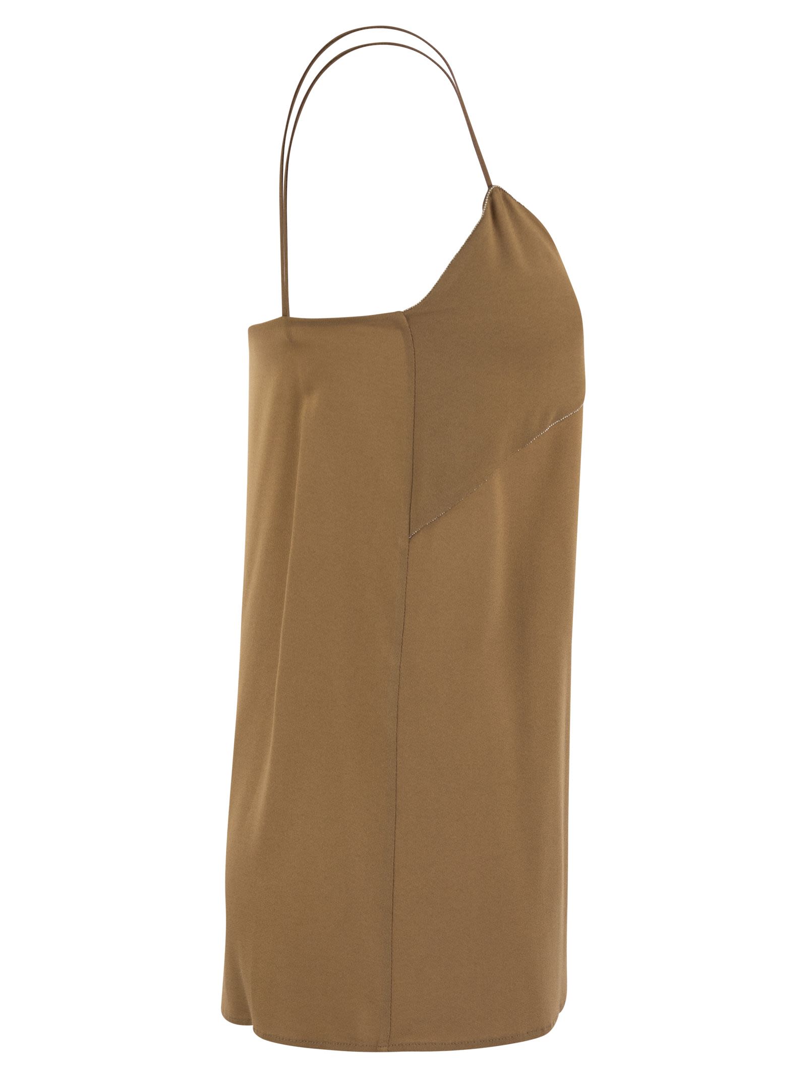 Contemporary elegance characterises this narrow-shouldered lingerie top made from a refined sandlé stretch fabric. With a slim fit, it stands out thanks to the brilliant diamond thread detail. - Diamond thread - Stretch sandlé - Regular fit DESIGNER ID: TPD264F214 D646 M466 1255
