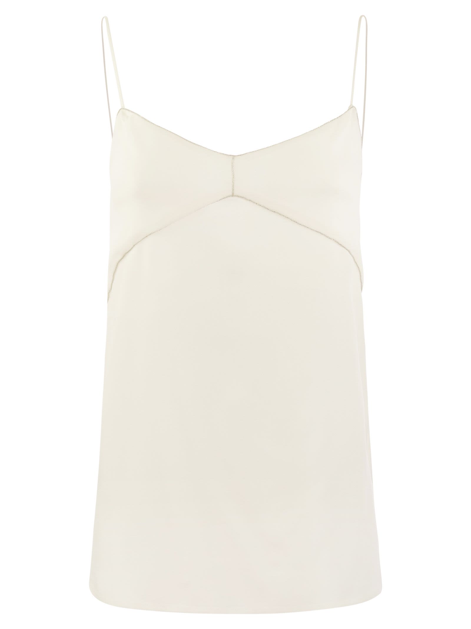 Contemporary elegance characterises this narrow-shouldered lingerie top made from a refined sandlé stretch fabric. With a slim fit, it stands out thanks to the brilliant diamond thread detail. - Diamond thread - Stretch sandlé - Regular fit DESIGNER ID: TPD264F214 D646 M466 0142