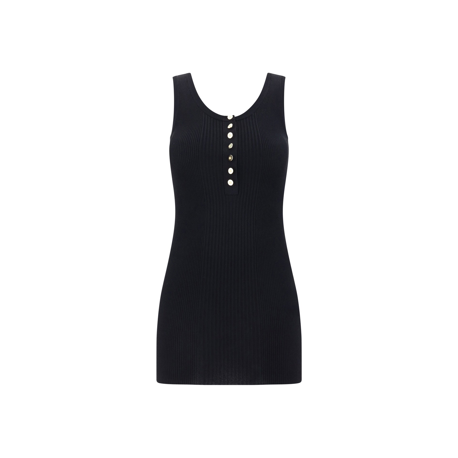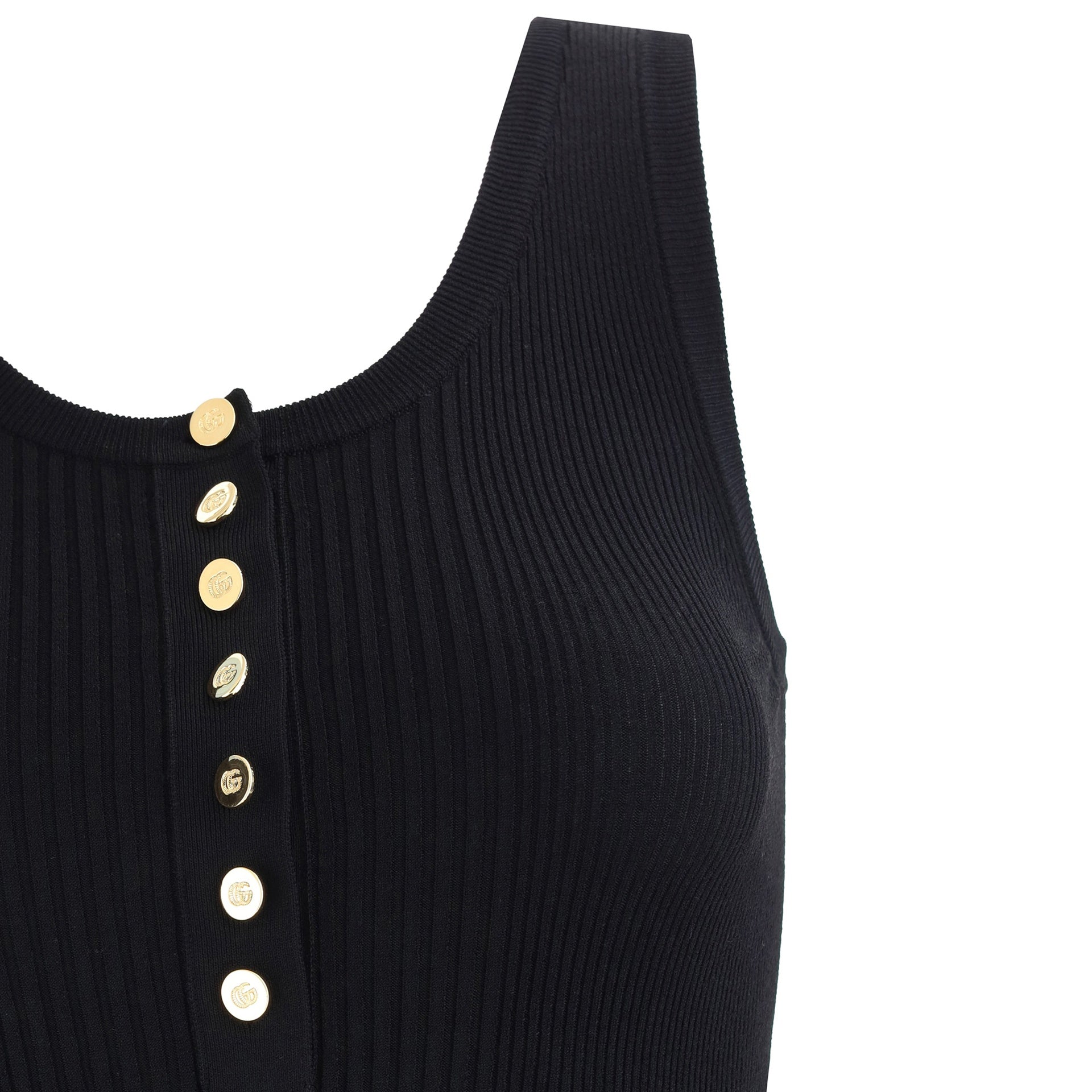 - Composition: 17% Polyester 83% Viscose - Sleeveless - Front button closure - Round neck - Machine wash - Stretch fit - Elastic ribbed design - Made in Italy -