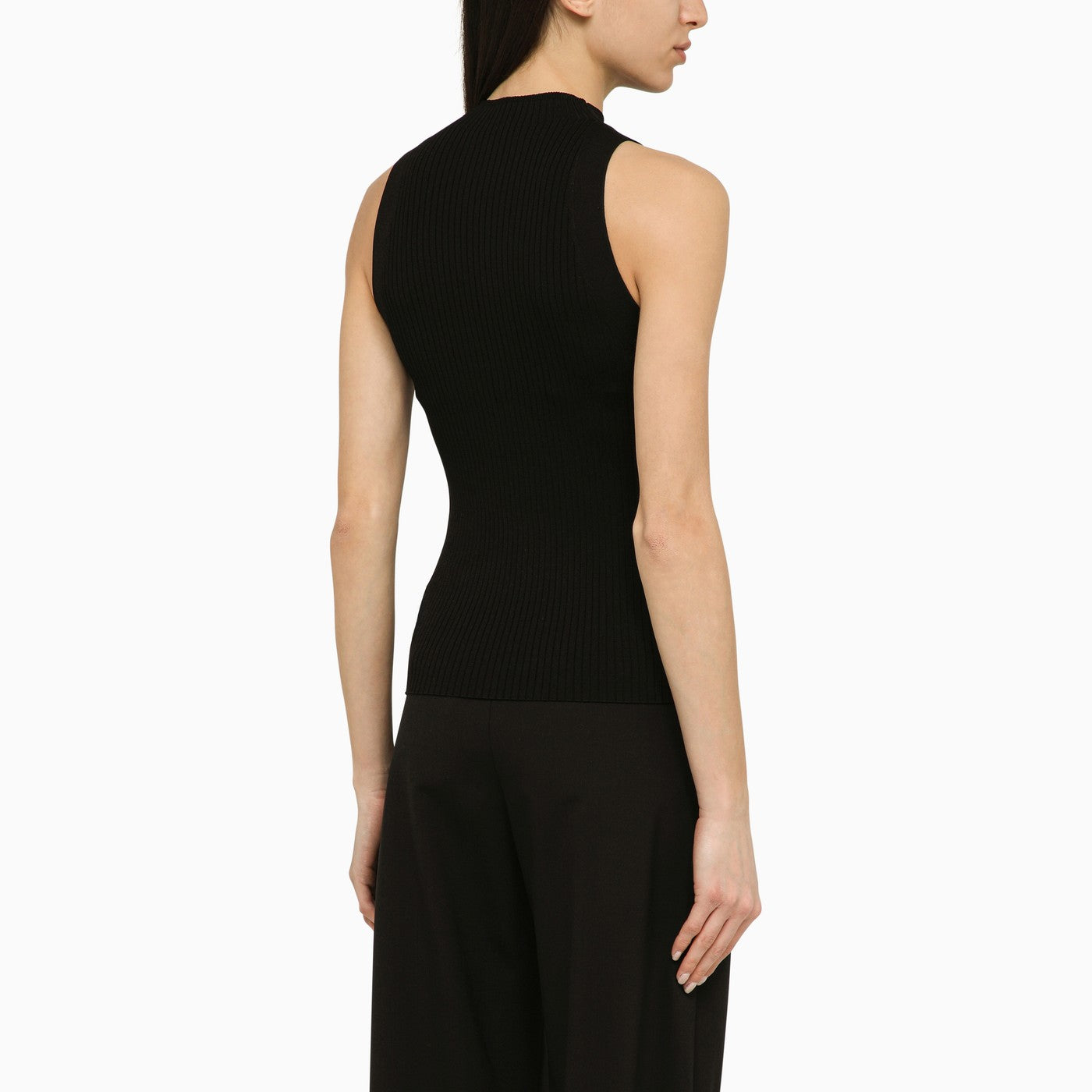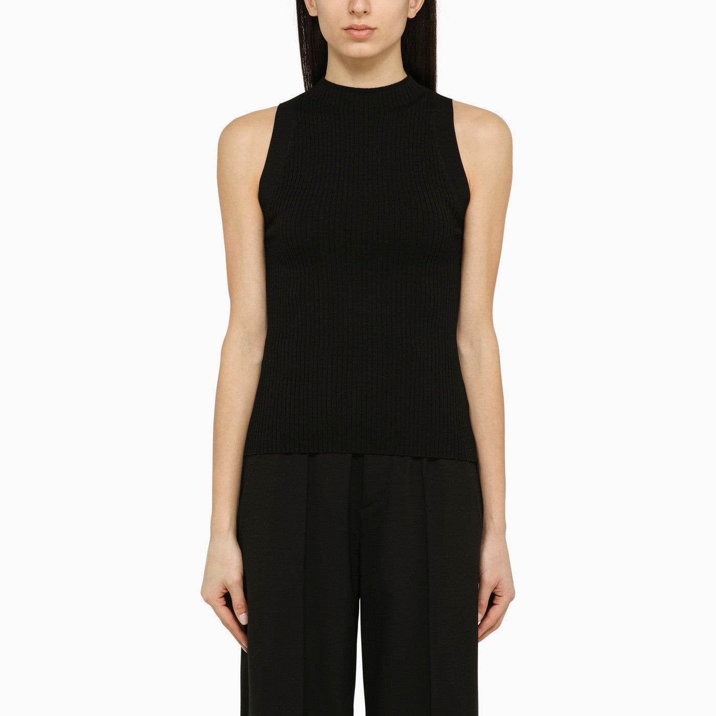 Black viscose blend sleeveless tank top by IVY OAK features a ribbed design and a slim fit.
