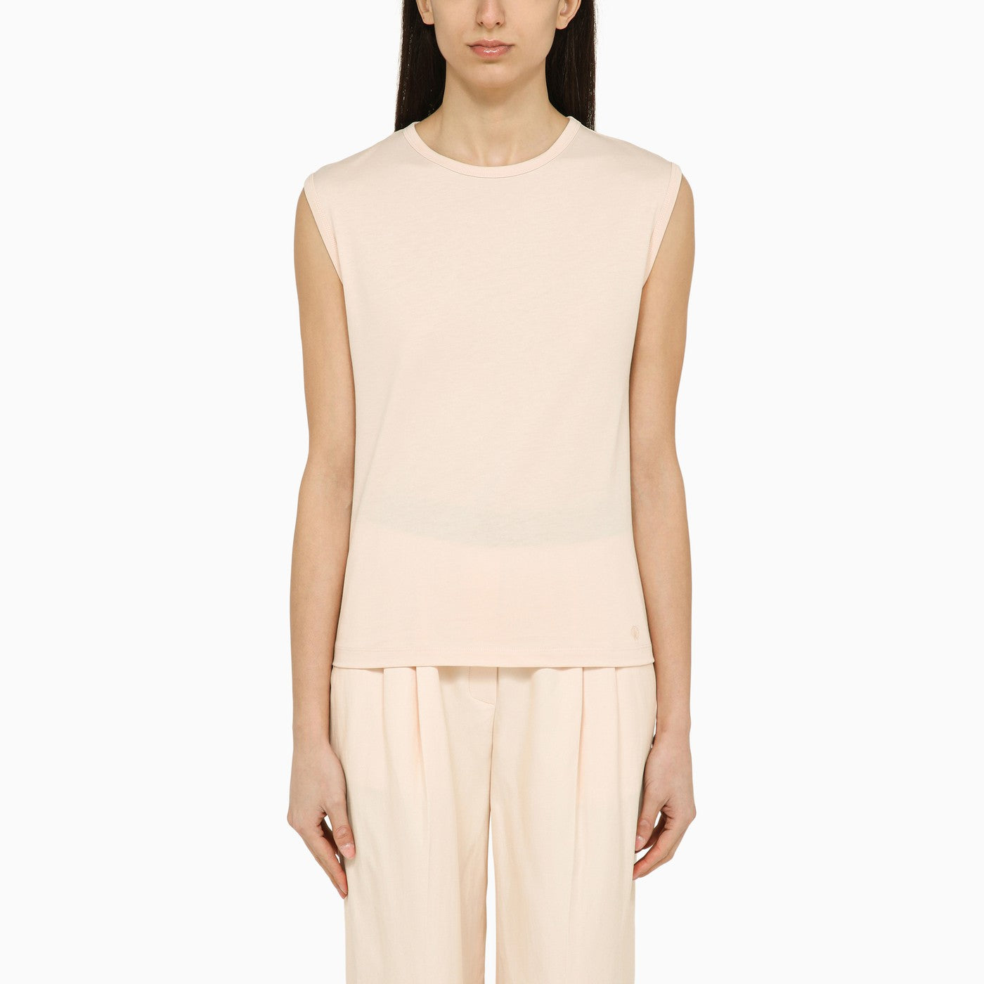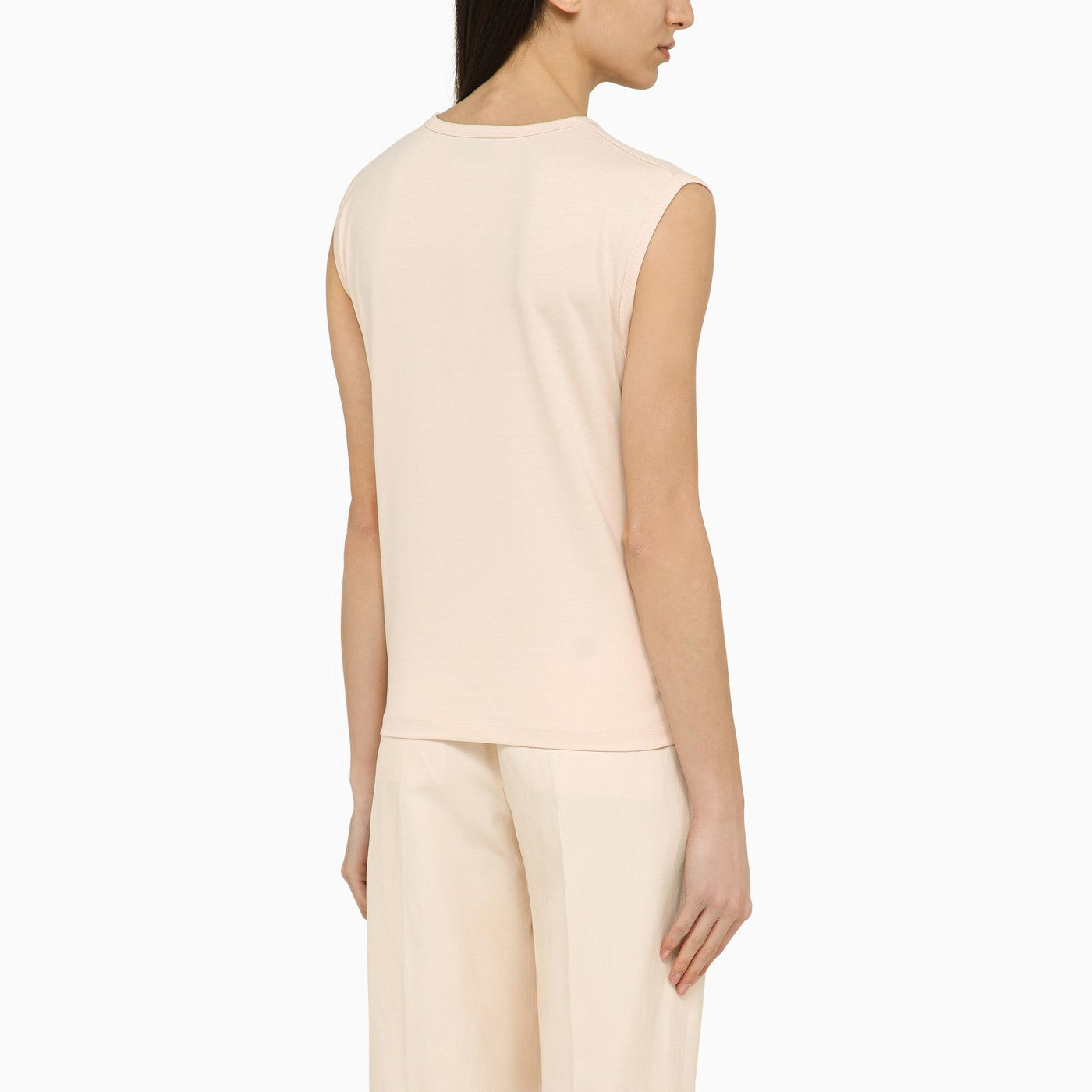 Cream-coloured cotton sleeveless crew-neck tank top from Loulou Studio, featuring small tone-on-tone embroidered logo on front and straight hem.