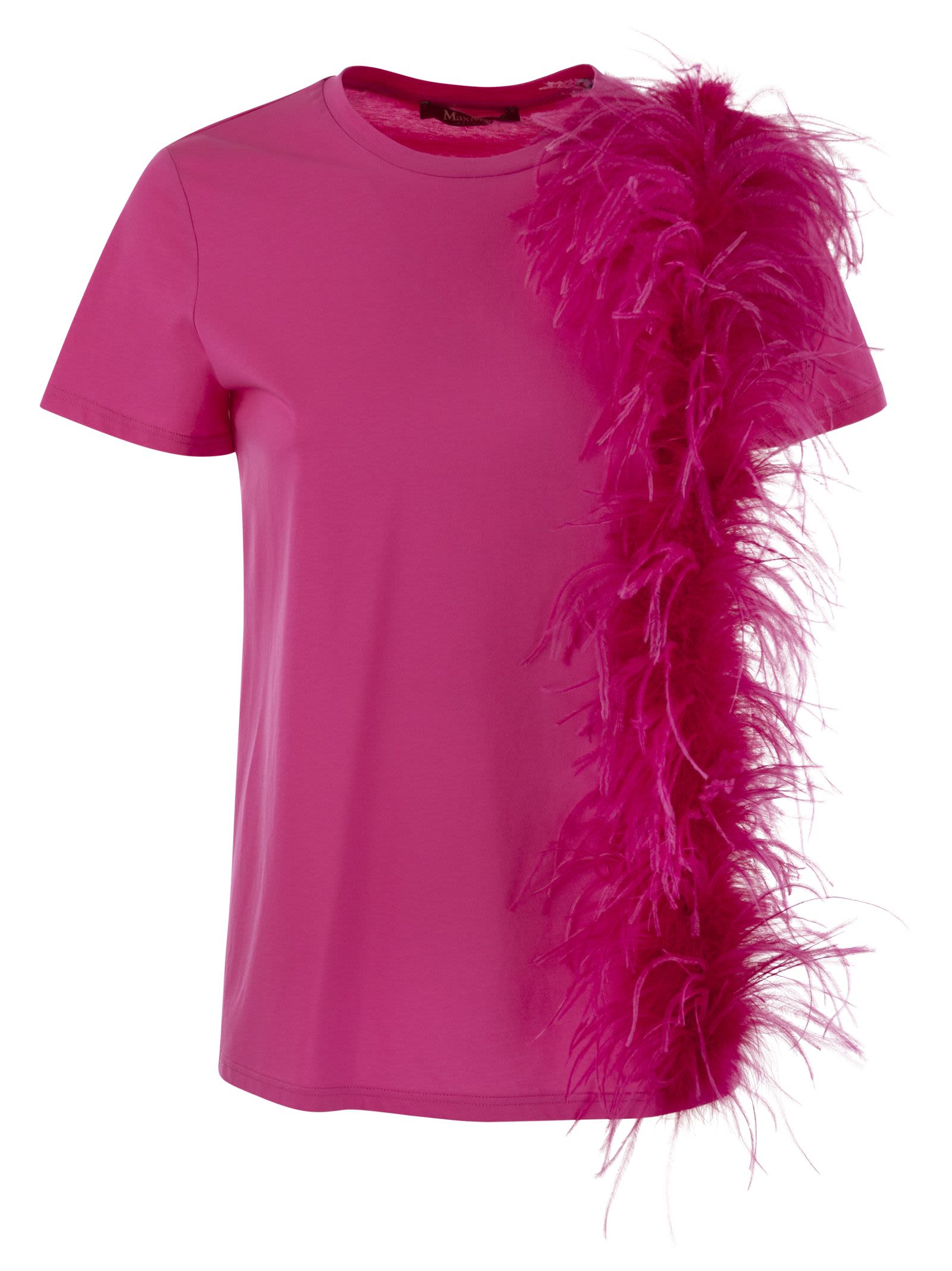 Max Mara Studio Lappole Jersey T Shirt With Feathers