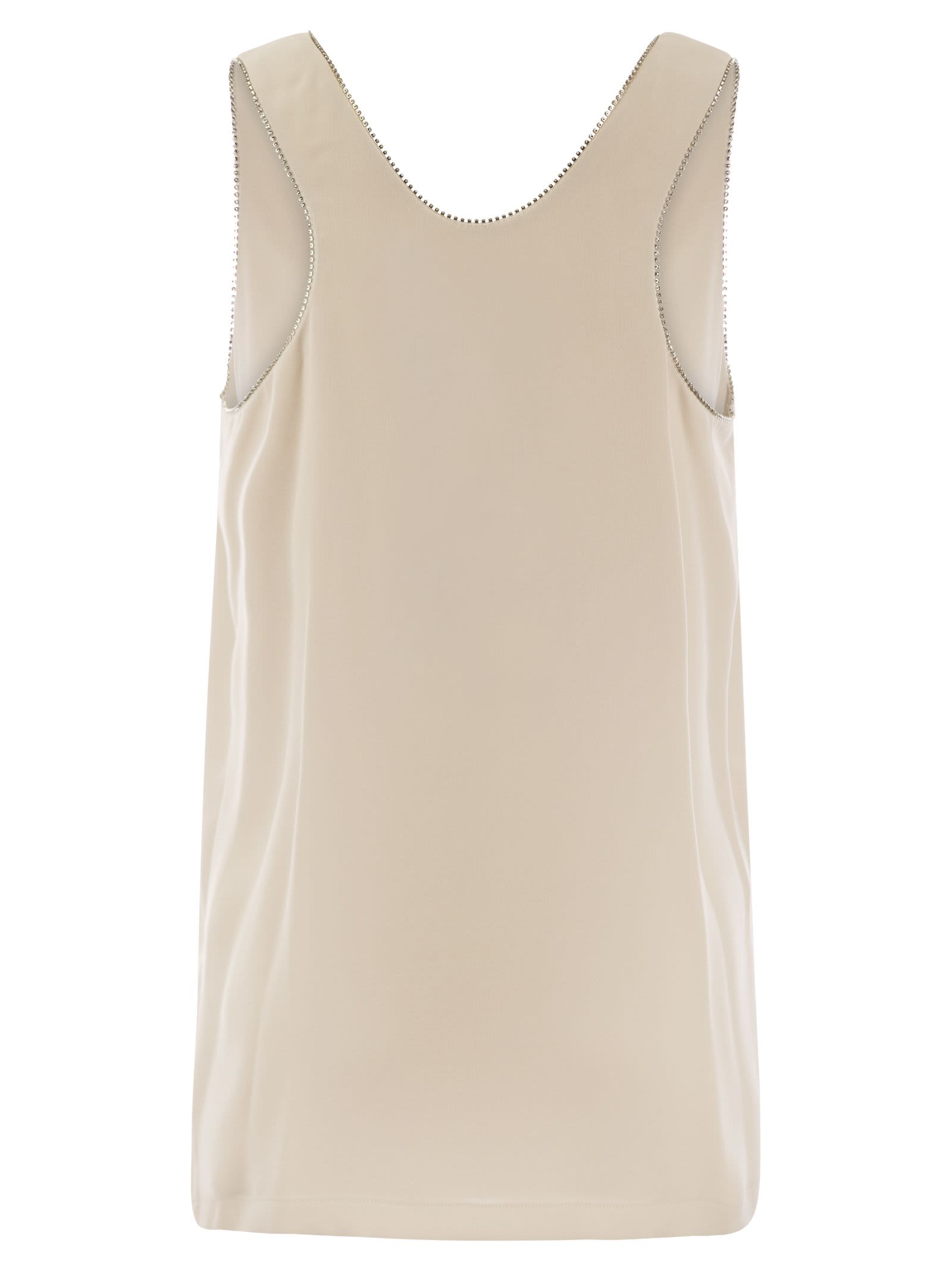Sleeveless top made of lightweight cady, featuring an American-style neckline at the back and a wide round neckline at the front. The model is embellished with profiles illuminated by a rhinestone piping motif. - Lined - Relaxed fit DESIGNER ID: 2416161013600 018