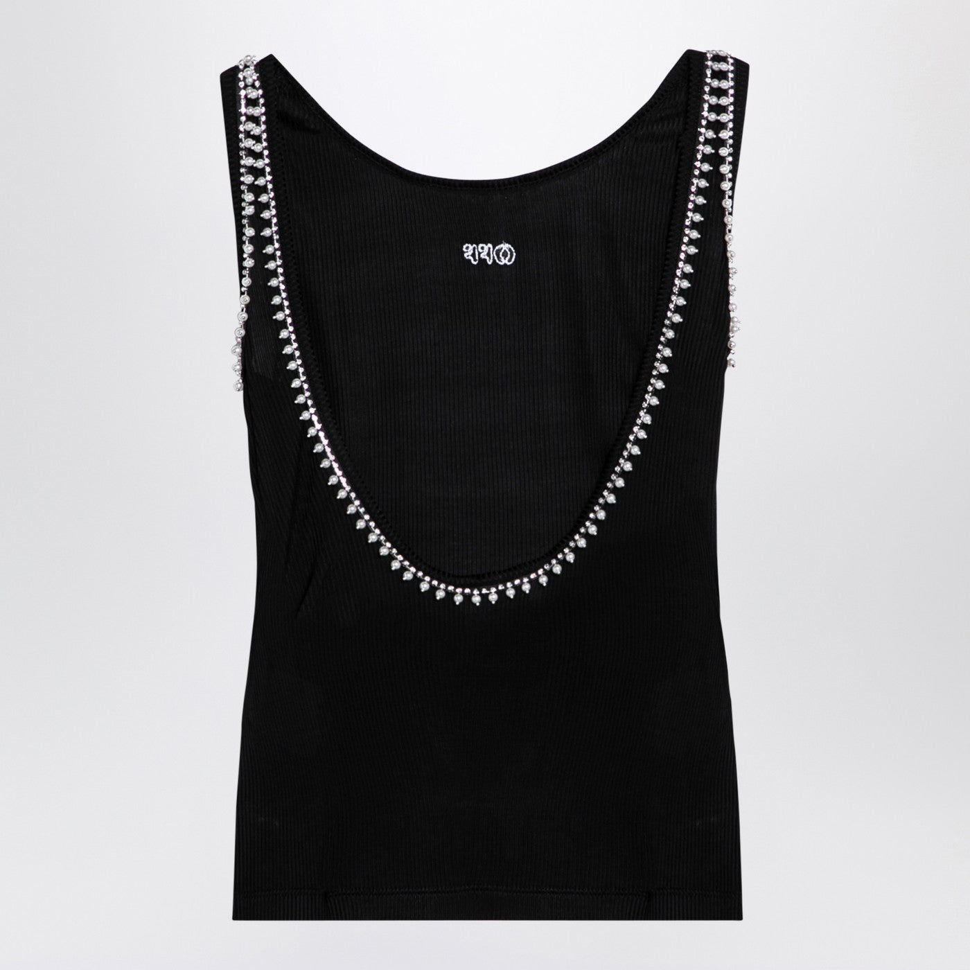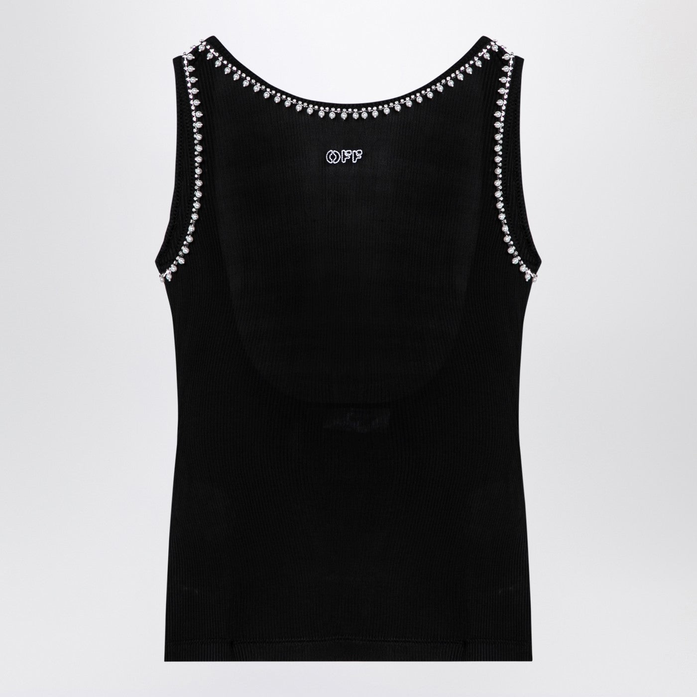 Black viscose Off-White tank top featuring a ribbed design, contrasting front lettering logo embroidery, a deep back neckline, beaded embroidery and a straight hemline.