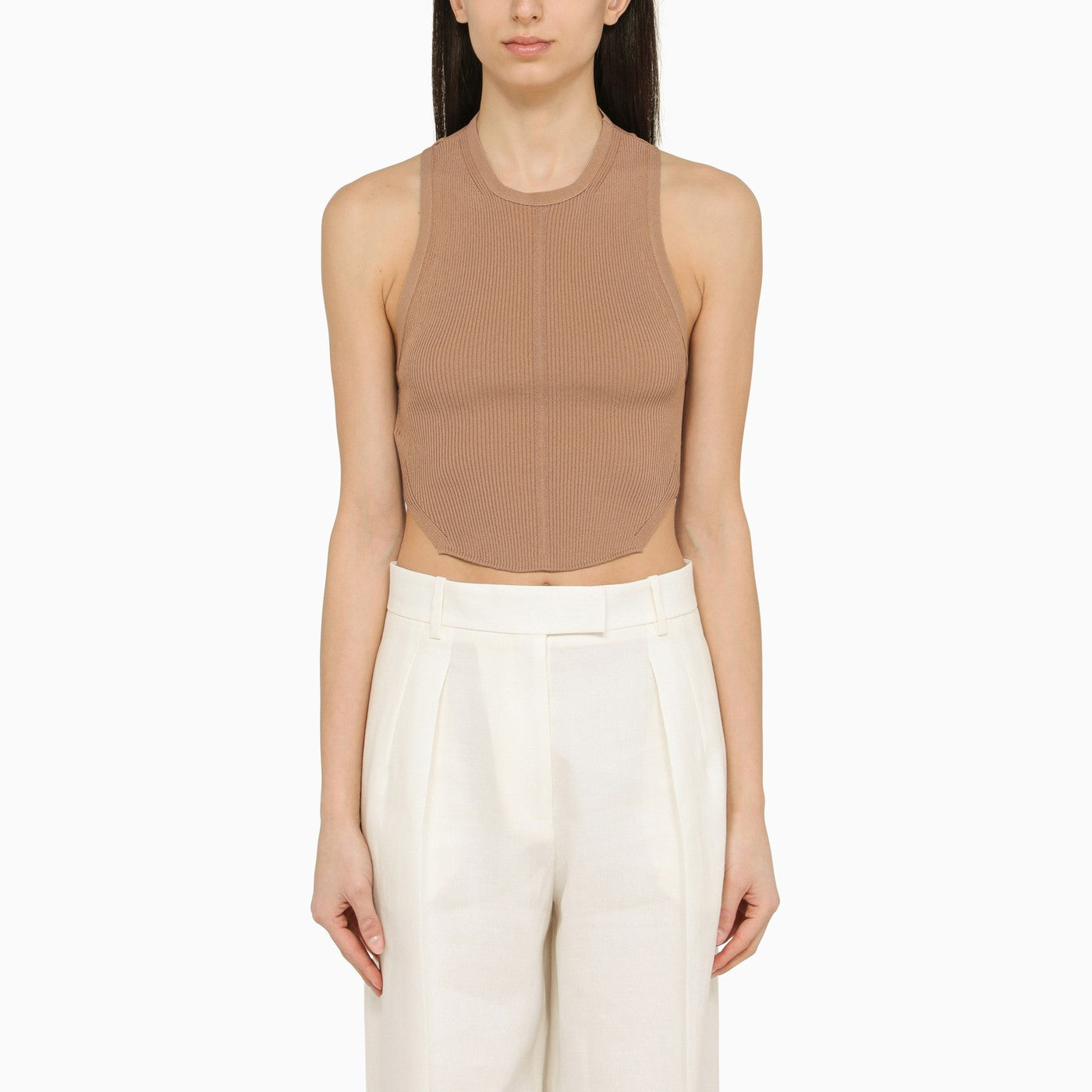 Philosophy Light Brown Cropped Ribbed Top