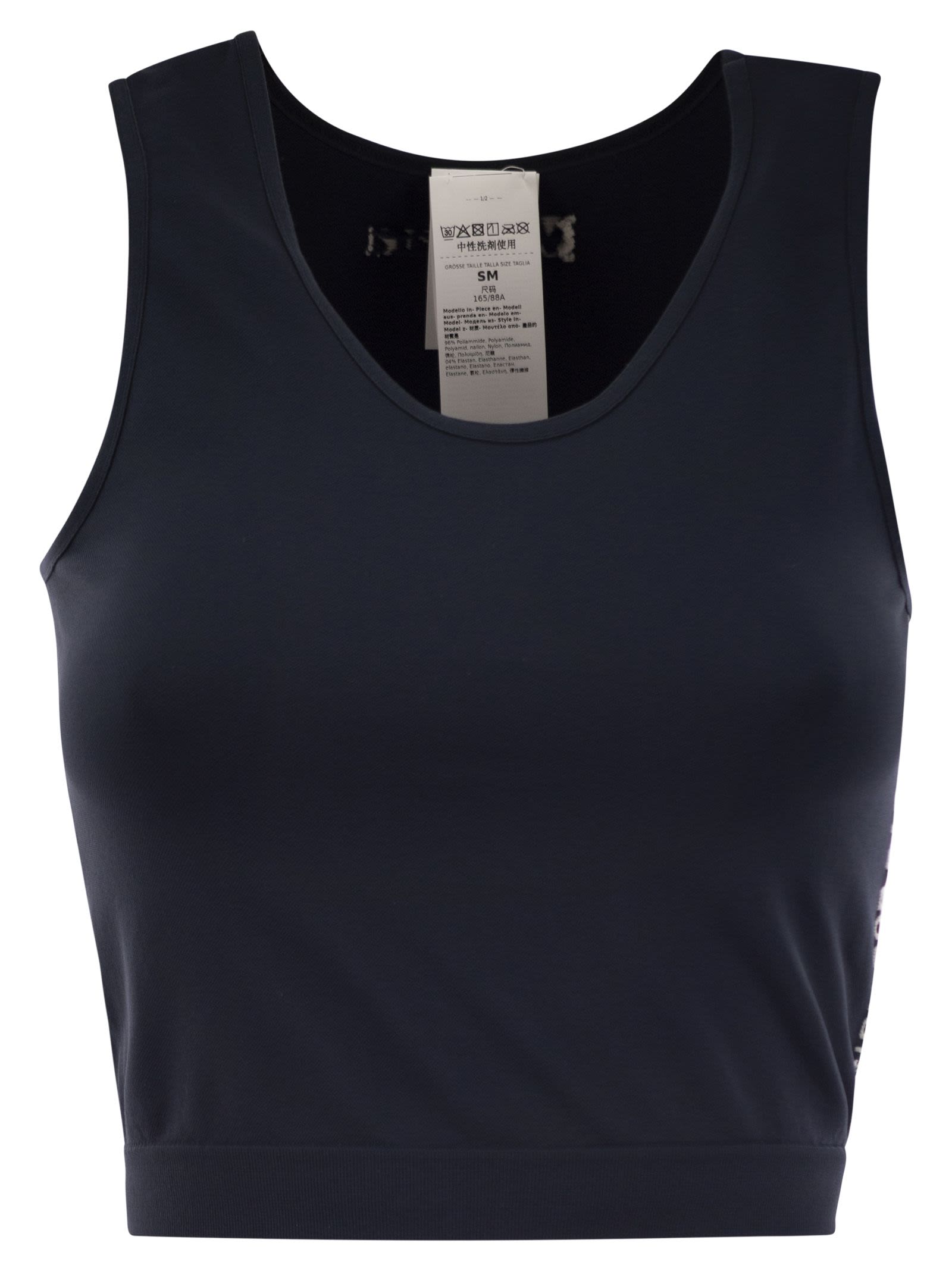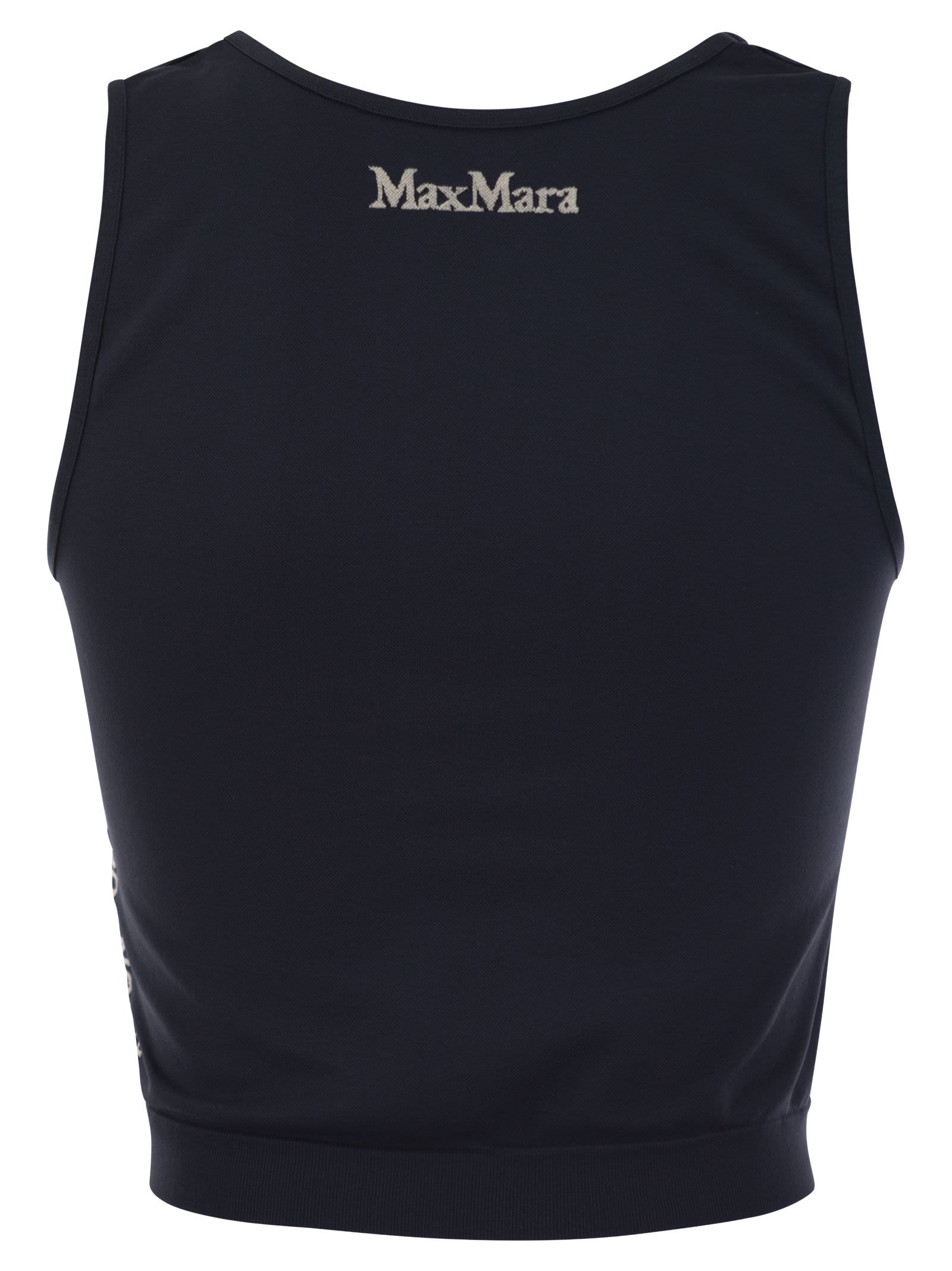 Sleeveless top in technical fabric, embellished with a precious jacquard work that draws the contrasting Max Mara logo along the side. - Sleeveless - Round neckline DESIGNER ID: 2419941011600 004