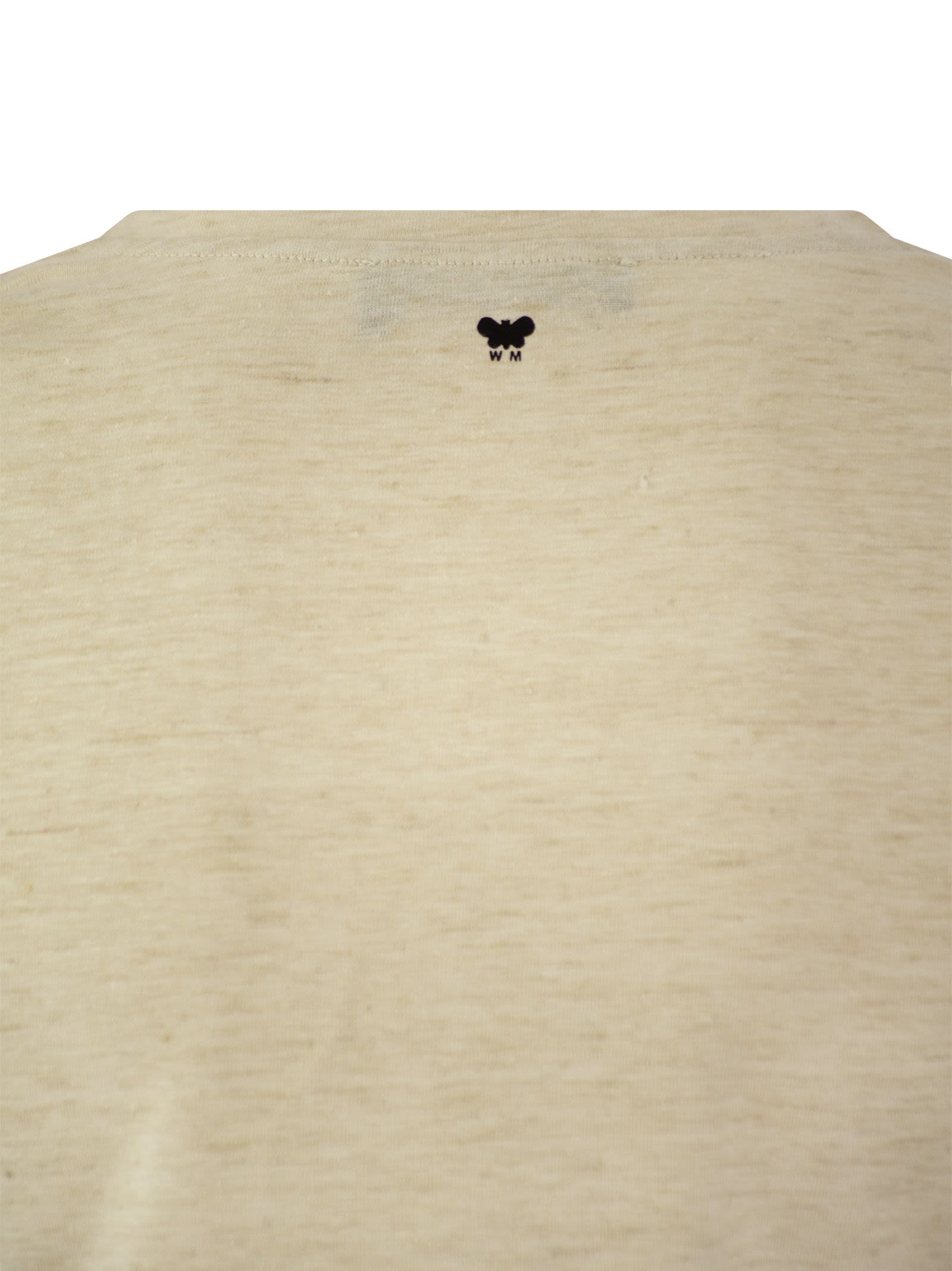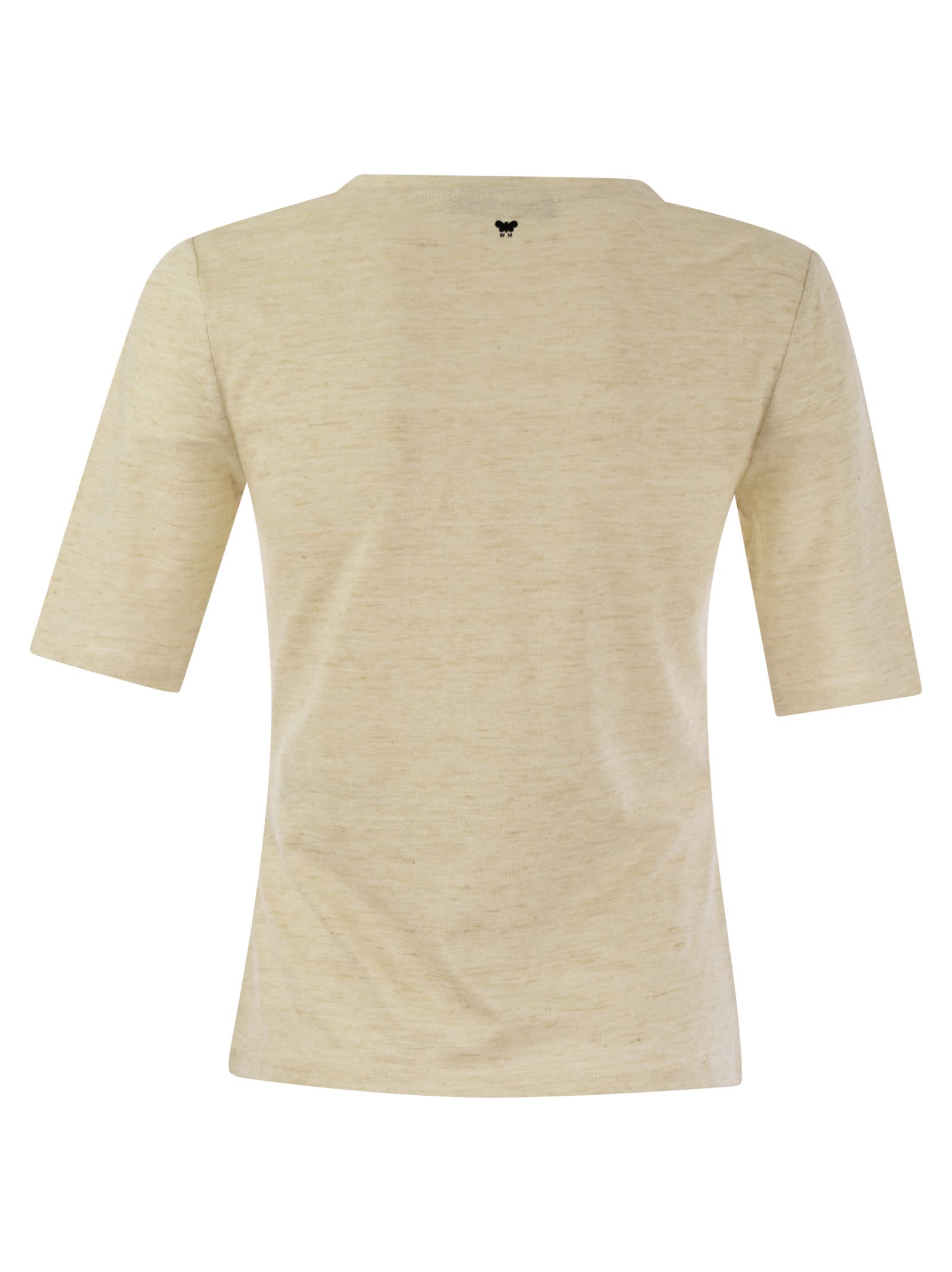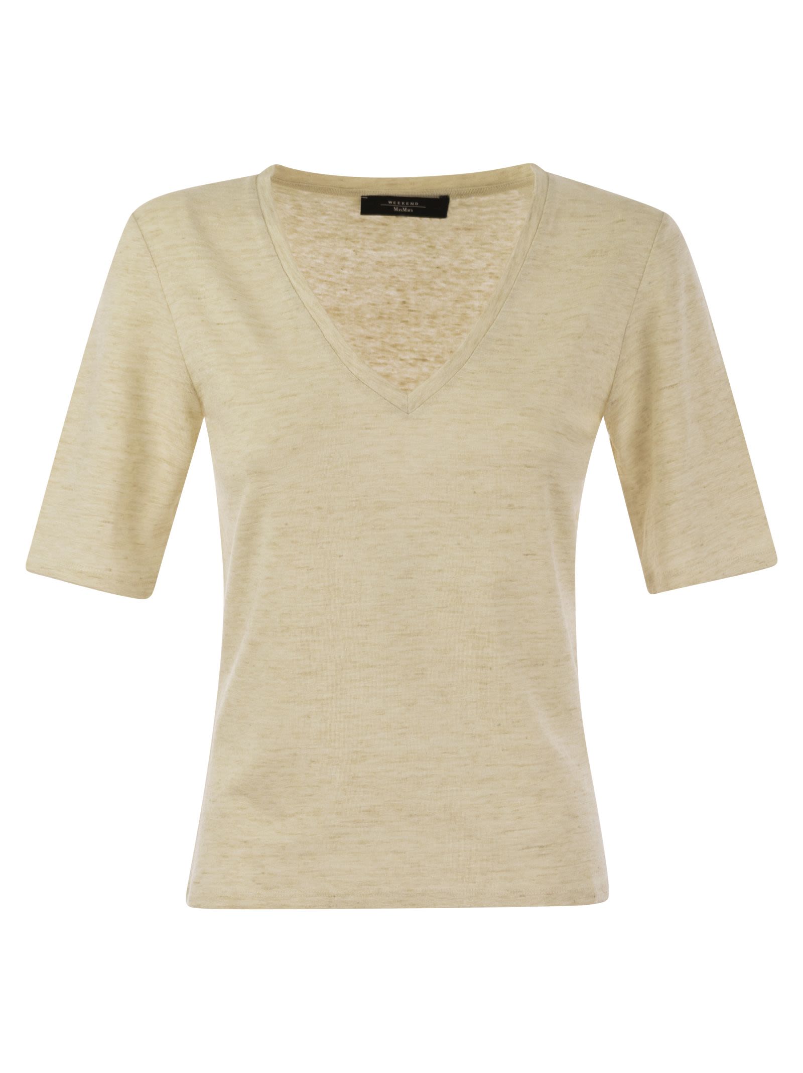 Short-sleeved T-shirt in soft stretch linen jersey, featuring a slightly fitted silhouette with a V-neckline. Finished with a small butterfly logo print on the back of the neck. - V-neckline - Slightly fitted fit - Short sleeves DESIGNER ID: 2415941092600 002