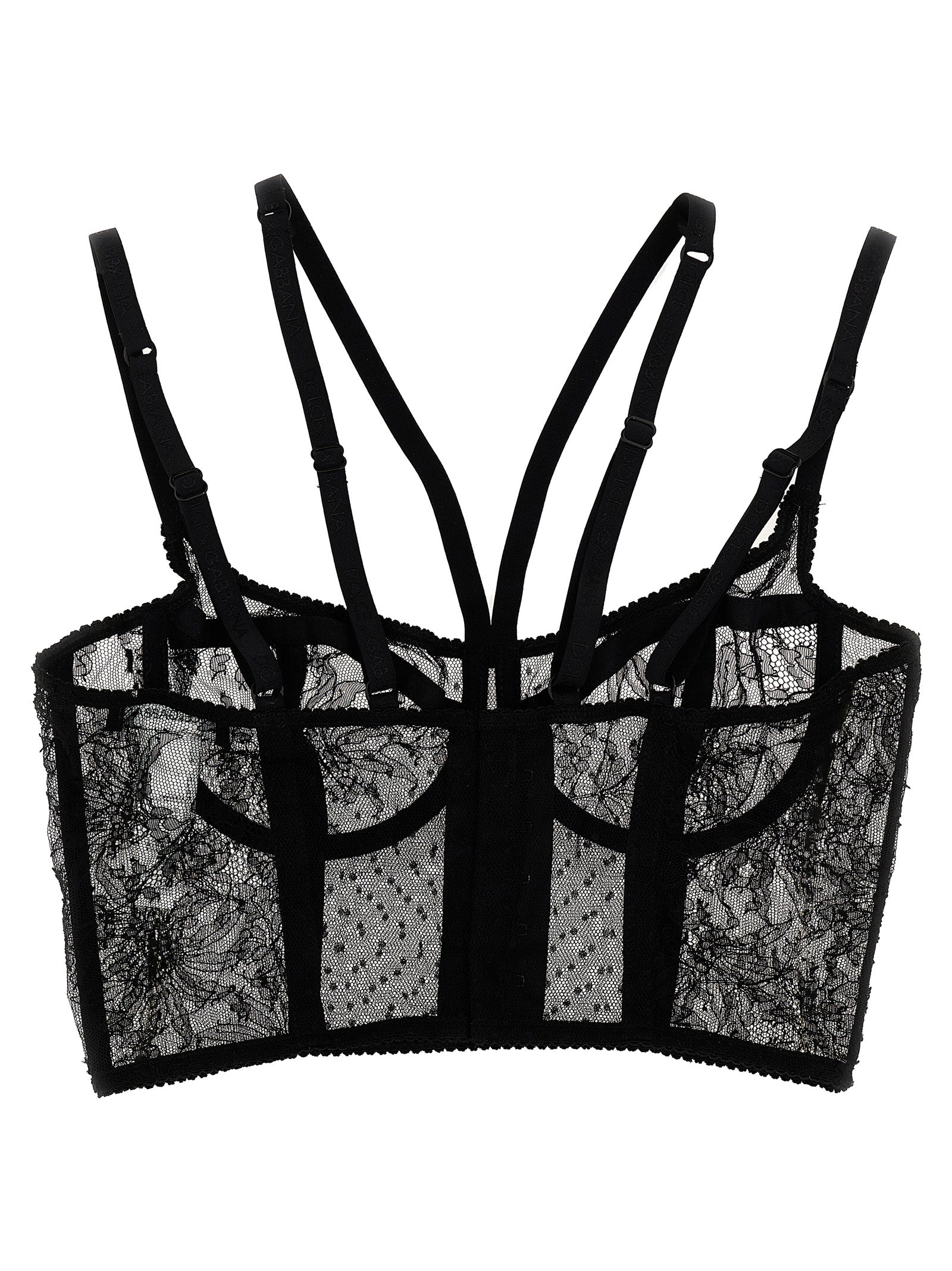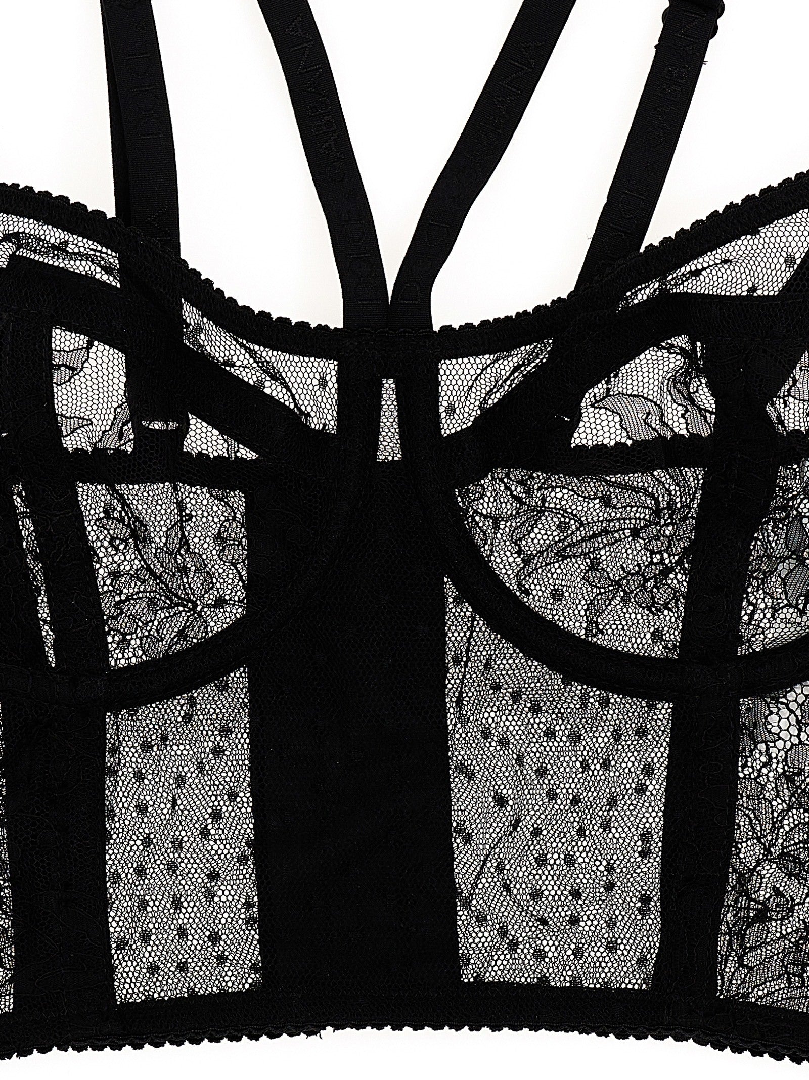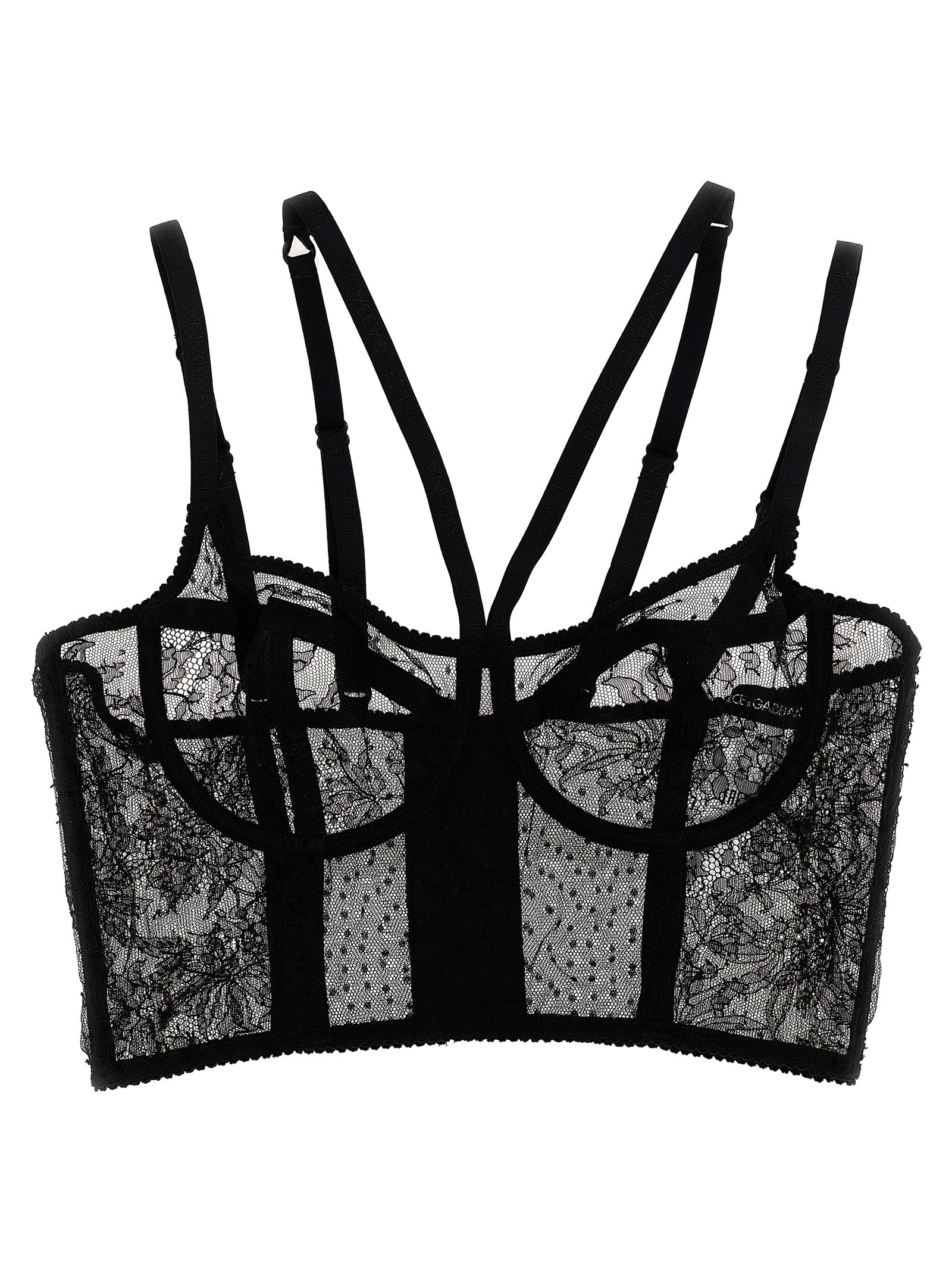 Lace bra with wired cups, and thin adjustable shoulder straps.
