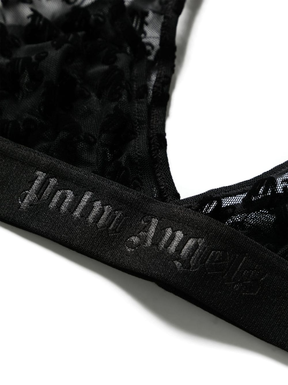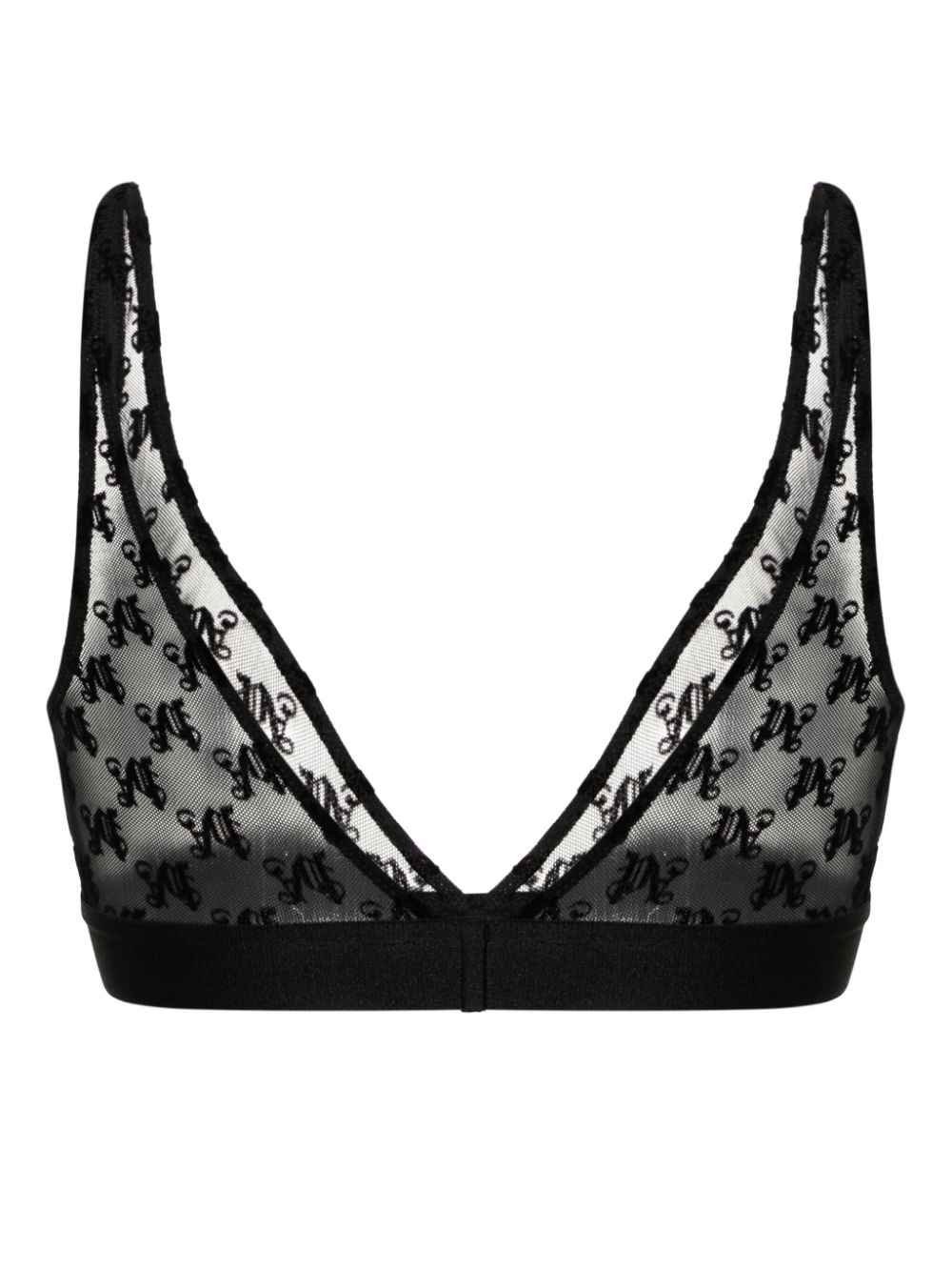 black lace panelling sheer monogram pattern triangle cup slip-on style logo-jacquard elasticated hem