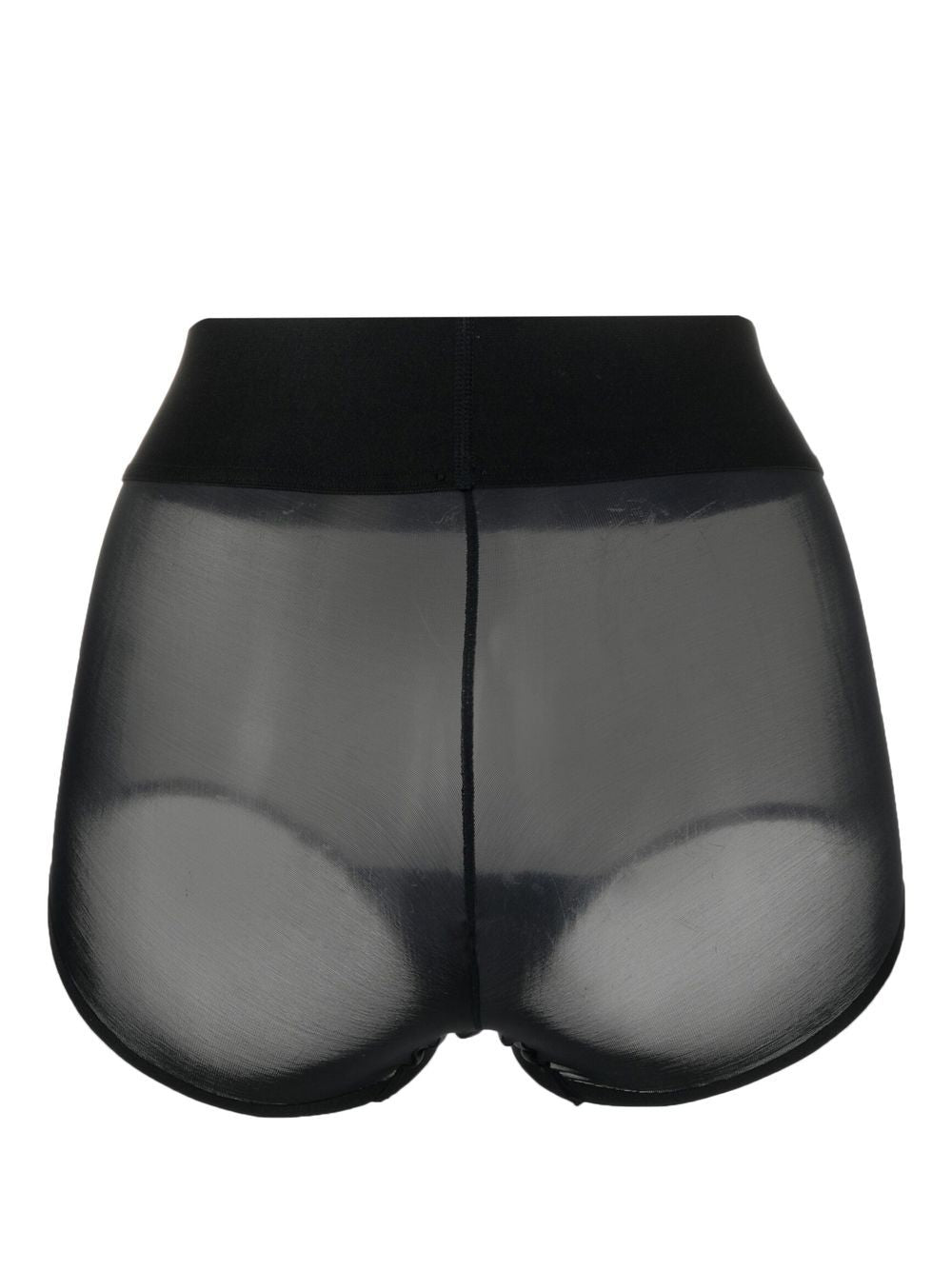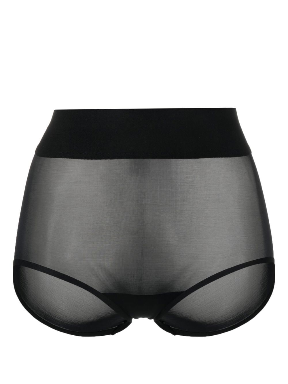 semi-sheer elasticated briefs from WOLFORD featuring semi-sheer construction, elasticated waistband, stretch-design and black. Just a reminder that this piece must be tried on over your own garments..