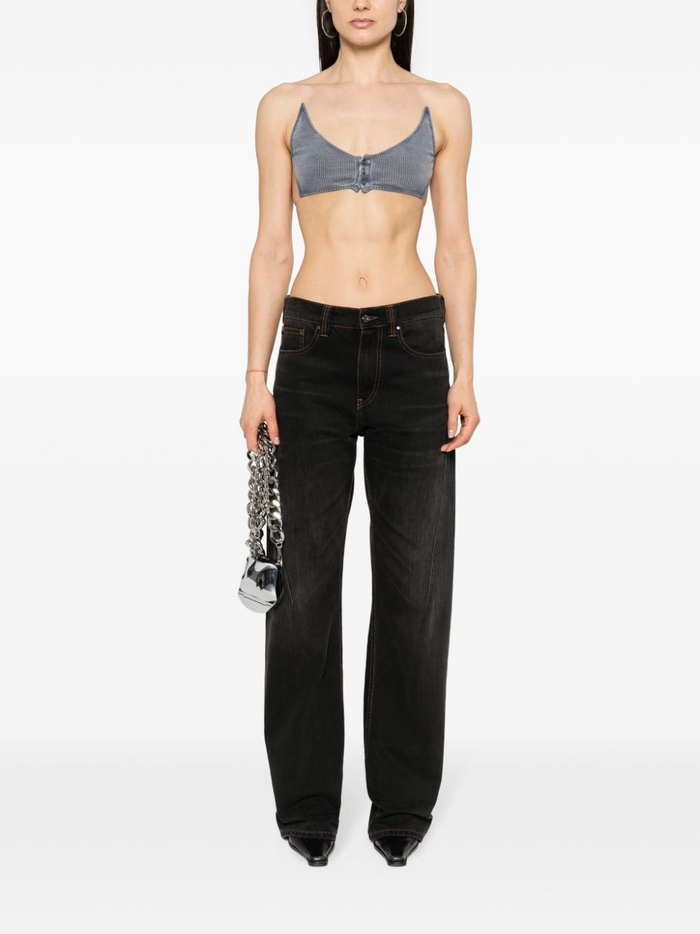 blue cotton ribbed knit washed fishing-wire straps U-neck open back spaghetti straps sleeveless cropped unlined front button fastening