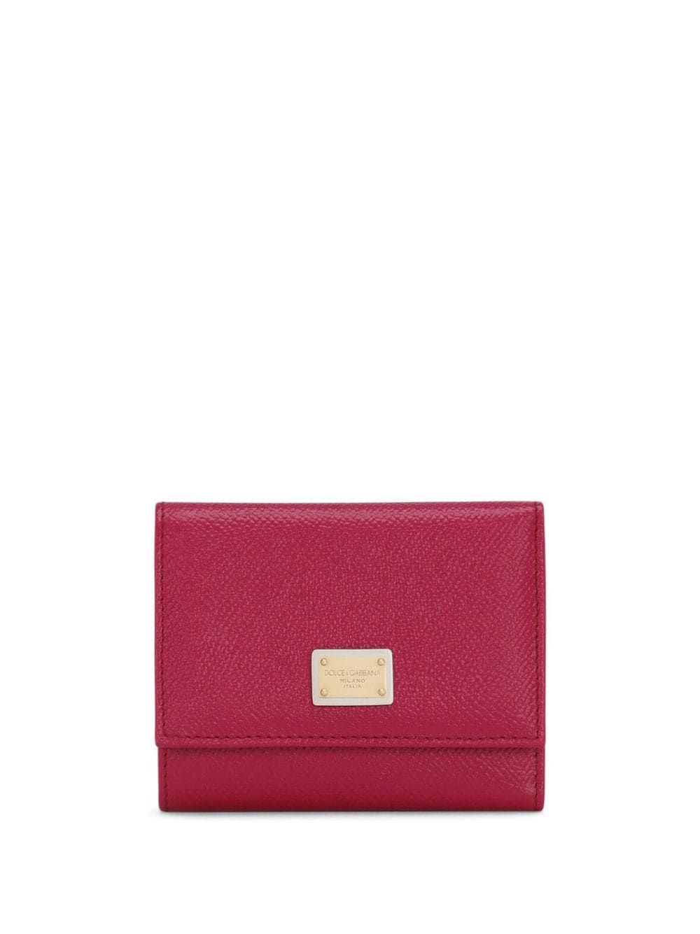 logo-plaque compact wallet from DOLCE & GABBANA featuring fucsia, calf leather, logo plaque, tri-fold design, press-stud fastening, internal card slots, note compartment, rear zip-fastening pocket and logo-engraved gold-tone hardware.