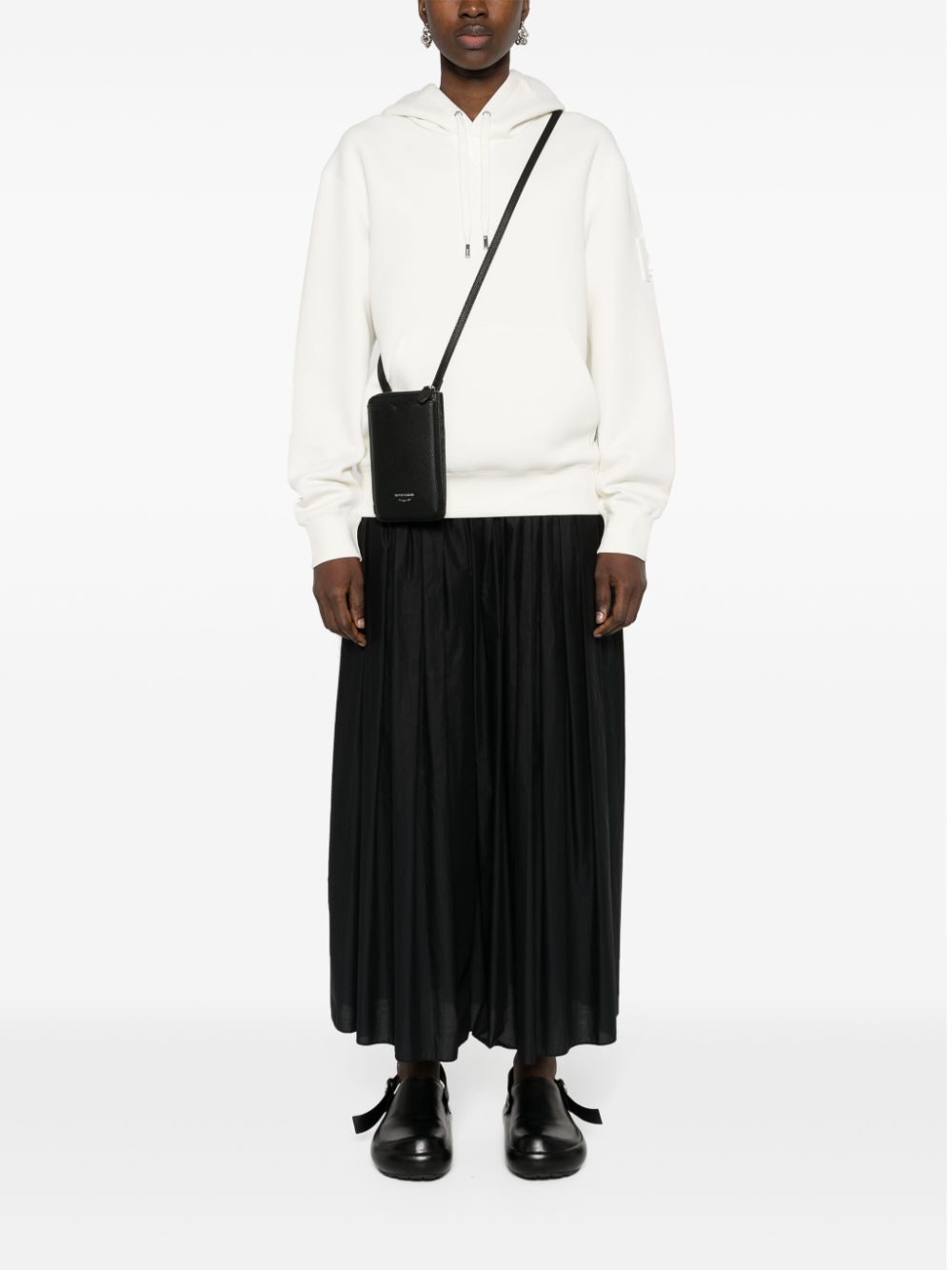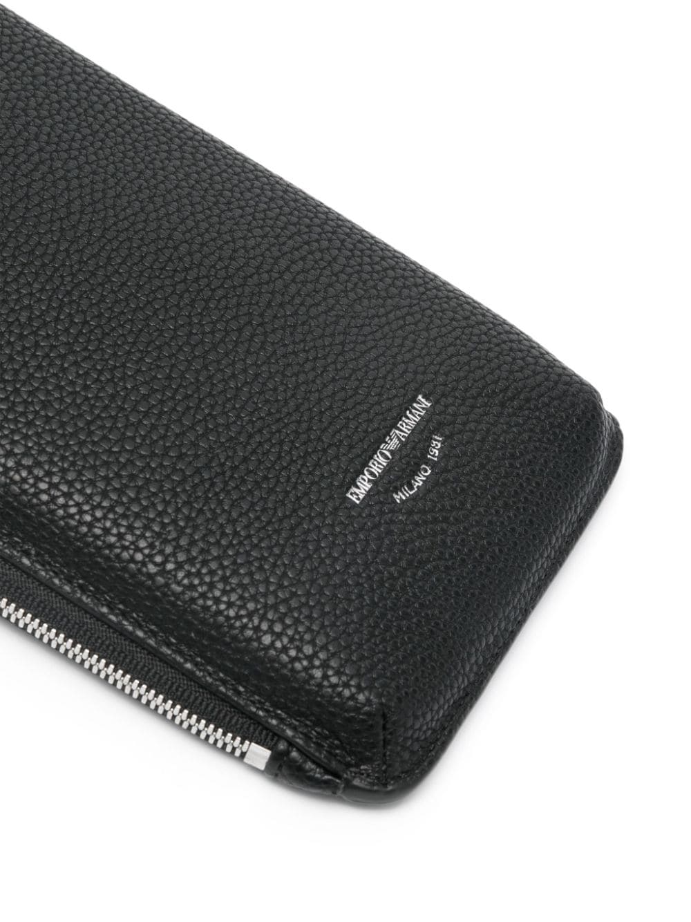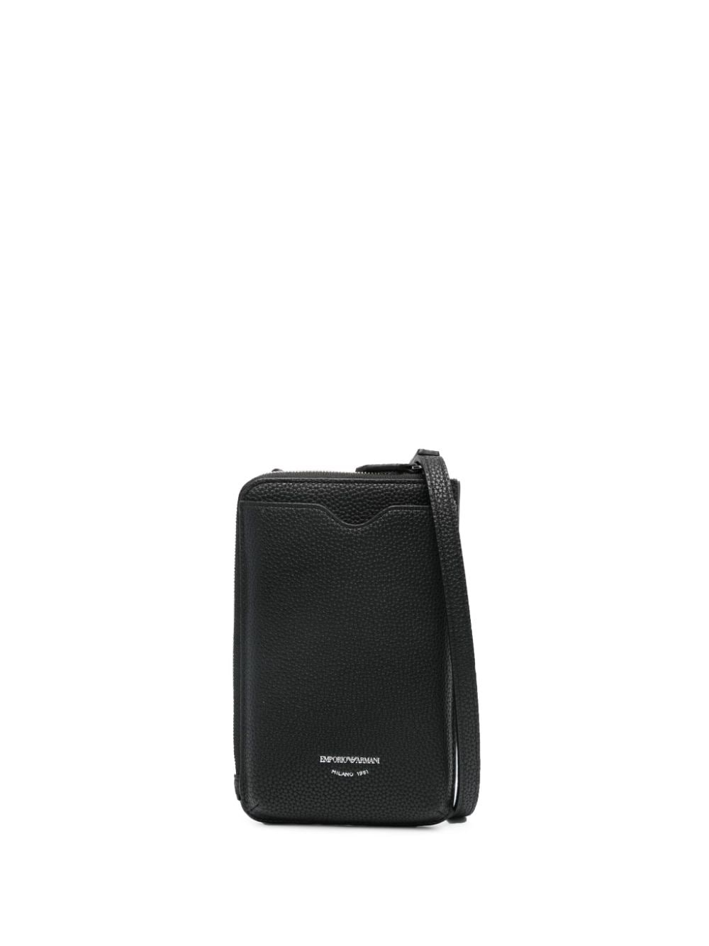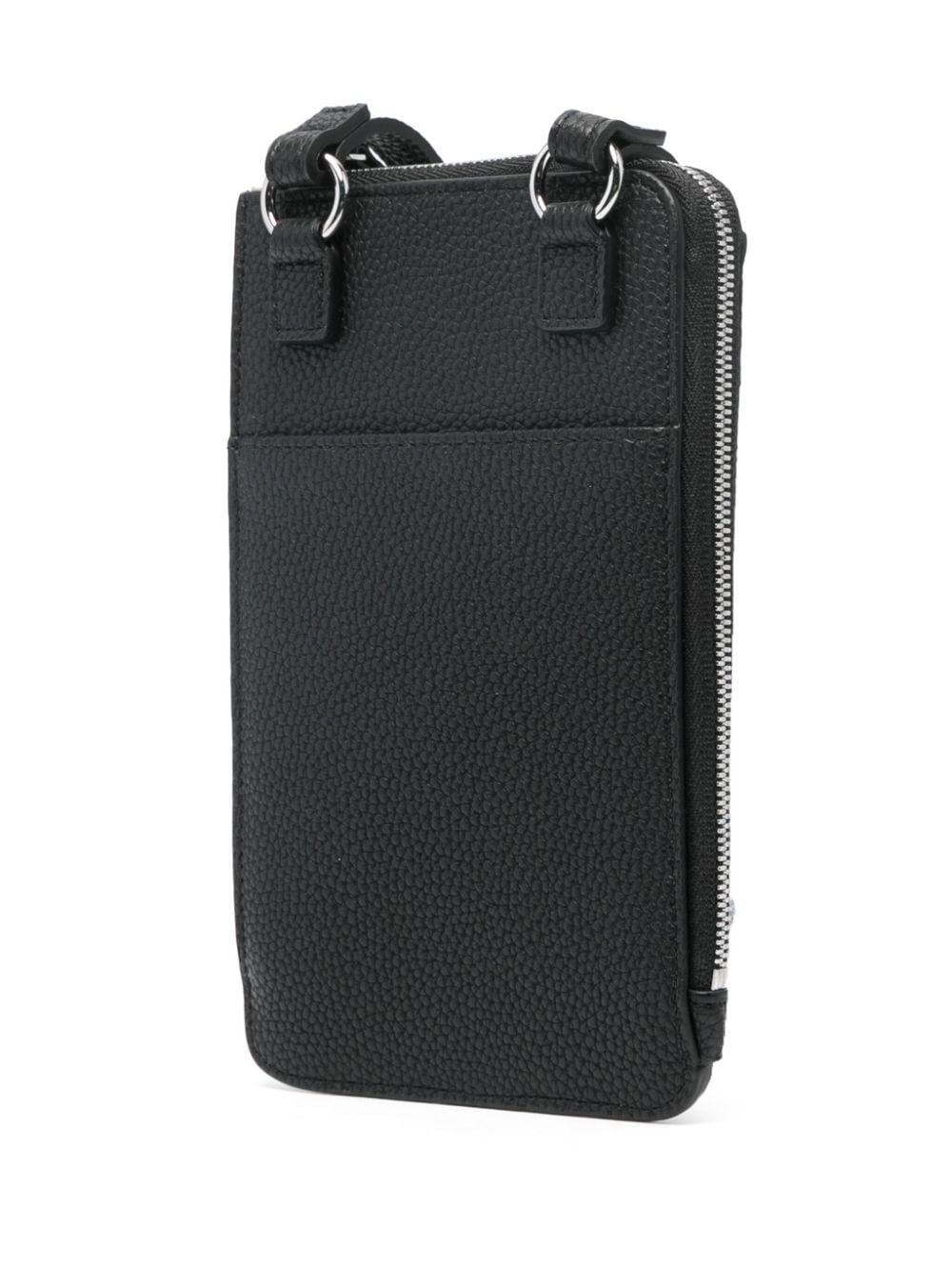 black faux leather grained texture logo stamp to the front silver-tone hardware zip fastening adjustable neck strap slip pocket to the front internal card slots internal zip-fastening pocket full lining