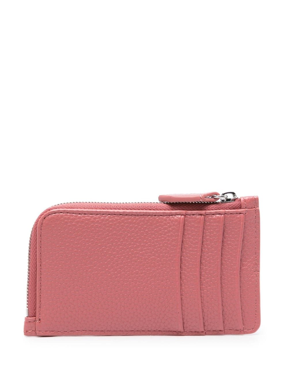 powder pink faux leather grained texture debossed logo to the front all-around zip fastening card slots to the front and rear coin pocket full lining