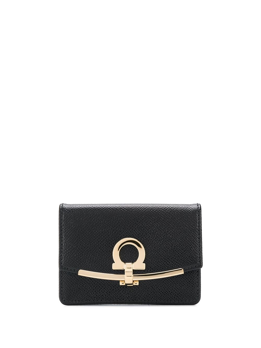 Black calf leather small Gancini wallet from Salvatore Ferragamo.