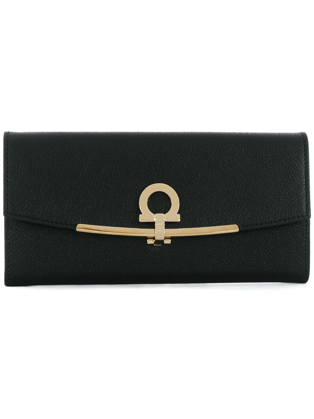 Black calf leather Gancini flip-lock leather purse from Salvatore Ferragamo.