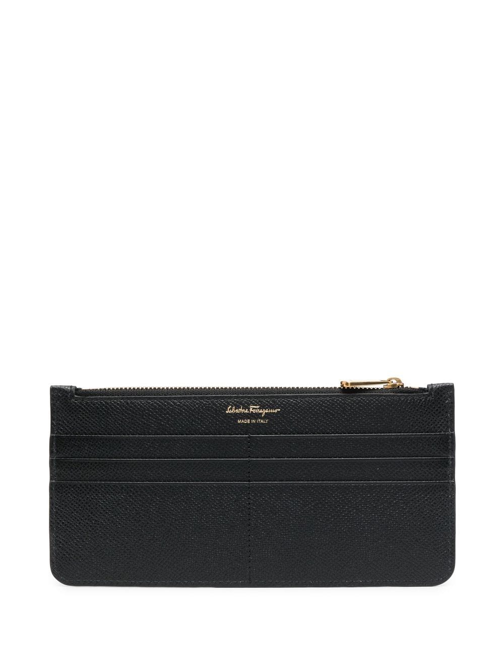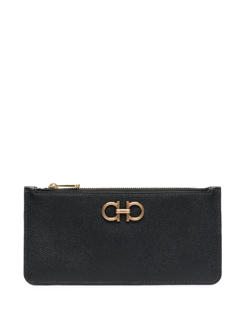black calf leather Gancini buckle top zip fastening card slots logo stamp to the rear